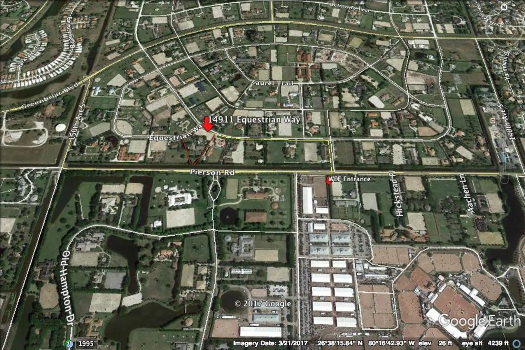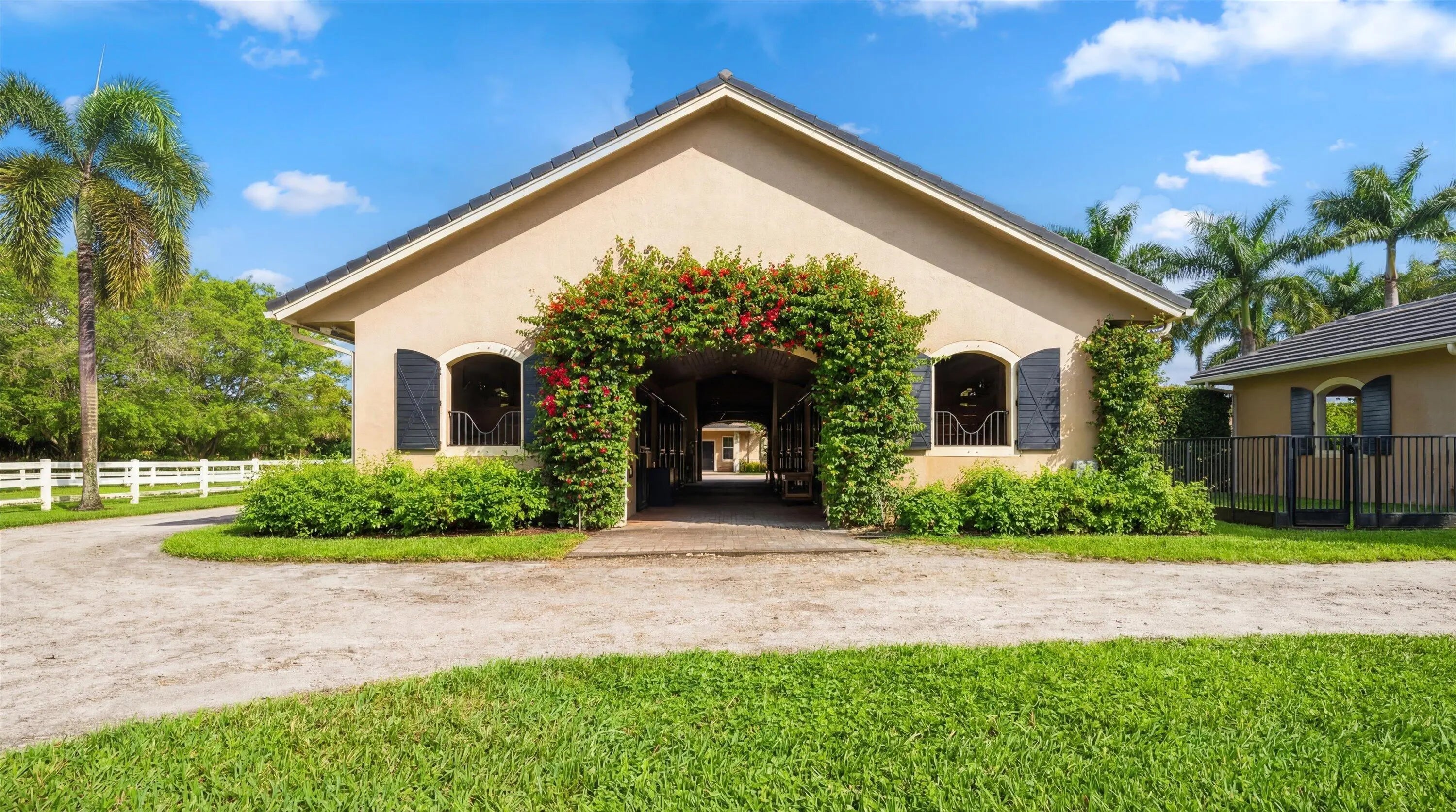 Hand walk your horse to Wellington International! Located less than 1/3 of a mile from the entrance of WEF, this exceptional equestrian property offers unmatched convenience paired with thoughtfully designed amenities. The charming 4-bedroom, 3-bathroom residence has been recently renovated and features hurricane-impact windows, new wood-tile flooring, and a beautifully updated kitchen with an oversized island. At the heart of the property is a lovely 8-stall center-aisle barn, designed with both functionality and comfort in mind--with allowance to add two additional stalls if desired. Additional highlights include: • Four lush, grassy paddocks • A 4-horse walker • Two 1-bedroom, 1-bathroom staff apartments A new sand/clay arena measuring approximately 245' x 115' -Spacious barn garage with ample storage Opportunities to stable within walking distance of WEF are rare! Schedule your private tour today!