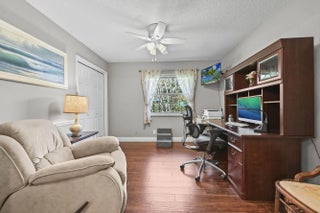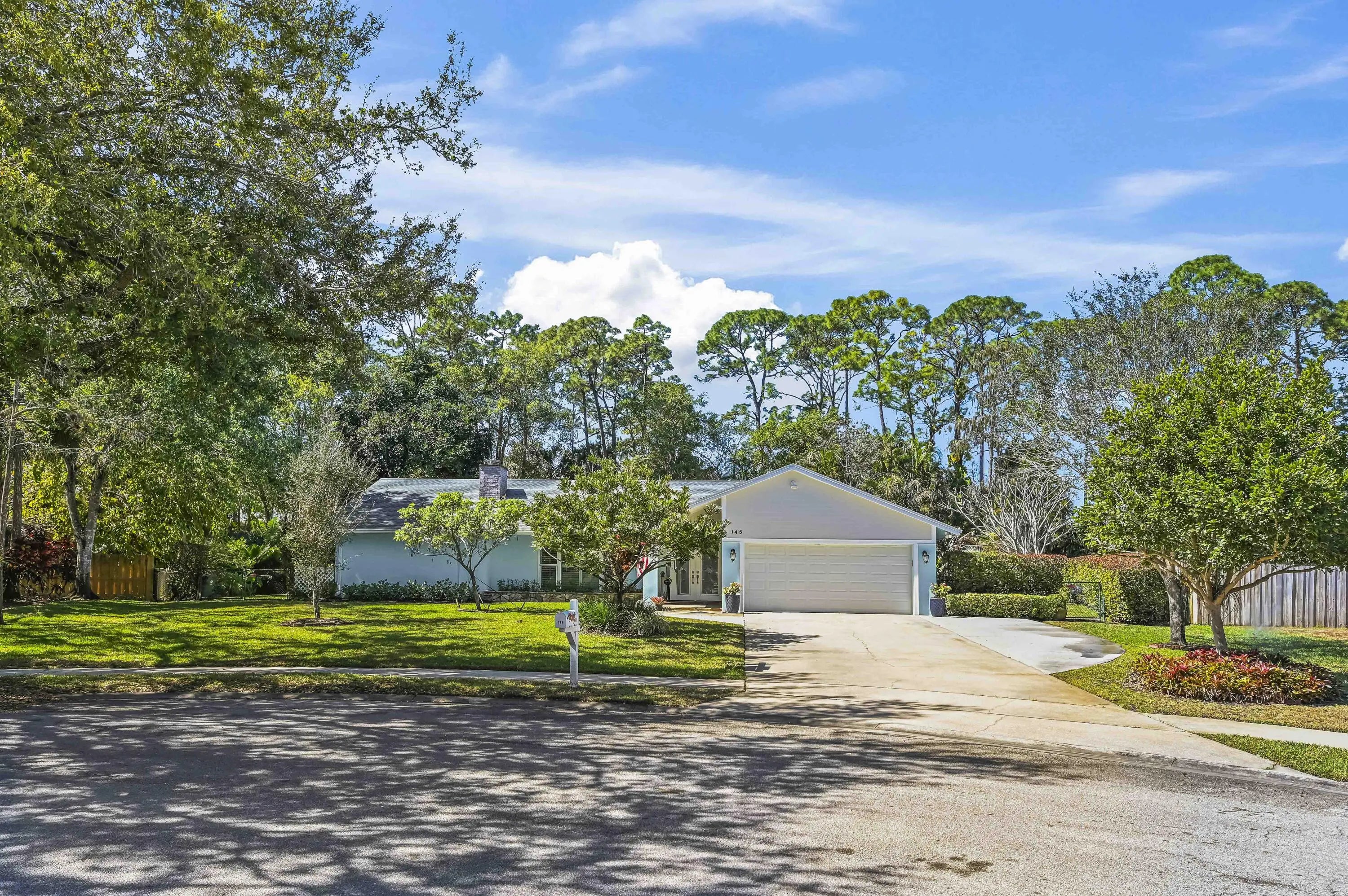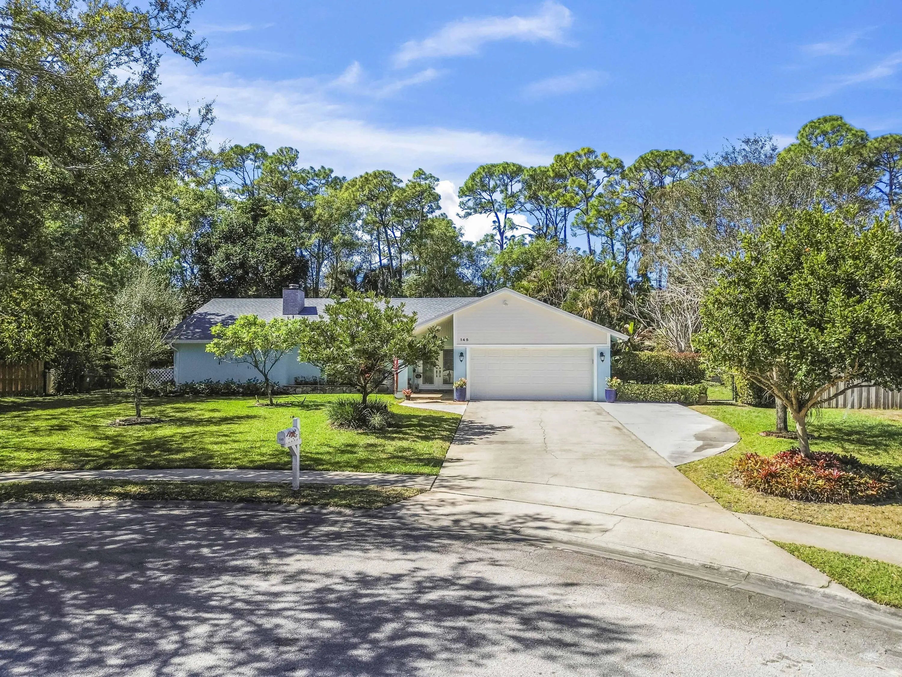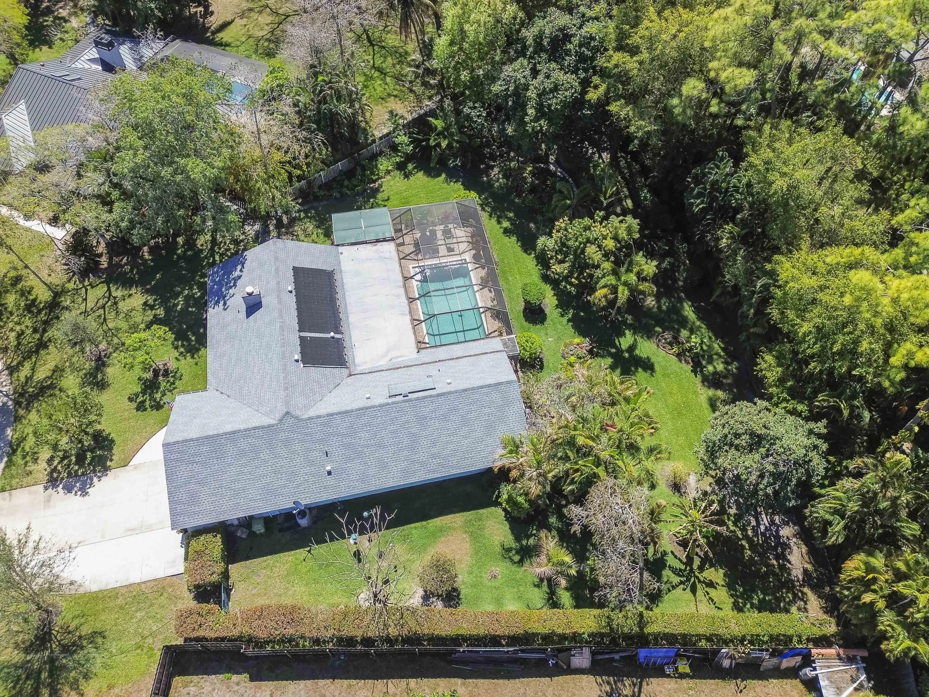 Nestled on a quiet cul-de-sac in the heart of Wellington, this charming retreat offers the perfect blend of privacy and luxury. The home greets you with a vibrant teal exterior and lush landscaping that sets the tone for the serenity found within. Step through the elegant double-glass doors into a light-filled interior featuring vaulted ceilings, a cozy stone fireplace, and a seamless floor plan. The spacious kitchen flows into a formal dining area and a sun-drenched breakfast nook, providing the ideal layout for both everyday living and sophisticated entertaining. The outdoor living space is a true Florida sanctuary, boasting an expansive screened-in lanai with a sparkling solar heated pool and a covered patio area perfect for "living like a captain." Beyond the pool enclosure, the .55 acre property extends into a massive, lushly wooded backyard filled with mature trees and tropical foliage, offering an unparalleled sense of seclusion and space. This backyard oasis is a rare find in Wellington, providing a peaceful escape for gardening enthusiasts or those simply looking to unwind in their own private forest. The master suite serves as a private spa-like haven, featuring a spacious walk-in closet and a sleek shower with designer tiling, and a modern dual-sink vanity. This home has been meticulously maintained and thoughtfully upgraded with several recent high-value improvements. Enjoy modern luxury in the fully renovated master bathroom (2024) and the efficiency of a brand-new solar water heater (2024) and solar pool heater. Peace of mind comes standard with seven recently upgraded hurricane-impact windows (2025) and a state-of-the-art pool pump with integrated controls (2025). This move-in-ready gem offers the ultimate Wellington lifestyle--combining modern comforts with the timeless beauty of Florida's natural landscape.