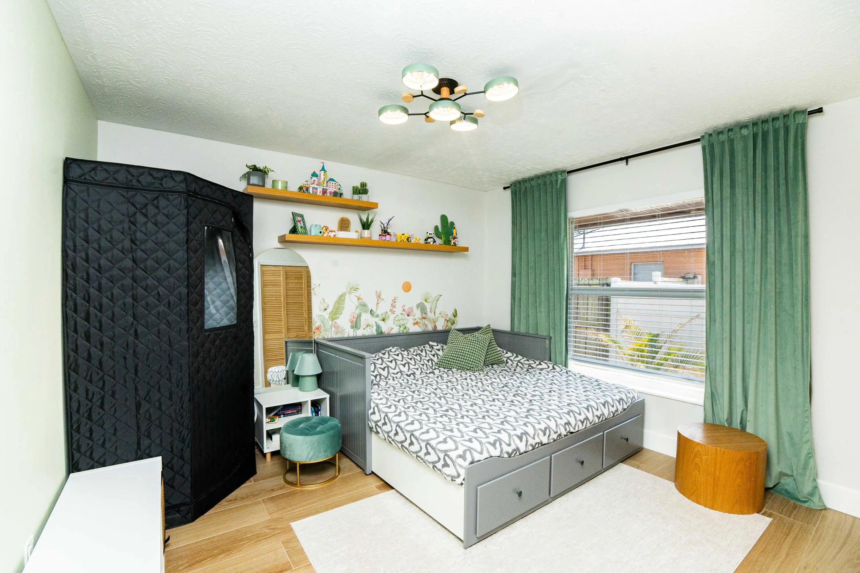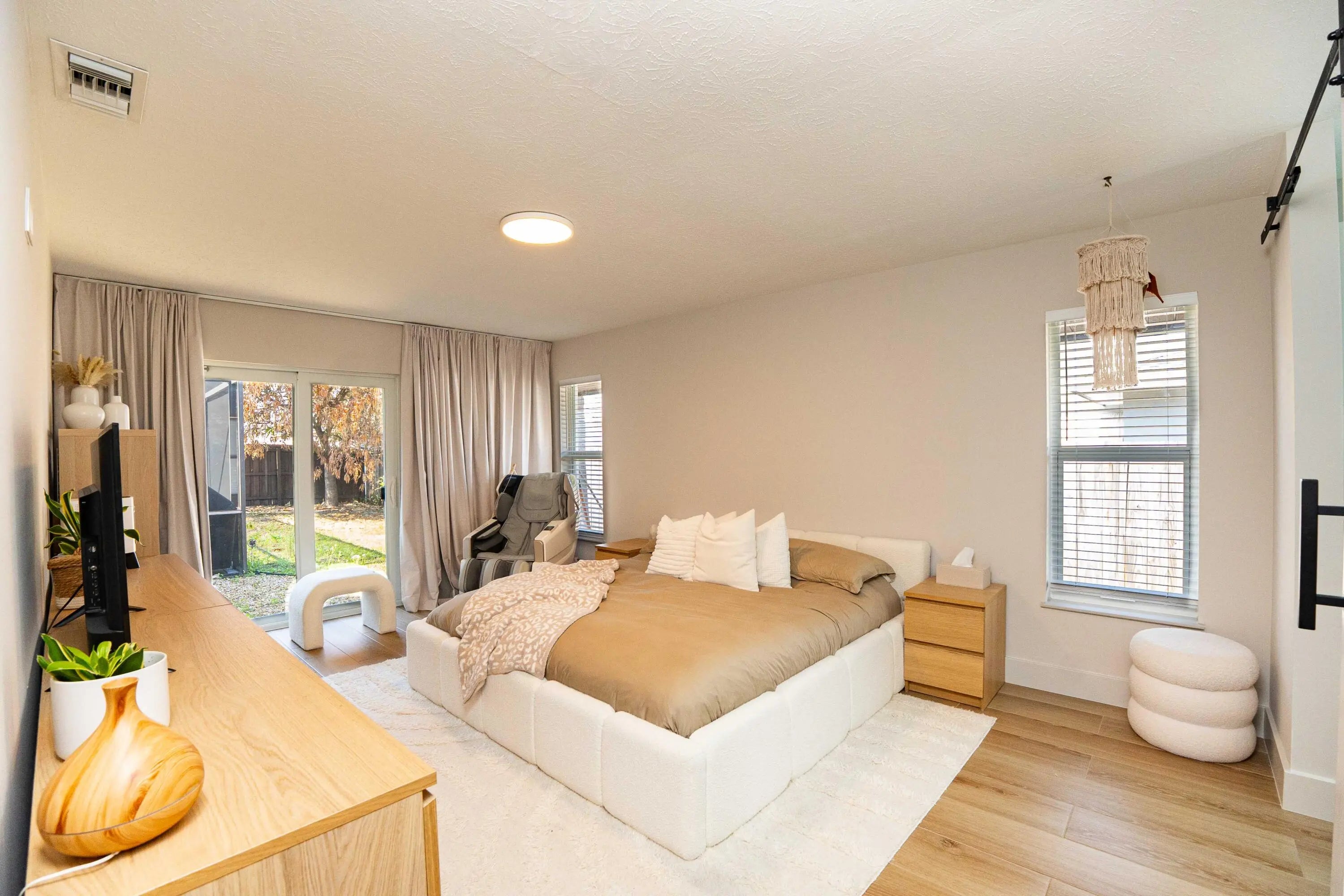 Built-in Features, Cathedral Ceiling(s), High Ceilings, Vaulted Ceiling(s), Walk-In Closet(s), Bedroom Layout - Split, Closet Cabinetry