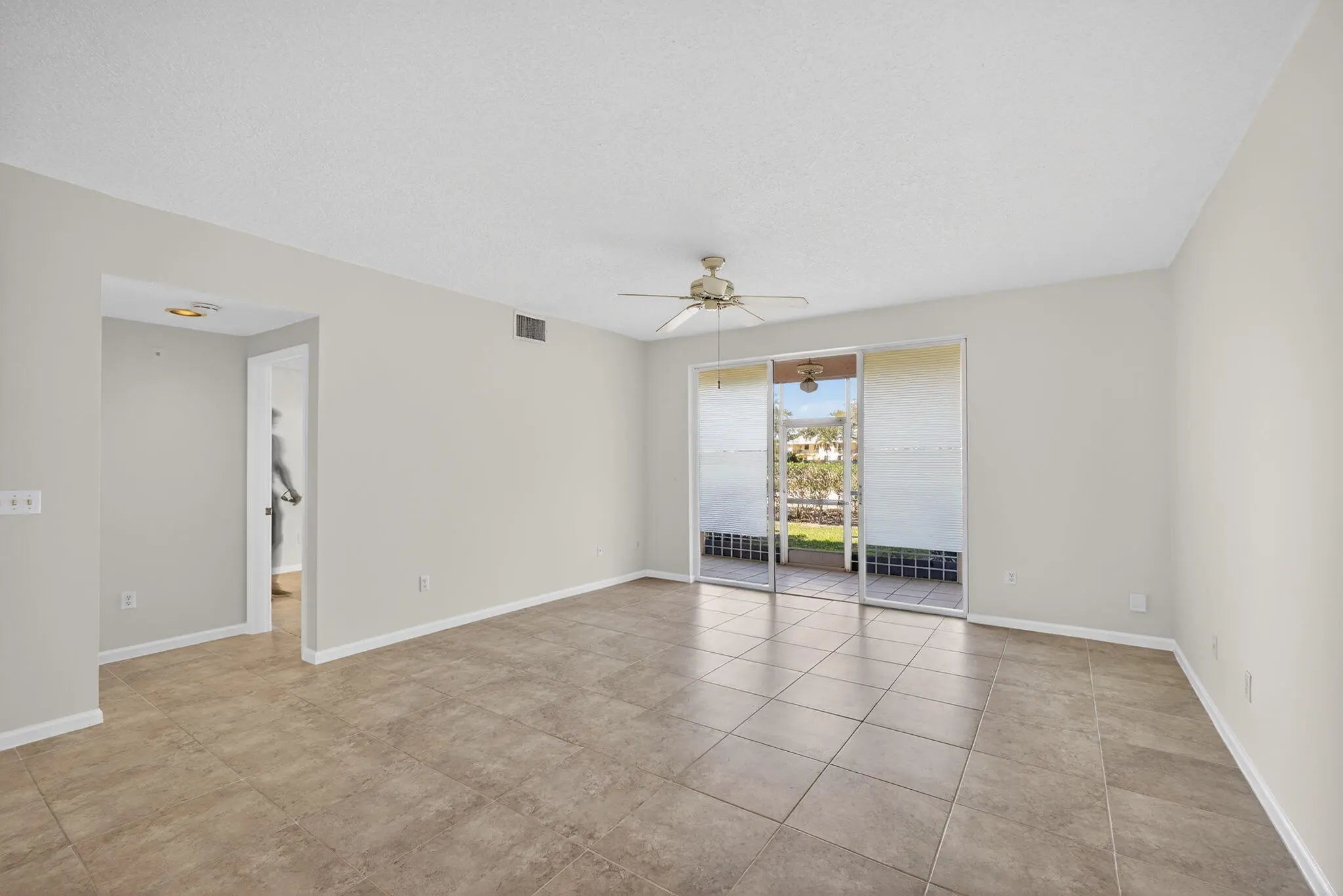 2/2 light and bright and ready for immediate occupancy on the first floor . Freshly painted. Tile floors throughout and split bedroom plan, open kitchen with breakfast bar and washer and dryer, screened porch and two storage closets, brand new microwave, Heater 2025, washer and dryer about a year old , AC 2023, two storage units , Very convenient location on the golf course, easy access to I95 and the Turnpike, beach and shops.