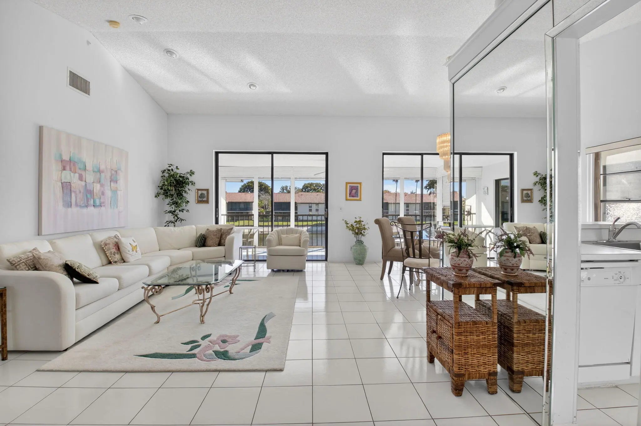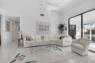 Come make this lovingly-cared-for home your own! This second floor delight offers a panoramic lake setting and features vaulted/cathedral ceilings with washer and dryer in the unit, Enjoy morning coffee with sunrise views on your private balcony as you look out towards the beautiful pool & clubhouse area to see when activity picks up. Plenty of storage with large downstairs closet for beach, bicycles and golf equipment as well as attic storage. This highly desirable active community features wide-open landscaped outdoor spaces with walking/biking trails. They don't make communities like this anymore! Palm Chase Lakes is an active 55+ community w/ resort style amenities featuring magnificent pool and spa, tennis, pickleball, shuffleboard, social hall+. Walking distance to worship!