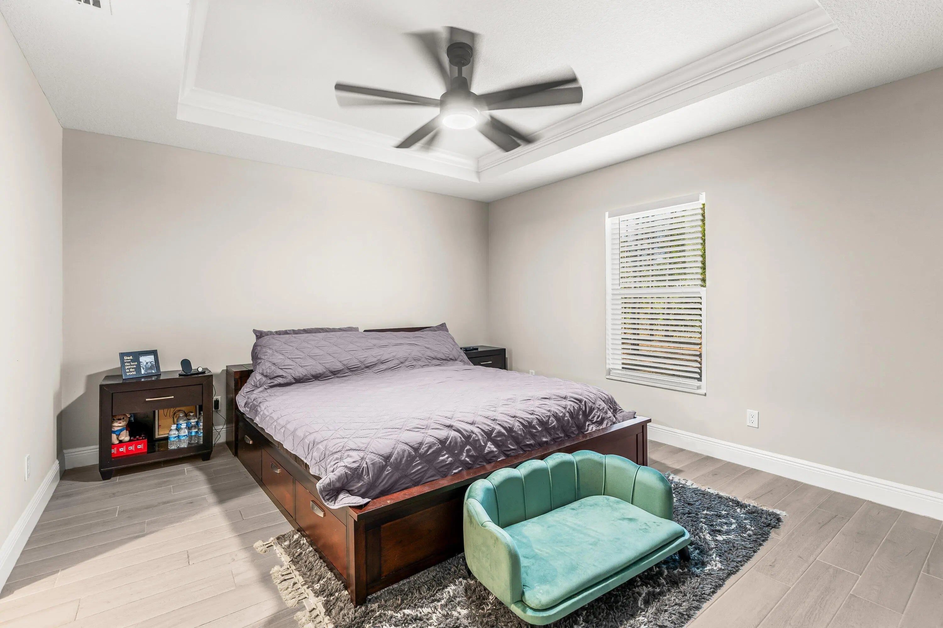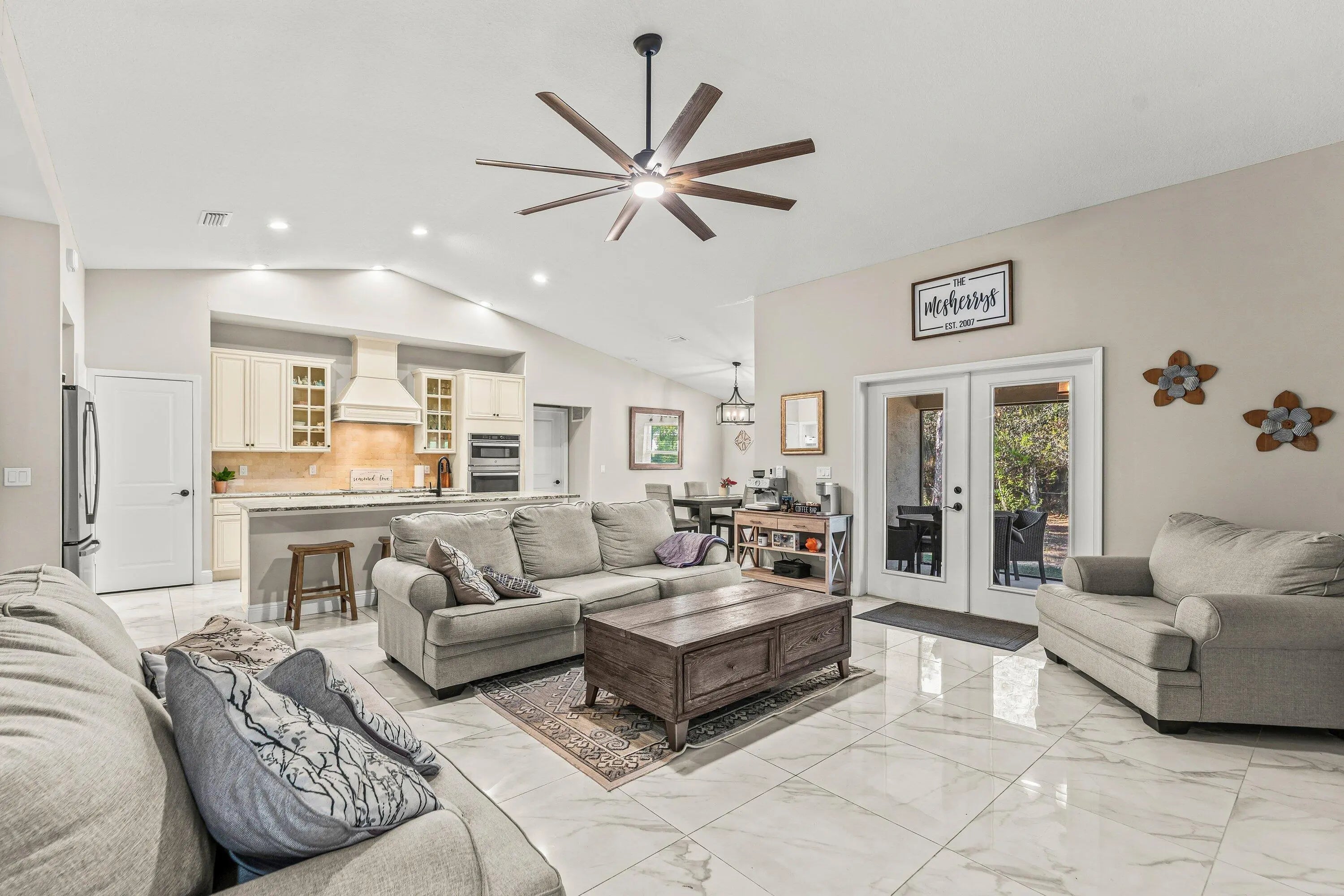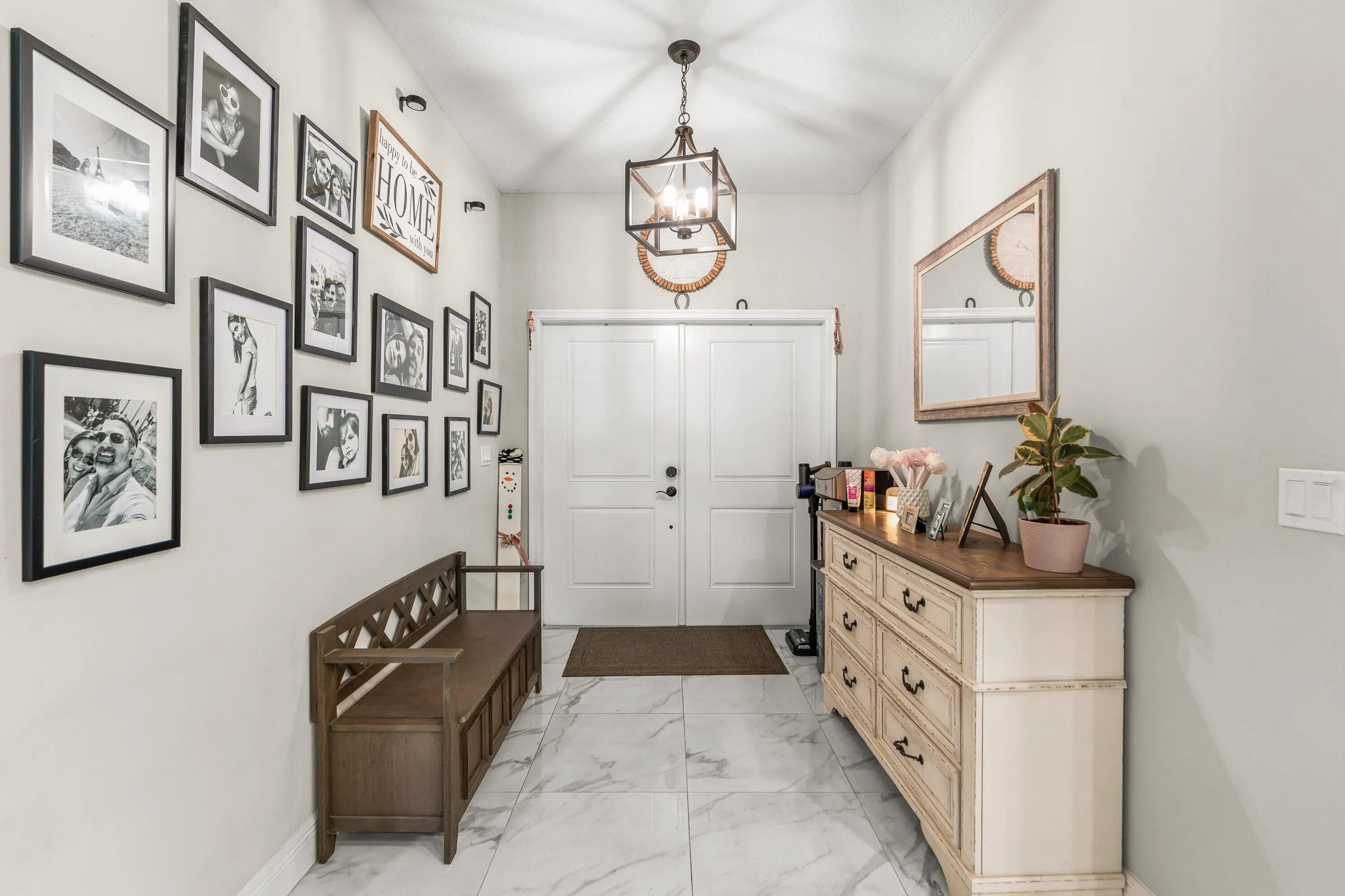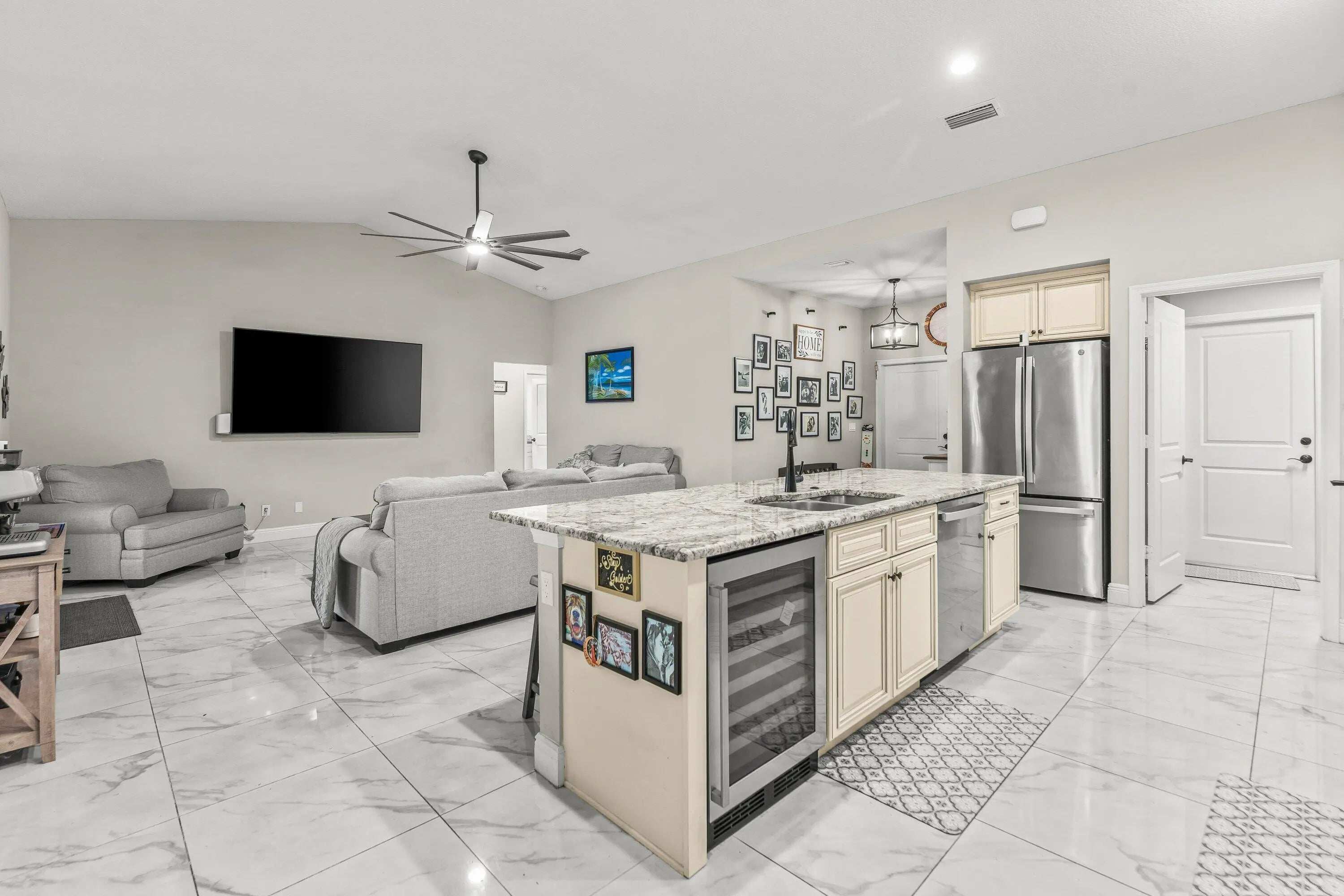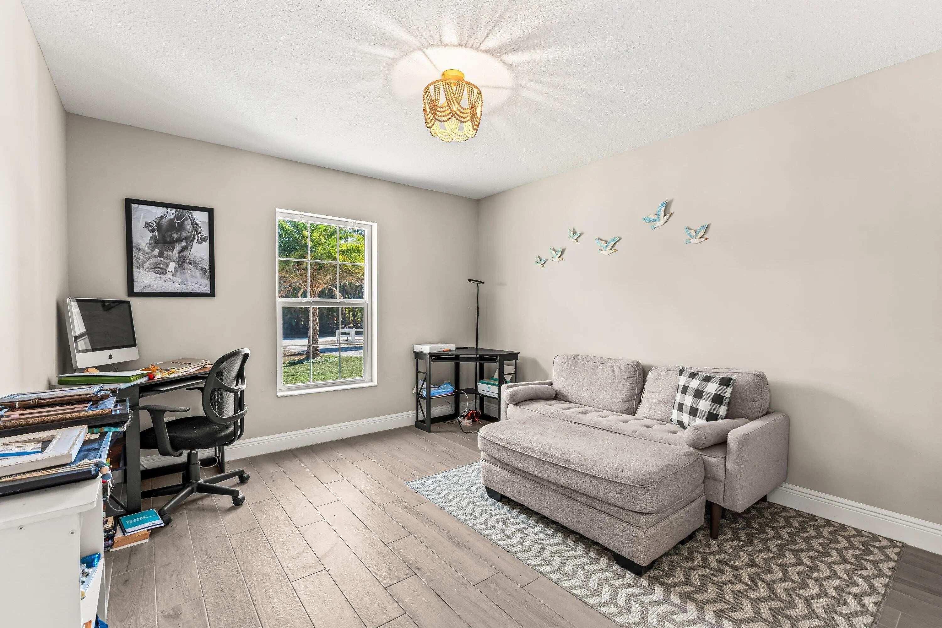 Welcome to this exceptional 2022-constructed CBS single-story home, beautifully positioned on an elevated 1.14-acre lot in The Acreage. Offering 4 bedrooms and 2 full baths in a desirable split-bedroom layout, this residence combines modern construction with over $25,000 in thoughtful builder upgrades. The open floor plan is enhanced by vaulted ceilings, abundant natural light, impact windows and doors, and upgraded Level 2 24x24 tile flooring throughout -- including bedrooms in lieu of carpet. Underground electric service adds both aesthetic appeal and reliability. The gourmet kitchen was extensively upgraded and features premium cabinetry (42'' uppers), glass cabinet accents, a custom cabinet layout with built-in wine cooler accommodation, Level III White Spring granite countertops, Mediterranean Ivory tumbled backsplash extending to the upper cabinets, upgraded GE wall oven/microwave combo, 30" cooktop with Broan hood vent, and a spacious center island ideal for entertaining. Designer details continue throughout the home with brushed aluminum interior trim, upgraded hardware and door handles, black plumbing fixtures and accessories, and elevated tile selections including a Level 3 listello accent in the master bath. The spacious owner's suite offers a large walk-in closet and a beautifully appointed bath featuring dual sinks, soaking tub, and separate shower with upgraded fixtures. Additional features include a whole-home water filtration system and a two-car garage. The Acreage is known for its expansive acre-plus lots, convenient access to Downtown West Palm Beach, Westlake, Palm Beach Gardens shopping, and Palm Beach International Airport -- and best of all, no HOA restrictions. Bring your pets, RV, boat, trailer, and all your toys.
