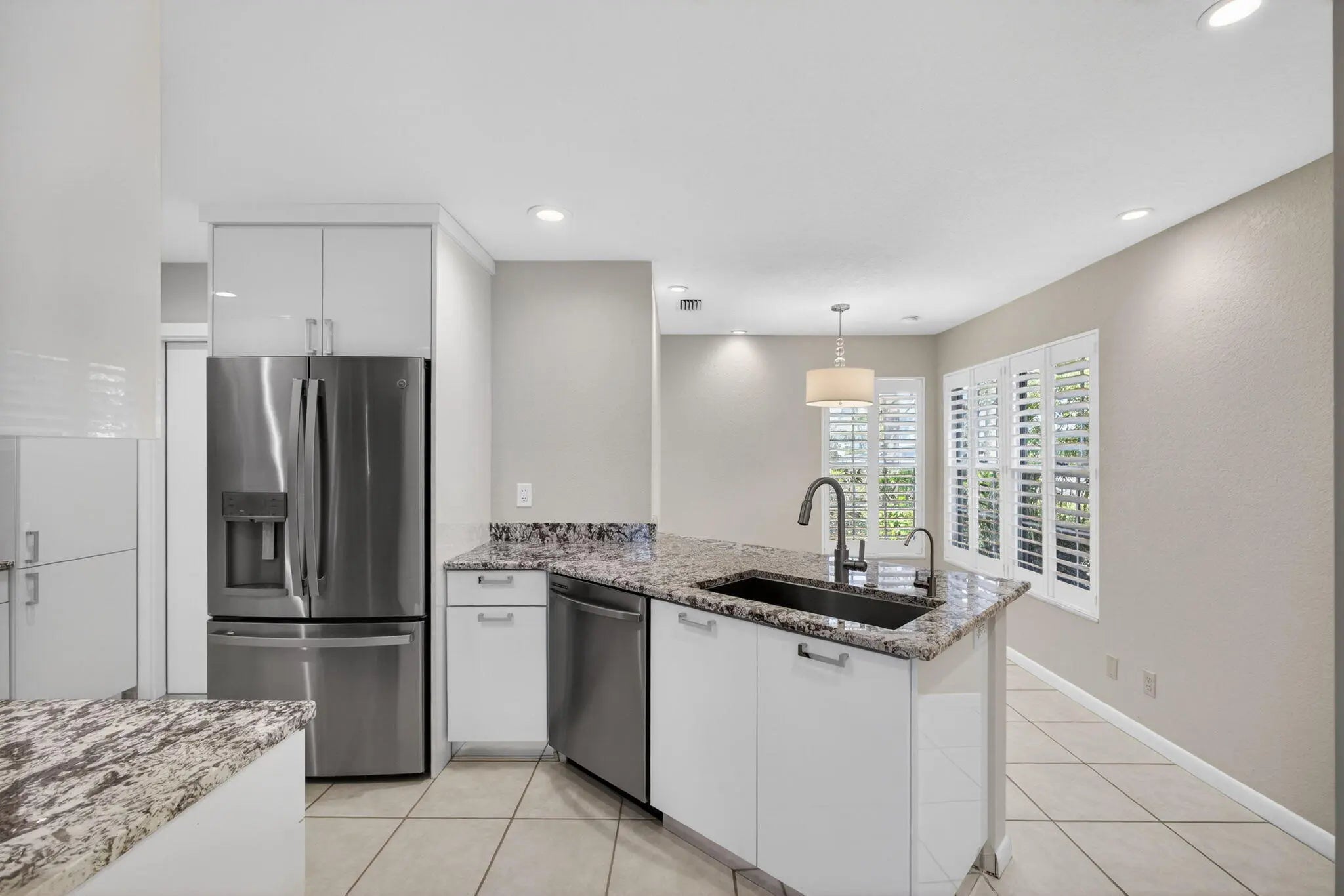 Embrace the best of Jupiter's beachside lifestyle in this thoughtfully renovated 3-bedroom, 2.5-bath townhouse with a one-car garage.This highly desirable floor plan offers the convenience of primary suite on the first floor, ideal for effortless single-story living. The thoughtfully updated kitchen is both stylish and functional, featuring stainless steel appliances, custom 37 inch cabinetry, abundant storage with pull out drawers in pantry and a reverse osmosis water filtration system for drinking and cooking. The kitchen features a charming eat-in breakfast nook-perfect for casual mornings or entertaining. Upstairs, two well-appointed guest bedrooms and a generous loft create a welcoming retreat for family, guests, or a home office. Stylish plantation shutters located on windows and living room sliding doors. The primary bath has been re-imagined with luxury in mind as well as a walk-in closet. The additional 2 bathrooms have been tastefully updated. The living room boasts vaulted ceilings creating a light and bright room which flows out to the private screened in patio overlooking lush landscaping. Enjoy the exclusive amenities of this lakeside, gated community- including a resort style swimming pool, jacuzzi hot tub, tennis/pickleball courts, bocce ball and basketball- secured by a 24/7 gate for ultimate privacy. Discover the epitome of Jupiter beach living just moments away from Jupiter beach/Juno Pier, convenient Bluffs Shopping Plaza which includes Publix, fabulous restaurants and other fine stores!
