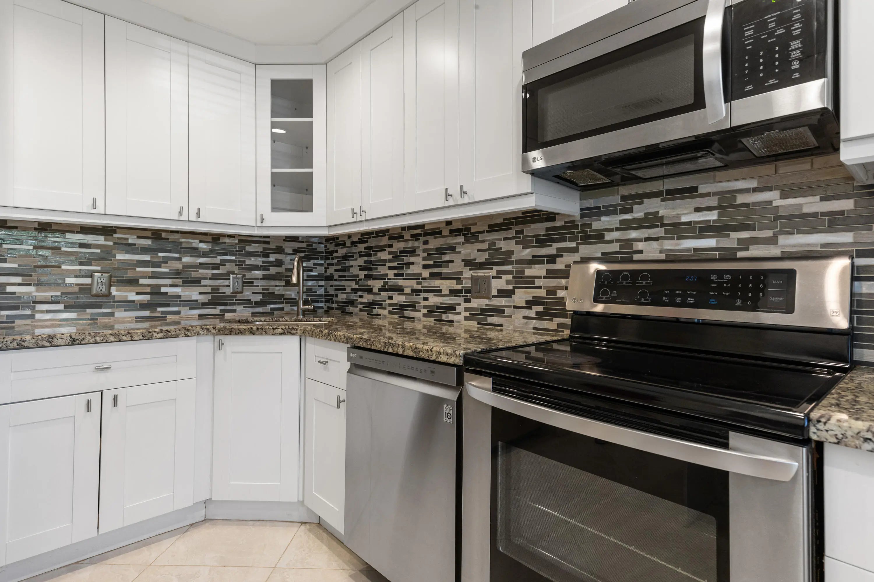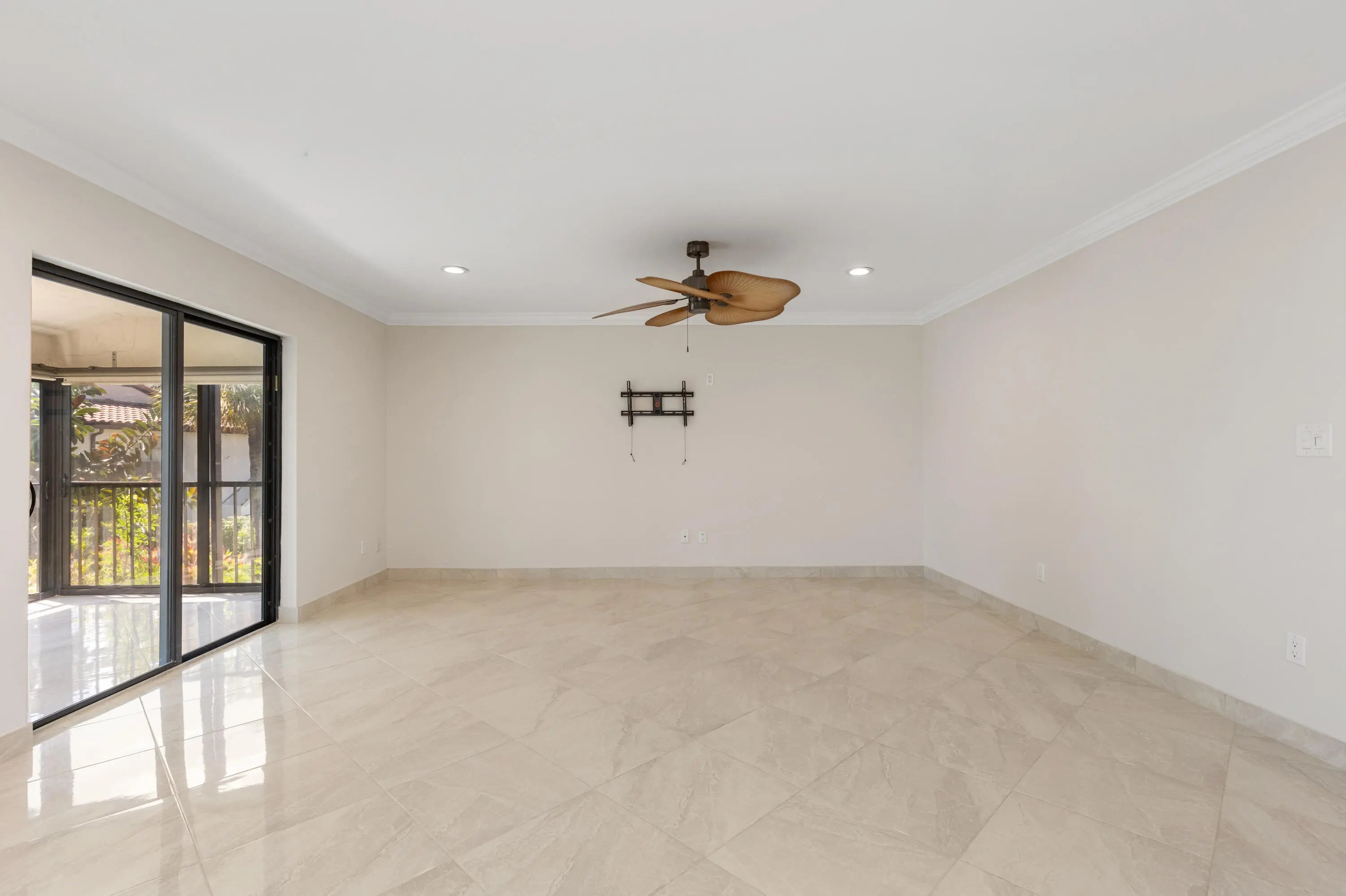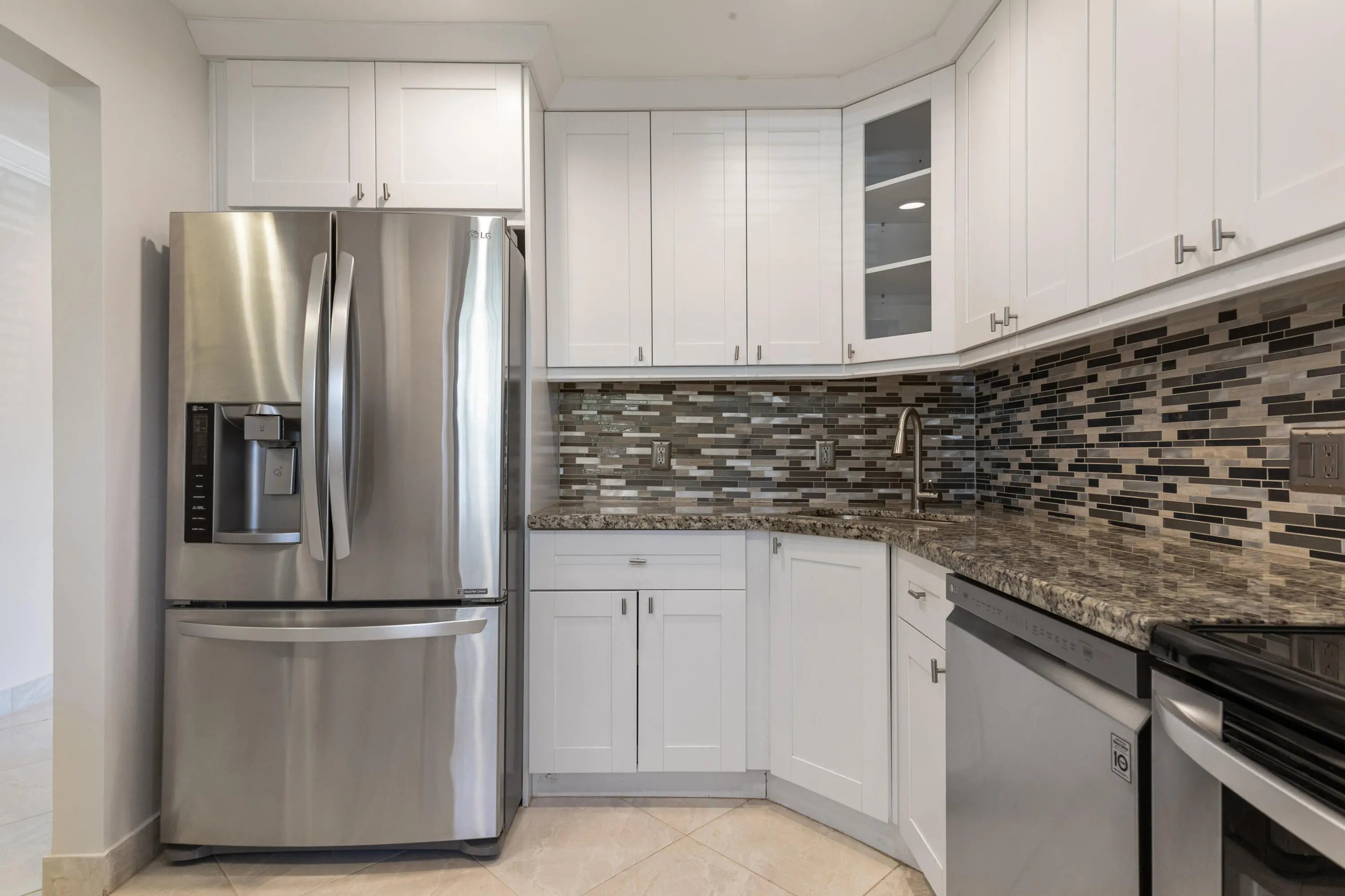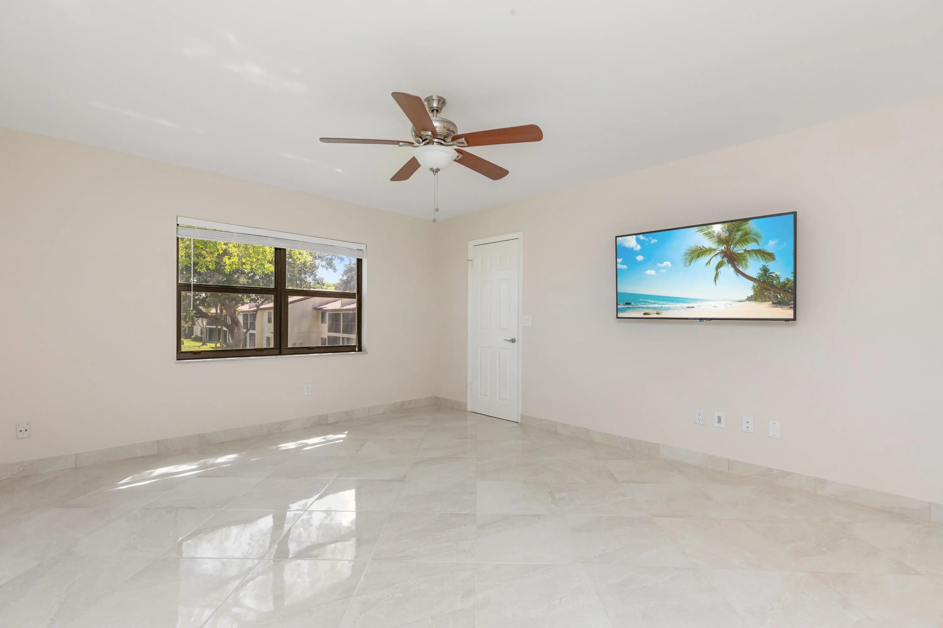 Corner Unit with Private Entrance & Serene Lake Views. This exceptional corner unit, move in ready, is in a desirable community and offers a private entrance and staircase, providing enhanced privacy. Shared storage under stairs with unit K. The spacious 2 bedrooms plus den layout has been thoughtfully redesigned--the den wall was removed to create a significantly larger living area and can easily be restored if desired. The entire unit has been newly painted and features elegant porcelain tiles flooring throughout. NO POPCORN. Additional highlights include LED recessed lighting, a CENTRAL VACUUM system, TANKLESS WATER HEATER and ALL WINDOWS and SLIDING DOORS are IMPACT GLASS. Balcony with AC, electric shadow blinds. AC 2022; Roof 2023. Custom made queen Murphy bed & bookcase in 2nd room.