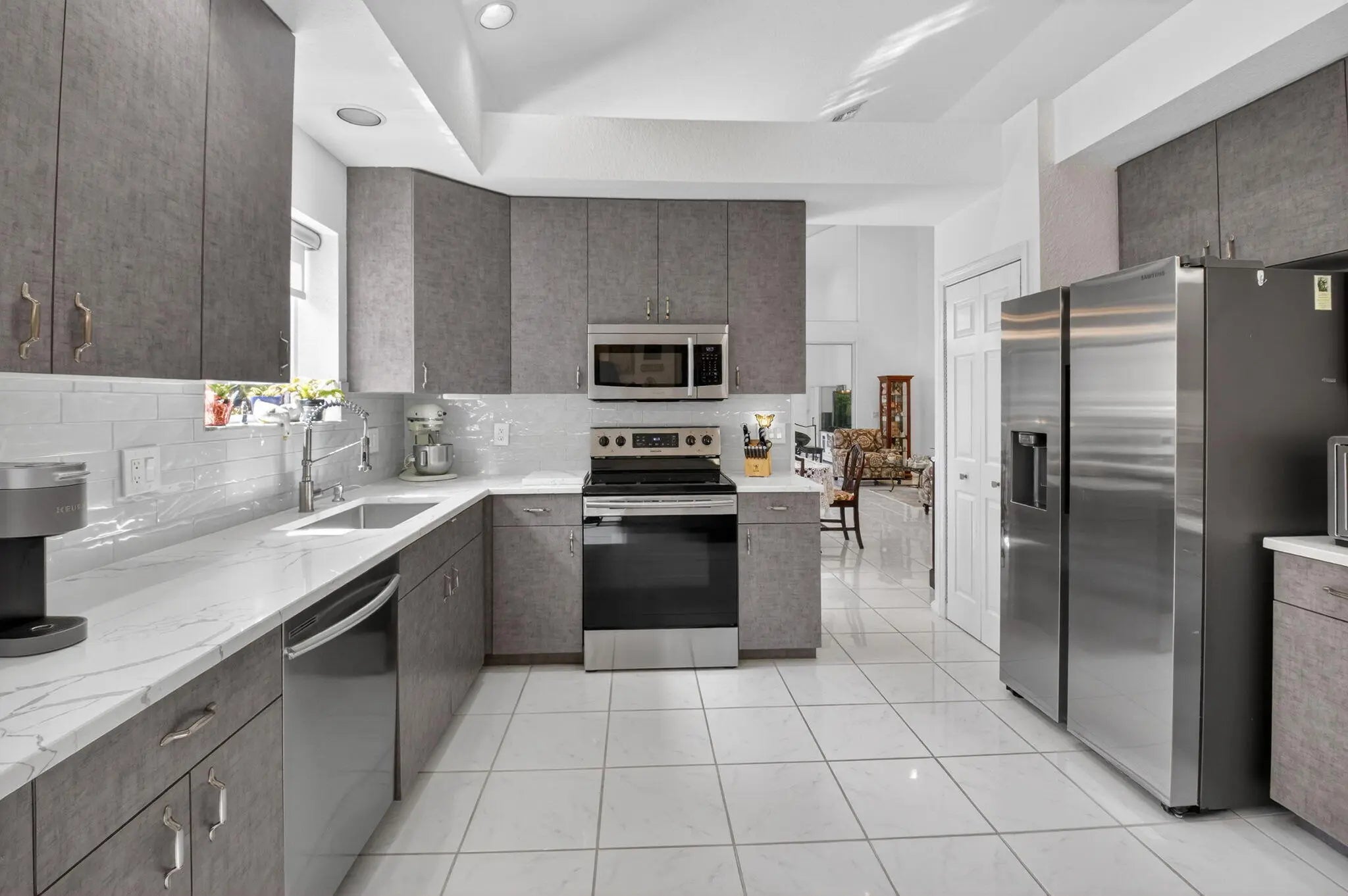 Golf-course living in gated Hampton Fairways at Indian Spring! This beautifully maintained 3BR/2.5BA home is perfectly positioned on the 16th hole of the West Course, offering tranquil fairway views and an exceptional lifestyle. Enjoy the community's private clubhouse with pool, spa, card room, and kitchen, plus optional Indian Spring Country Club membership. The roof was replaced in 2019. The kitchen was recently updated with so-close cabinetry and newer appliances (2018-2022), plus a 2023 washer & dryer (some appliances all under warranty). Comfort is enhanced with two-zone A/C (main system 2010, primary suite zone 2013) and a 2020 water heater. The garage features a new insulated door with new springs and a new opener. Home is generator-ready (generator negotiable). Hurricane shutters throughout. The HOA includes cable & internet, 24-hour manned gate, trash removal, common-area landscaping, scheduled roof/driveway power washing, and exterior painÀŸng every five years.