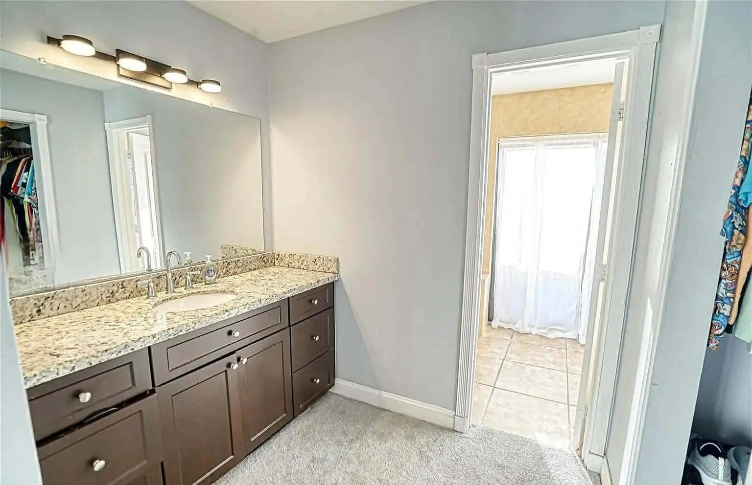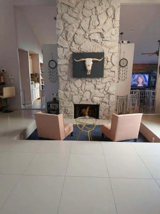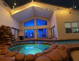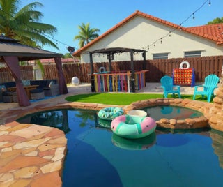Remodeled corner-lot pool home featuring 4 bedrooms, 2 bathrooms, with the 4th bedroom created from a converted garage (can be converted back). Smart home upgrades include automated lighting, video doorbell, smart lock, and two Nest A/C thermostats. Updated kitchen with granite countertops, stainless steel appliances, snack bar, and island seating. Features include newer tile and carpet, recessed and LED lighting, and a cozy fireplace with reading area. Resort-style backyard with resurfaced heated lagoon pool & spa, beach patio, Tiki bar, outdoor theater screen, and speakers -- perfect for entertaining. Circular driveway, entrance waterfall, attic shelving, newer tankless water heater, and No HOA!