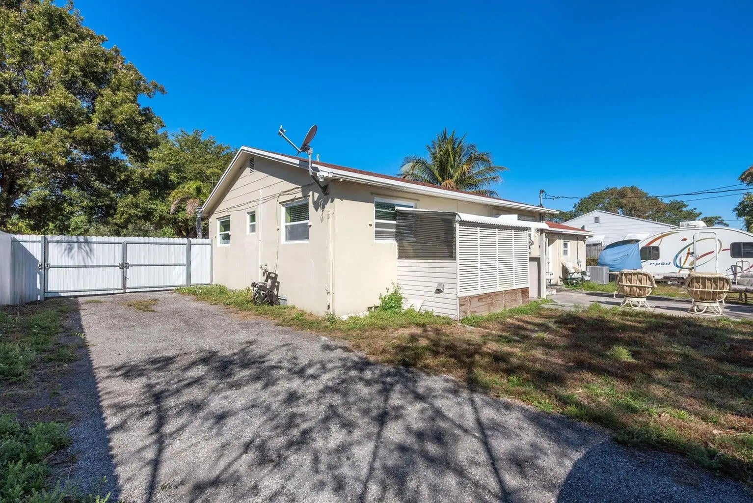 Excellent opportunity in the heart of Palm Springs! This fully updated property sits on an oversized, fully fenced lot and features two separate living spaces under one roof. The main residence offers 2 bedrooms and 2 bathrooms, while the additional efficiency unit provides a flexible layout ideal for extended family, guests, or rental potential (buyer to verify use and zoning).The interior has been fully remodeled with updated finishes throughout. Major improvements include a newer roof, A/C system, and water heater, providing added value and peace of mind.The expansive backyard offers abundant space for RVs, boats, trailers, additional parking, pets, or possibilities. Separate entrances enhance privacy and functionality.