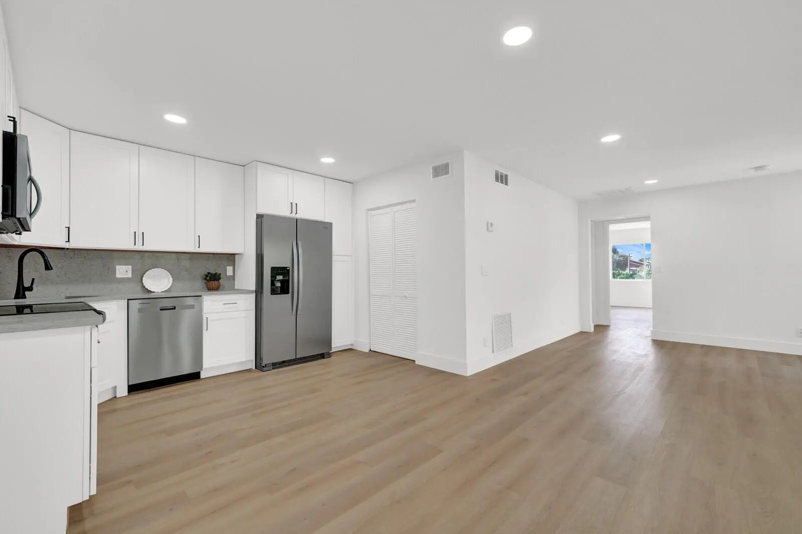 Beautifully remodeled 2-bedroom, 1-bath apartment located in a 55+ community. This home features an open-concept layout with a brand-new kitchen equipped with new appliances and quartz countertops. The property also includes a renovated bathroom, new flooring throughout, and updated lighting and electrical systems. For your convenience, the unit features an in-unit laundry room and a tankless water heater. As you enter the unit the patio is air-conditioned which adds to the living space of the home. The building also boasts a new roof installed in 2024.