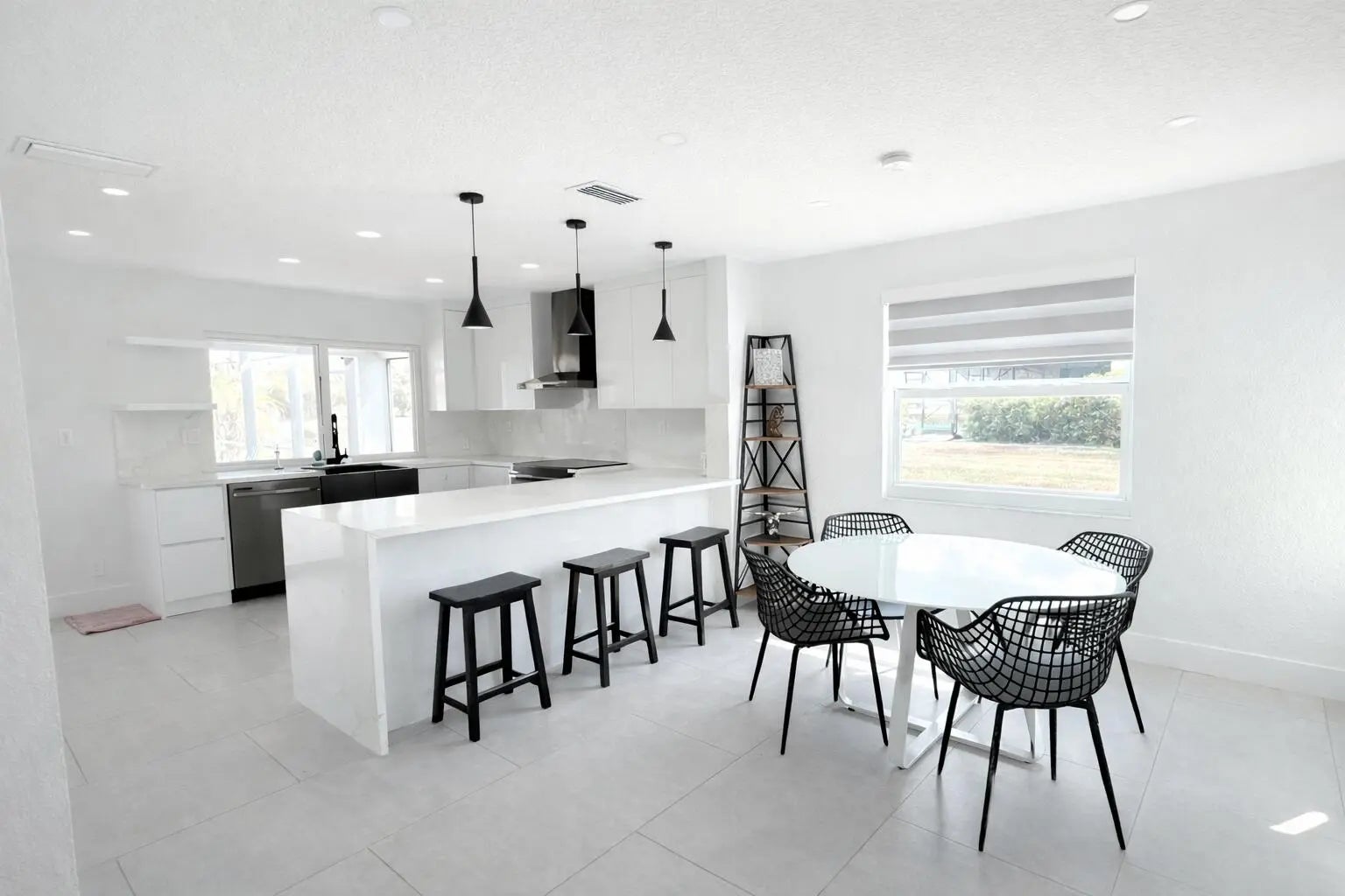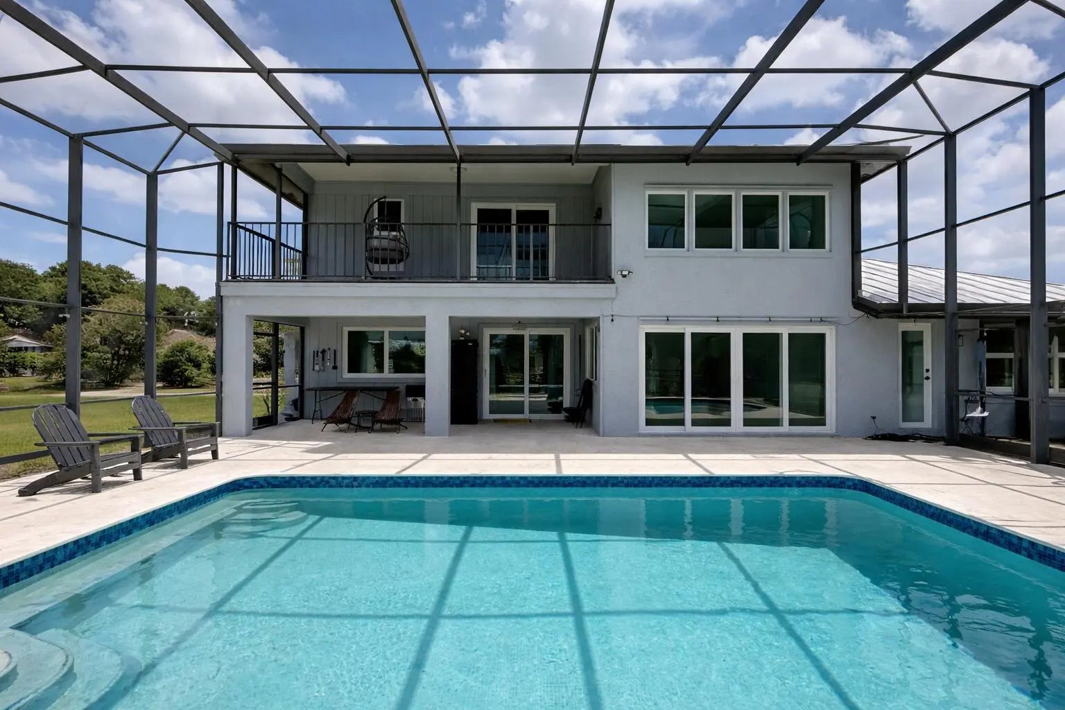 Welcome to this beautifully remodeled 4-bedroom, 3-bathroom lakefront pool home with NO HOA! This spacious and well-maintained property offers the perfect blend of comfort, flexibility, and location. Enjoy true Florida living with a private screened-in in-ground pool overlooking the lake, creating a peaceful setting for relaxing or entertaining. The versatile fourth bedroom has been converted into a guest space with a built-in Murphy bed, ideal for visitors, a home office, or multi-purpose use. The expansive floor plan features generous living areas and a large family room. The primary suite is located on the second level and includes a private screened-in sitting area on the deck with beautiful views of the lake and pool. Additional highlights include two A/C units, sprinkler system on well, city water and sewer, and excellent overall maintenance. Centrally located just minutes from shopping, dining, and easy access to the Turnpike. Move-in ready lakefront home with no HOA restrictions.