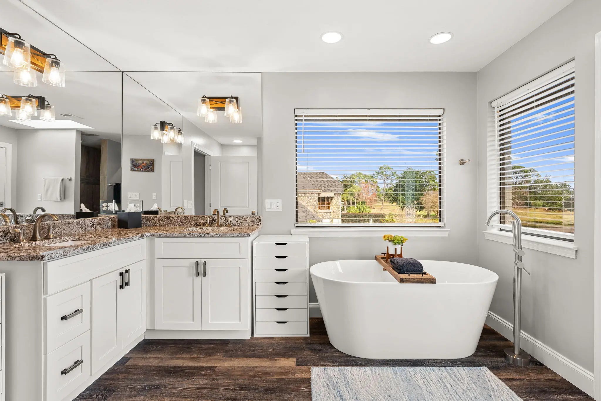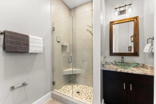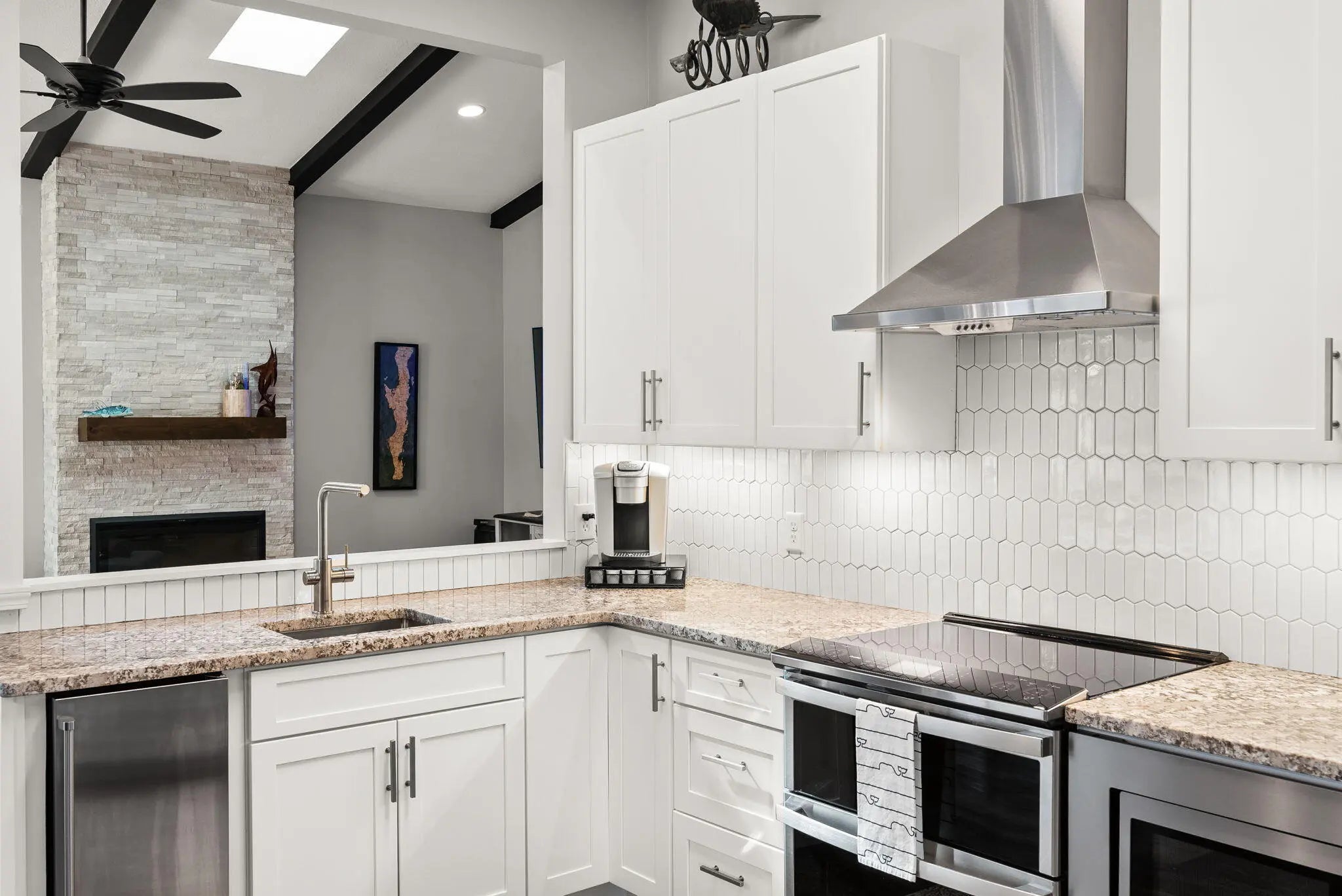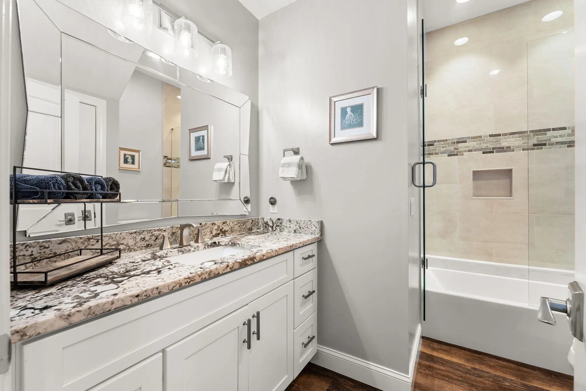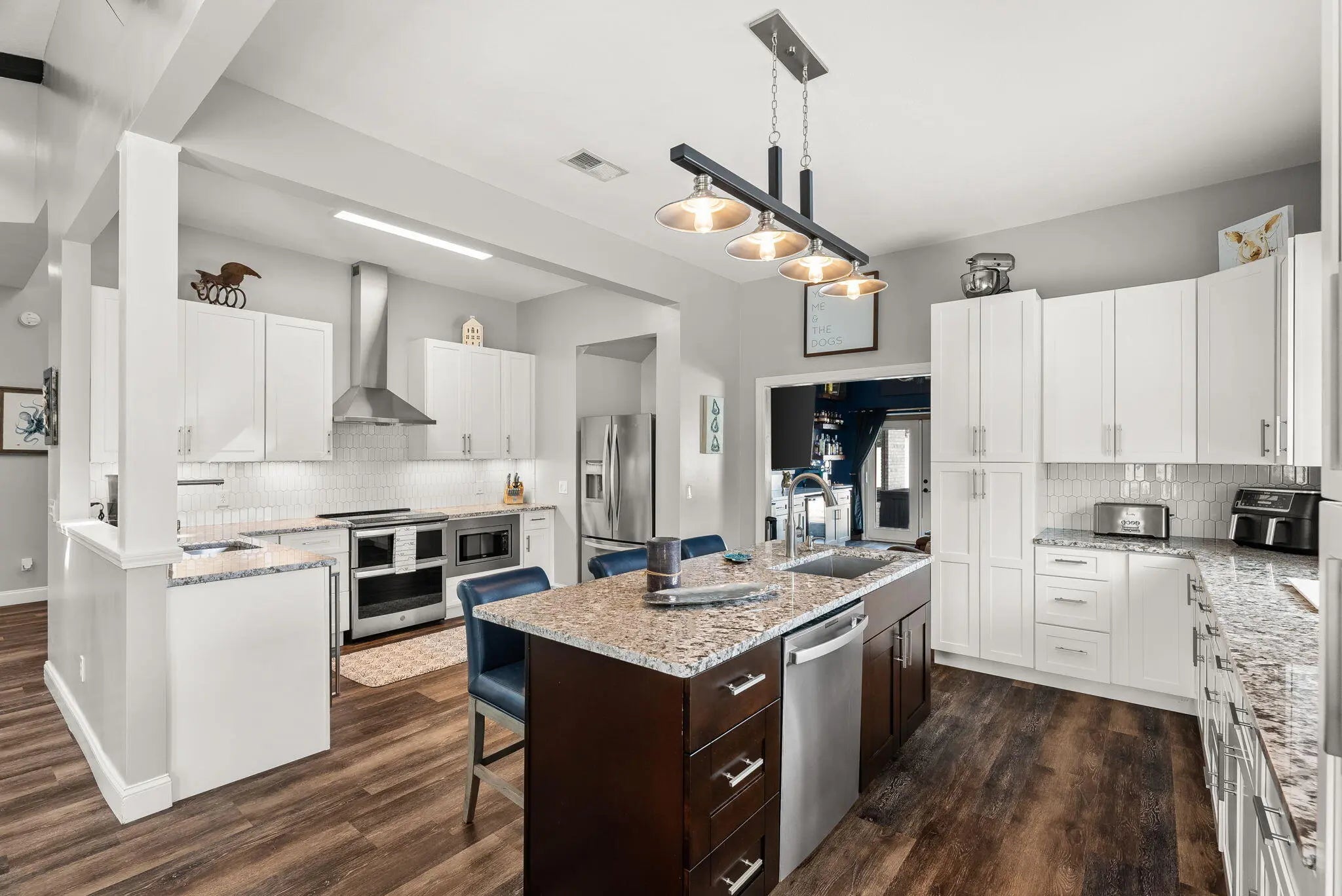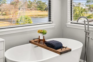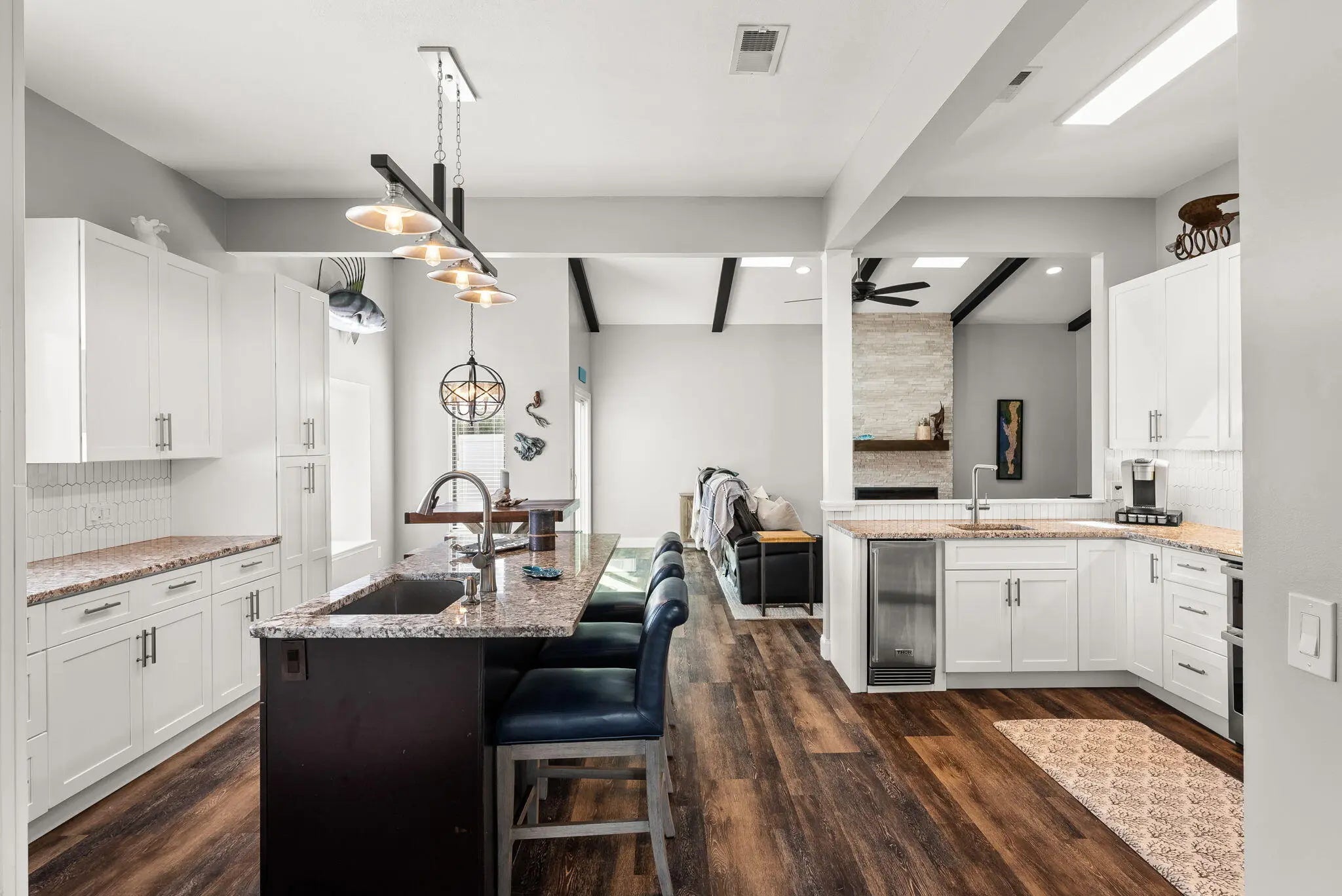 Located within the gated golf and marina community of Bay Point, this fully remodeled 4-bedroom, 3-bath residence offers 2,913 square feet designed for elevated coastal living and exceptional entertaining. Renovated top-to-bottom in 2019--including roof, electrical, lighting, appliances, two water heaters, and dual HVAC systems--the home blends modern infrastructure with curated coastal style. Brand-new custom closet systems throughout, upgraded kitchen cabinetry with convenient pull-out storage, added recessed lighting with strategically placed dimmers, new garage door opener and thoughtful design details reflect meticulous care. The kitchen also features a brand-new ice maker that conveys, along with a premium faucet offering a built-in seltzer dispenser, available with an acceptable offer. The flexible layout includes a private first-floor primary suite and an expansive upstairs retreat with a spa-inspired bath and private balcony, creating a true owner's sanctuary. A mezzanine bonus level offers ideal space for an office, lounge, or flex area. Designed to host, the former dining room has been transformed into a striking Bourbon Lounge and Sports Theater, complete with custom shelving, LED accent lighting, kegerator, beverage refrigeration, and double doors opening to a newly completed 1,140 sq ft bi-level paver patio. The patio is thoughtfully prepped for a future outdoor kitchen with reinforced stone underlayment and utility conduits beneath the pavers--built for game days, gatherings, and coastal evenings alike. Additional highlights include brand-new vinyl fencing with multiple gated access points (including an oversized entry), custom garage storage, irrigation, and motion lighting. Select features--including bourbon lounge equipment, gym equipment, beverage appliances, Ring cameras (3) and additional refrigerators--may convey with an acceptable offer. Bay Point offers gated security, championship golf, marina access, and one of Panama City Beach's most established residential environments. Opportunities with this level of renovation and entertaining infrastructure in Bay Point are increasingly rare.