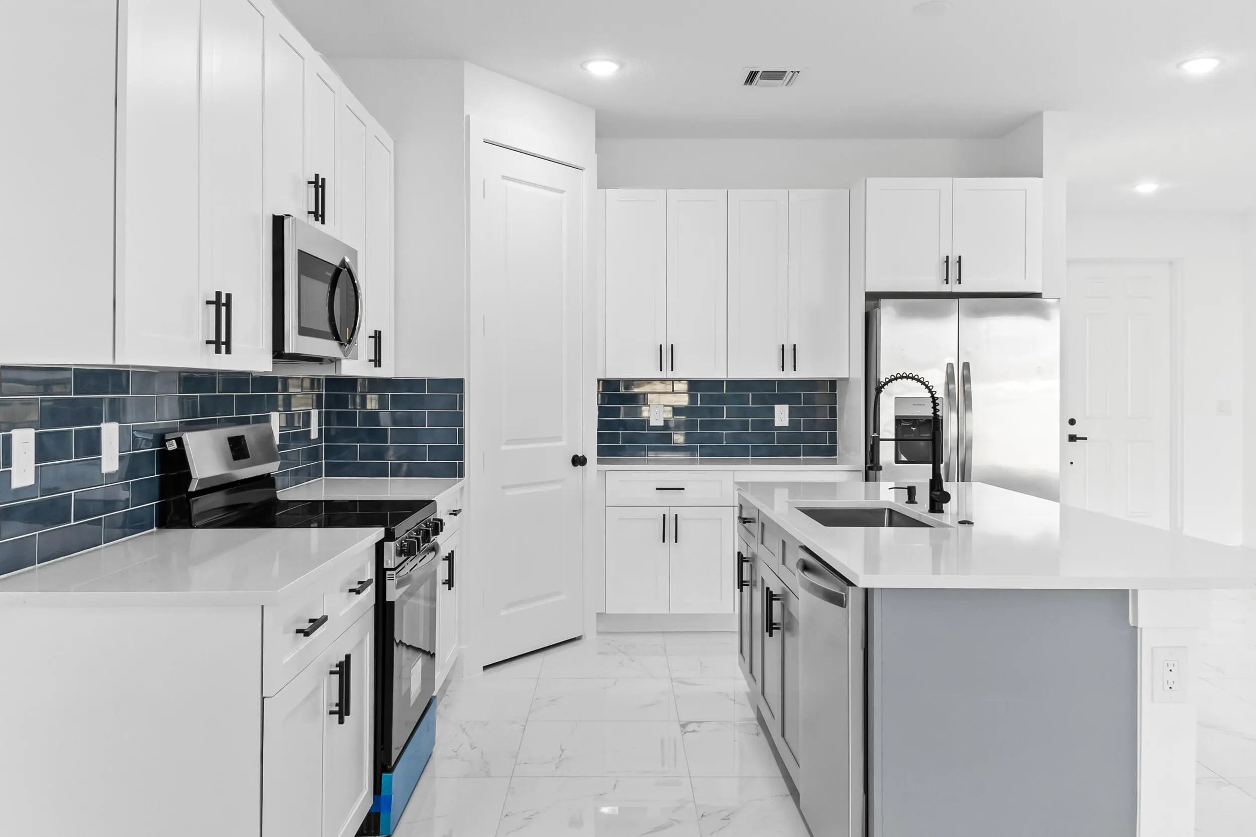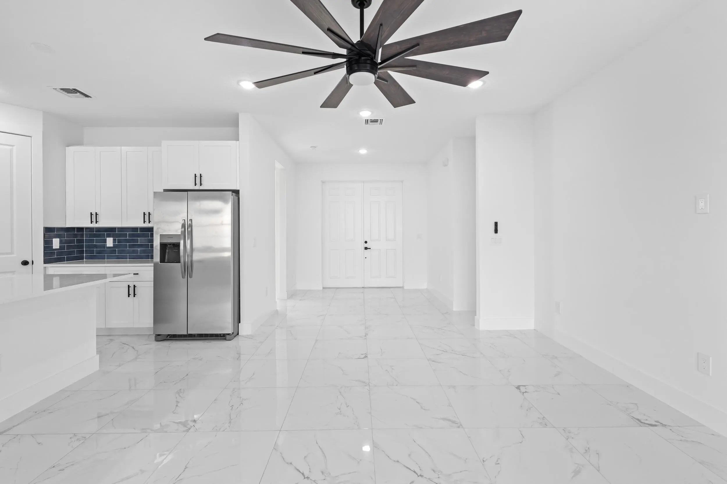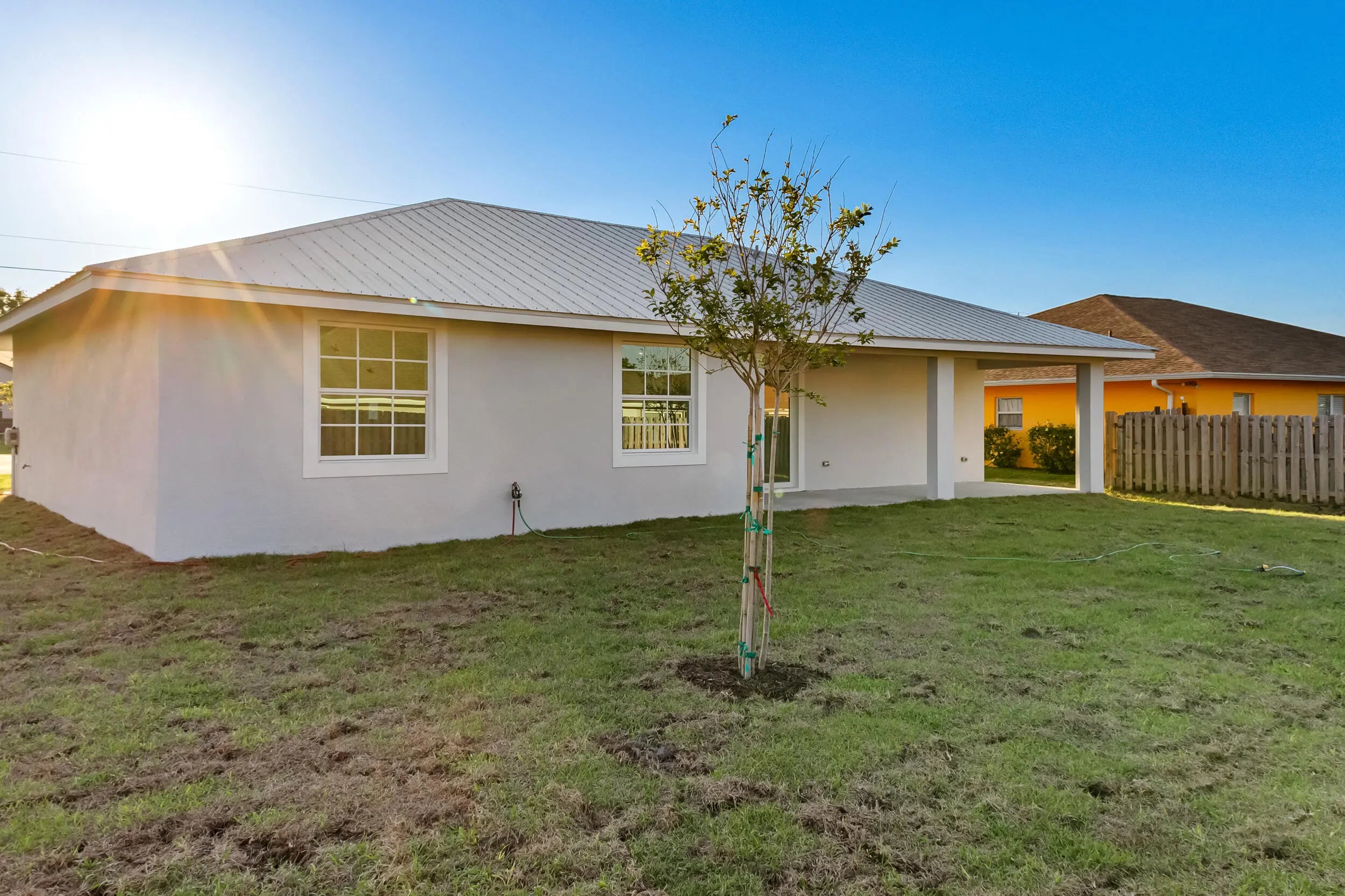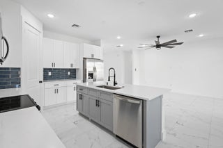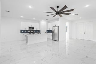 Welcome to this stunning new construction home located in a quiet and desirable area of Port St. Lucie, surrounded mostly by newer homes that enhance both lifestyle and long-term value. This beautifully designed 4-bedroom, 3-bathroom home with a 2-car garage offers modern elegance and thoughtful upgrades throughout. Enjoy tile flooring in every room and soaring 8-foot interior doors that create a bright, open, and sophisticated feel. The spacious open-concept layout is perfect for both everyday living and entertaining. The kitchen is a true centerpiece, featuring 42'' upper cabinets, sleek quartz countertops, and a clean, contemporary design with plenty of storage and workspace. The bathrooms continue the upscale look with quartz countertops, ceramic tile, glass shower doors, and... ... stylish black wall-mounted rainfall showerheads that provide a spa-like experience. Built with Florida living in mind, this home includes impact windows and exterior doors for added security, energy efficiency, and peace of mind during storm season. A durable metallic roof enhances curb appeal while offering long-lasting protection. Step outside to a huge fenced backyard with plenty of room for a future pool, outdoor kitchen, or entertainment area. This move-in-ready home combines modern style, quality construction, and an excellent location -- a must-see in today's market. Step inside and be wowed by the elegant tile flooring throughout and the soaring 8-foot interior doors that elevate the home's modern, sophisticated ambiance. In the bathrooms, luxury reigns supreme with ceramic tile, glass shower doors, and sleek black wall-mounted rainfall showerheads that create a spa-like experience every day. The heart of the home, the kitchen, is designed to impress, with 42'' upgraded cabinets providing ample storage and a polished, modern look. This home is a showstopper that offers everything you could ask for in modern living!