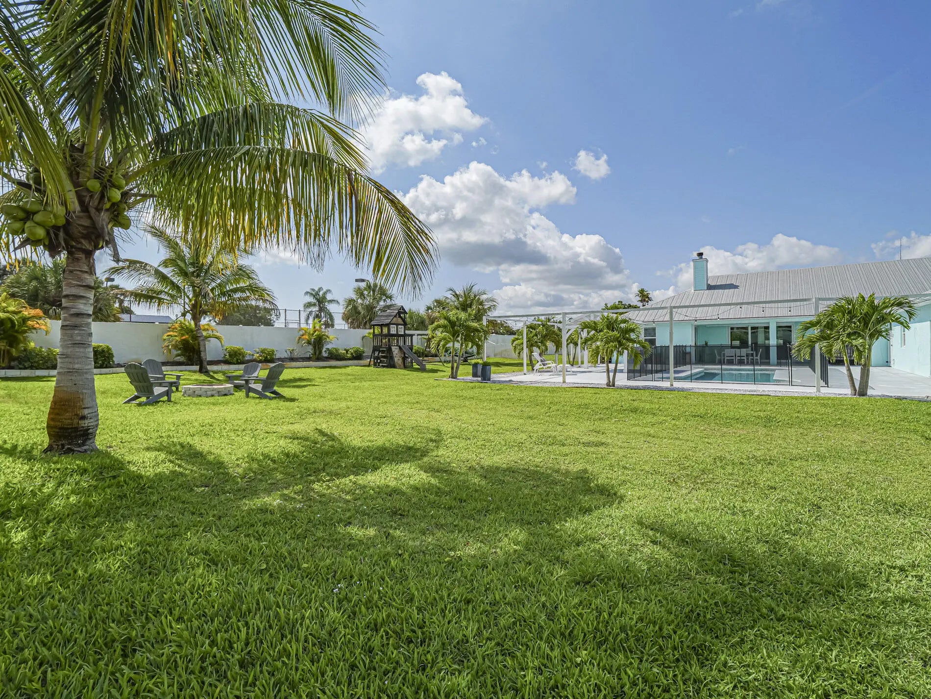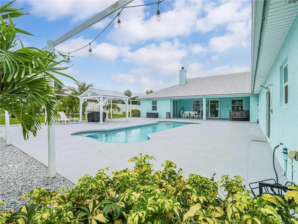 Nearly an acre of coastal paradise! This 2016 concrete block estate offers ultimate privacy with a gated perimeter wall, metal roof, and impact windows for low insurance. Just minutes from the beach, the sprawling grounds feature a saltwater pool with a new heater/chiller for year-round luxury. The property includes a versatile guest apartment, massive storage attic, and a large driveway. Whether you're relaxing in your resort-style backyard or enjoying the high-efficiency interior, this home offers endless possibilities and total peace of mind.