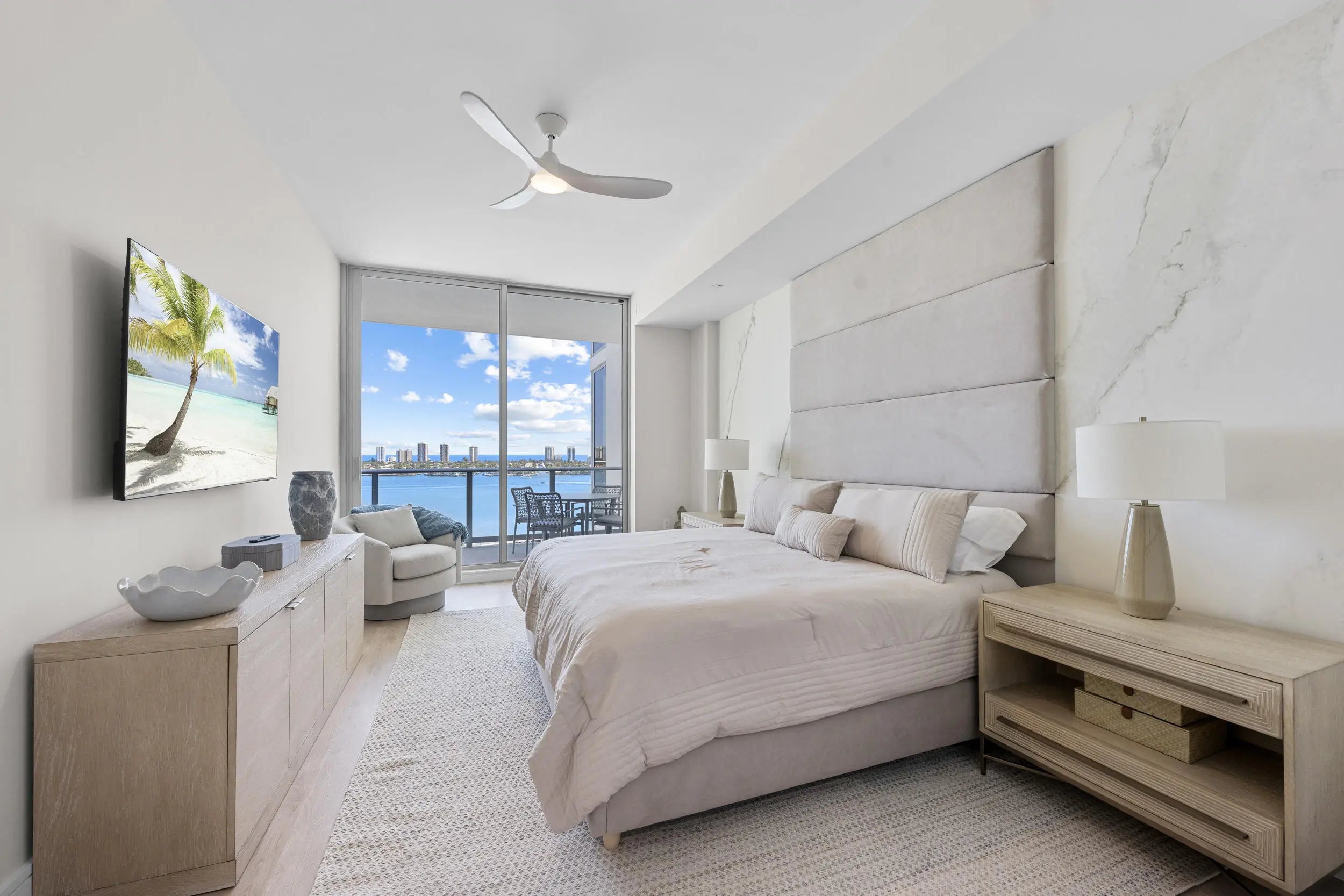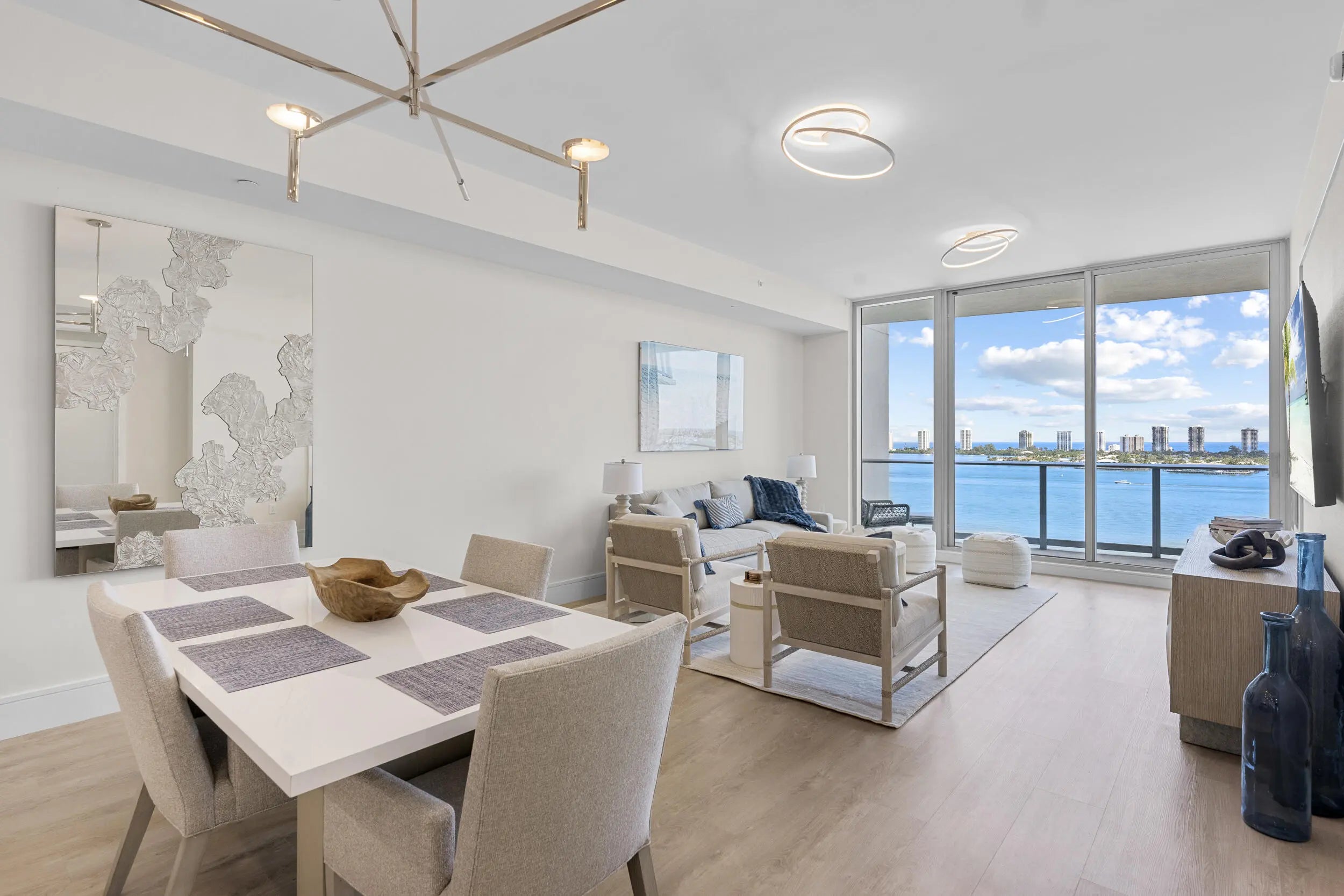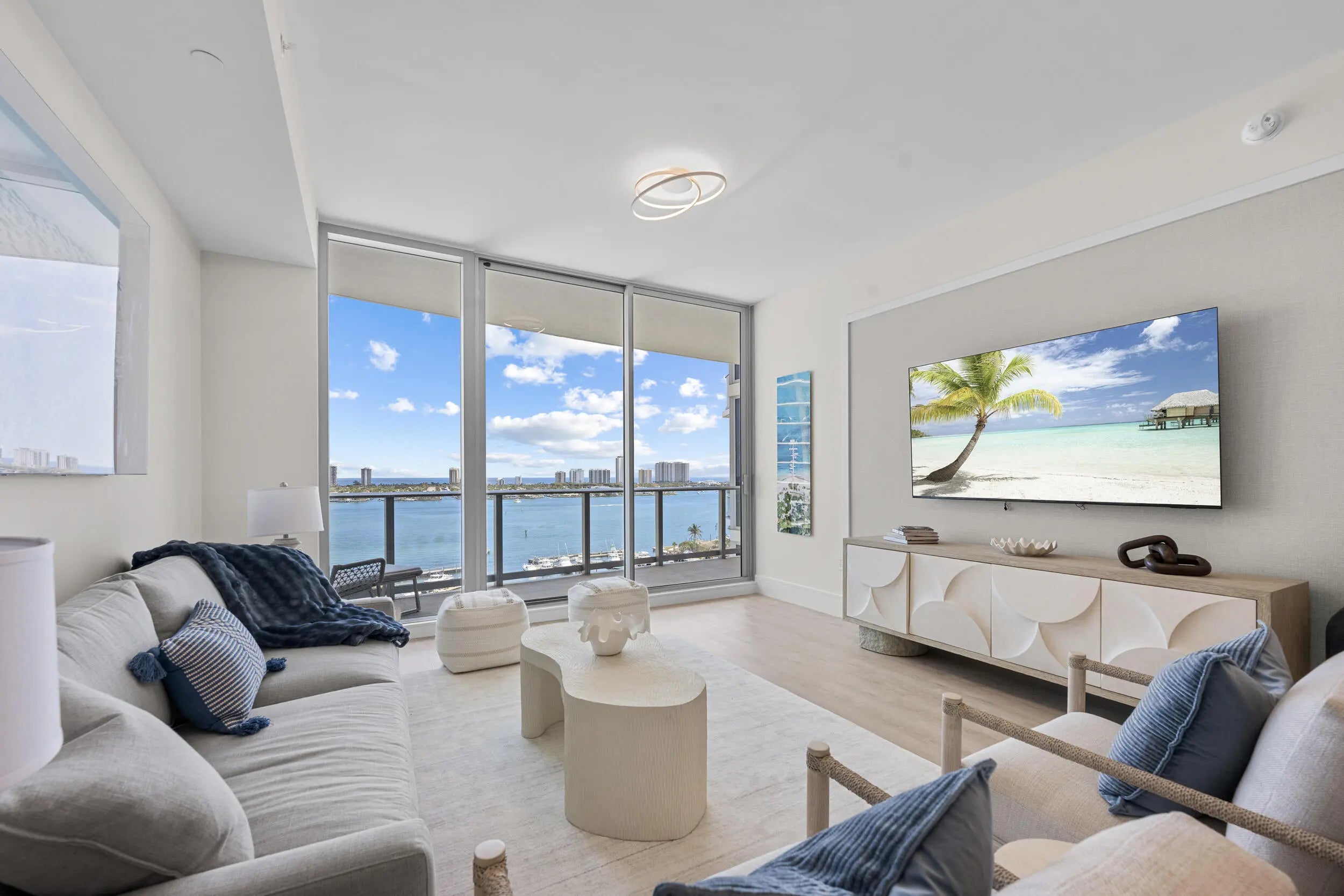If you are looking for a turnkey residence to call home, look no further! This designer furnished condo is now available for an annual lease, and offers resort-style living at its finest in the brand new Nautilus 220! Upon entering this 14th floor residence via private elevator, you are greeted with sweeping views of the intracoastal, marina and Atlantic ocean. Consisting of two bedrooms + a den, and 2.5 bathrooms 1410 offers just under 1,800 int SF in addition to two terraces, and awards both sunrises and sunsets with Eastern and Western exposures. The open concept kitchen features Miele appliances and European cabinetry. The residence also has 2 garage spaces and a storage unit.