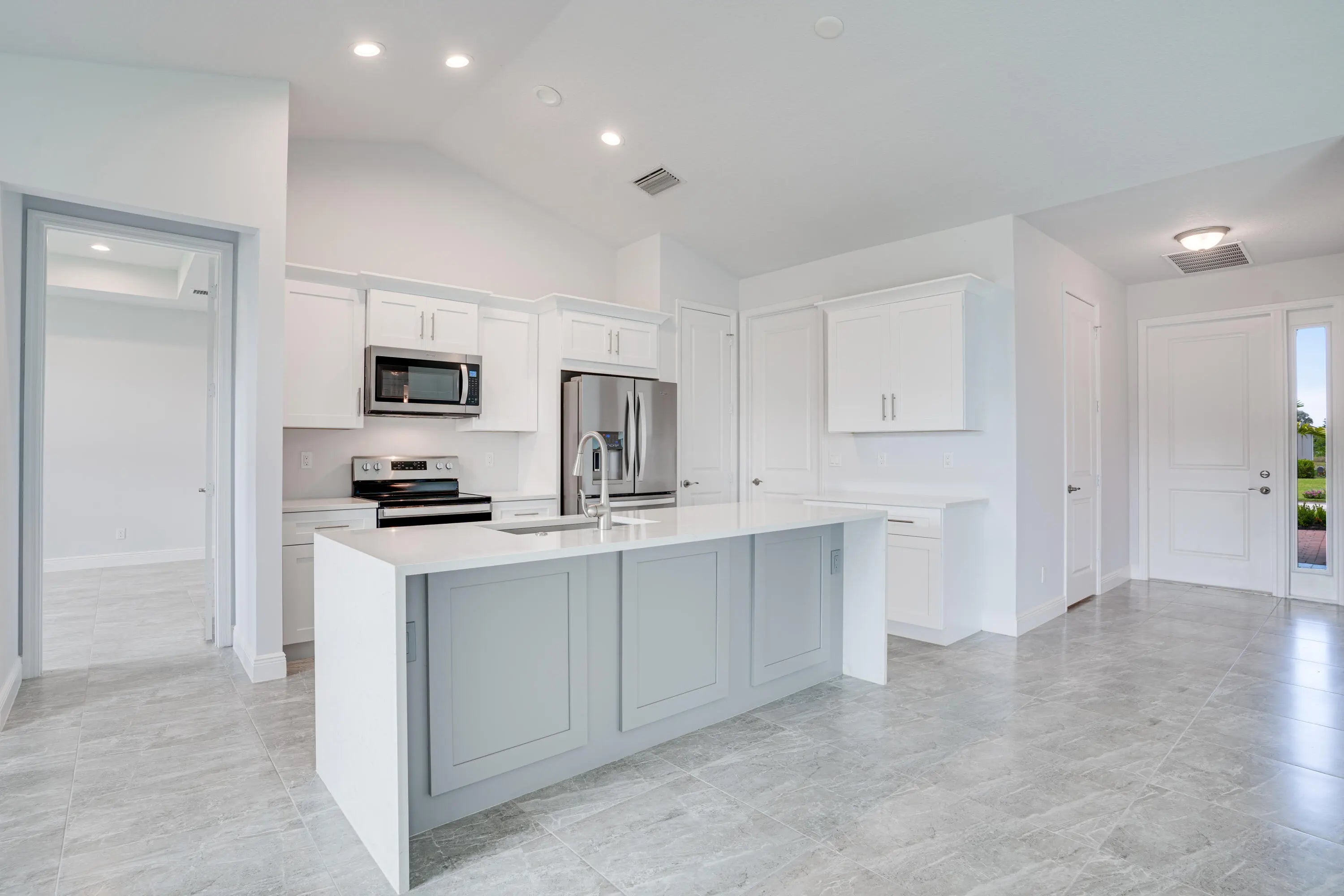 Cathedral Ceiling(s), Kitchen Island, Pantry, Vaulted Ceiling(s), Walk-In Closet(s), Bedroom Layout - Split