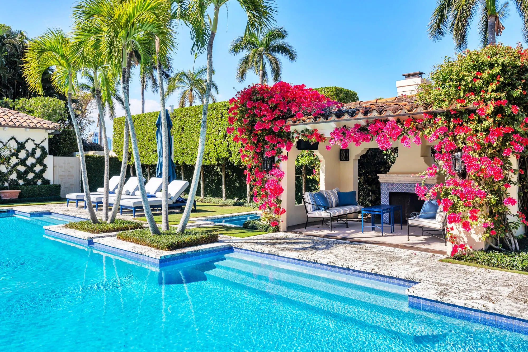 Welcome to Casa del Greco, a timeless architectural treasure designed by renowned Palm Beach architect Marion Sims Wyeth. Positioned on nearly a half-acre in Palm Beach's prestigious Estate Section, this classic masterpiece reflects extraordinary craftsmanship and enduring elegance. The two-story residence offers 4 bedrooms, 5 full bathrooms, and 1 powder room, thoughtfully designed with expansive living spaces that flow seamlessly between indoors and out. Grand entertaining rooms are complemented by refined architectural details, while the formal dining room opens to picturesque gardens and a covered loggia. Outdoors, a private oasis awaits. The resort-style pool is surrounded by lush tropical greenery and a tranquil lounge area, offering complete privacy and a serene escape (more) in the heart of Palm Beach. Casa del Greco is a rare opportunity to own a piece of architectural history, where classic Mediterranean design meets the sophistication of Palm Beach living.