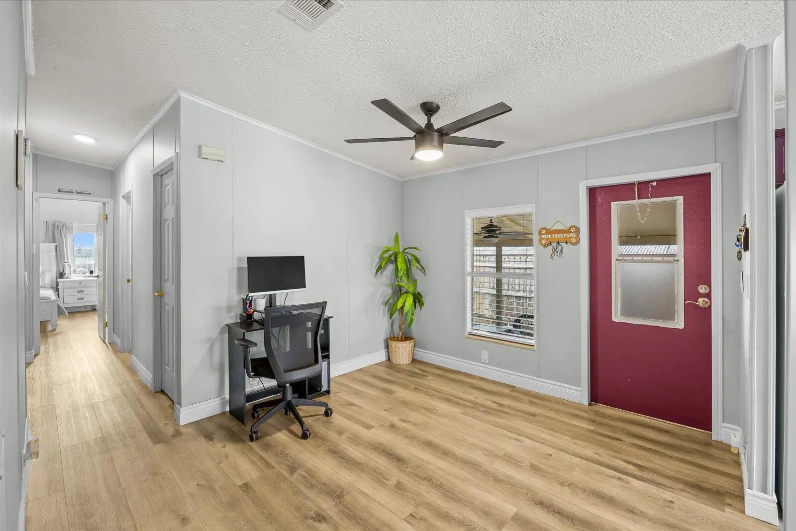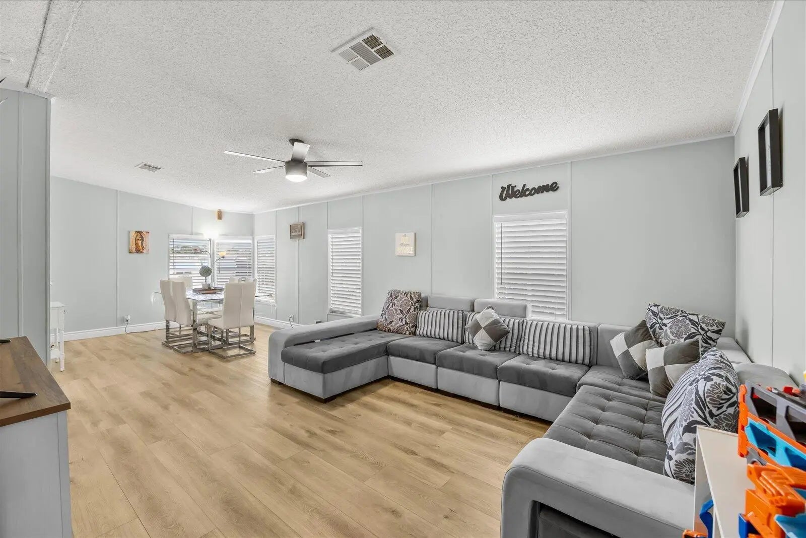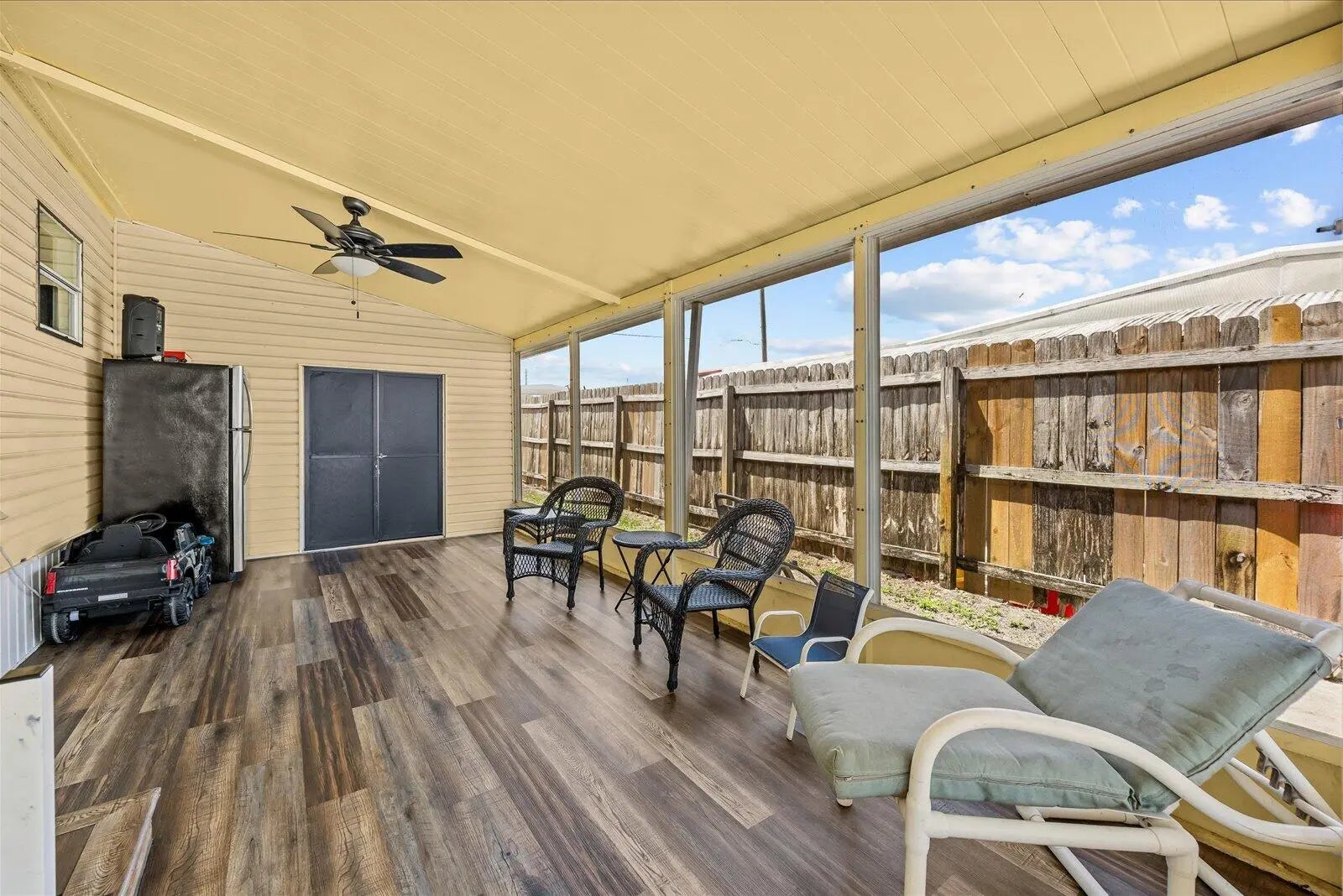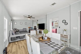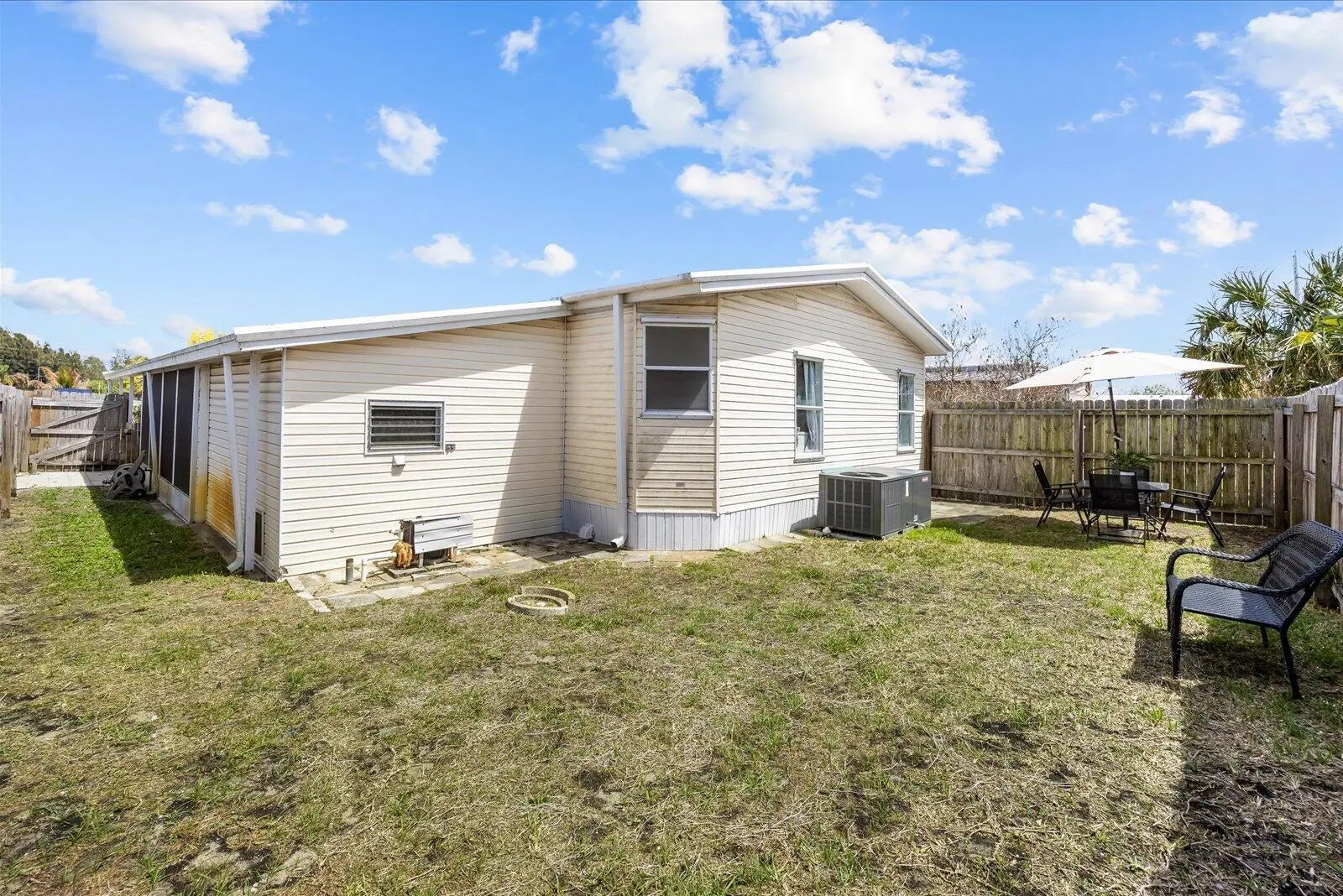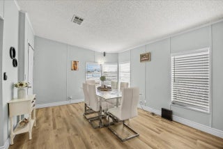 Beautifully maintained manufactured home with 2 spacious bedrooms & 2 updated baths. The Ac unit and plumbing system have been recently replaced. Enjoy your private, ample screened porch, extended driveway and fenced yard. This is a great and convenient location, less than 5 miles from Hobe Sound Beach/Jupiter Island area, US Highway 1 and shopping centers & restaurants. Very affordable Florida living. NO HOA. You own the land! Community pool access available & optional for $350 a year. Room dimensions are approximate.