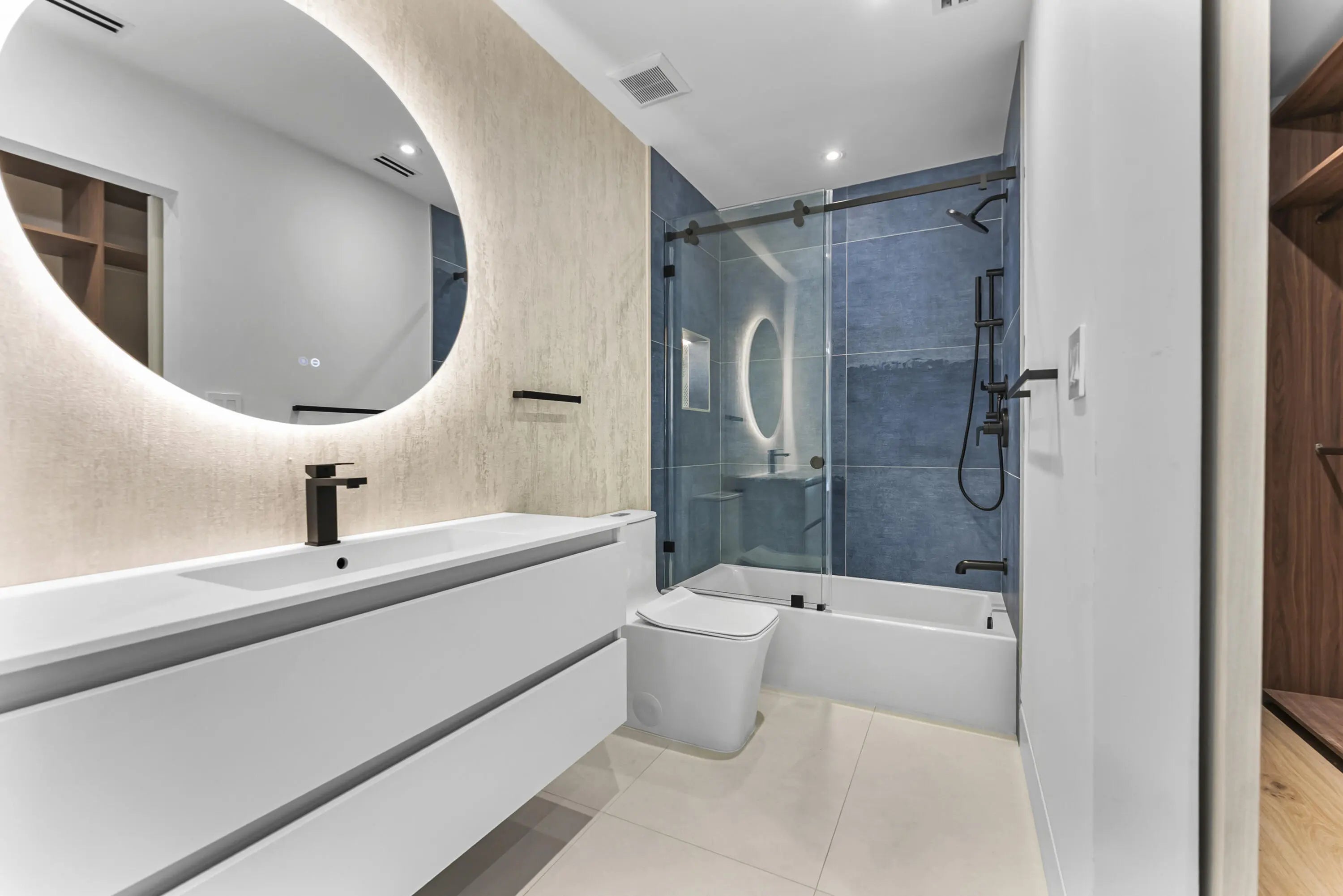 A showstopper from top to bottom! This 5-star renovation is the epitome of modern luxury, featuring exquisite wood floors, sleek custom cabinetry, and solid wood hinge-less doors that make a bold statement. The Thermador appliances and wood-paneled walls bring both sophistication and warmth, while the brand-new AC, custom lighting, and expertly tiled baths showcase impeccable attention to detail. Professionally wallpapered accents add a touch of elegance throughout. With a spacious driveway for 4+ cars and just a short stroll to the beach, this home offers the ultimate in style and convenience. This home is centrally located and just minutes from world renowned Atlantic Ave. nightlife, shopping and restaurants. Don't wait--this gem won't be on the market for long!