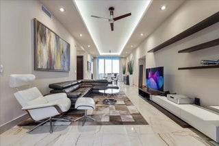 Experience elevated coastal living in this 3 bed / 3.5 bath flow-through residence at Trump Tower II. Private elevator entry opens to a spacious floor plan with sweeping ocean and intracoastal views. Interiors feature marble floors, soaring ceilings, floor-to-ceiling windows, custom Italian doors, designer lighting, and electric blinds. Gourmet kitchen with top appliances and sleek cabinetry. The primary suite includes a spa-inspired bath and custom vanity. Fully furnished by Scan Design, Addison House & Tui Lifestyle. Five-star amenities: two oceanfront pools, jacuzzi, spa, ocean-view fitness center, beachfront restaurant, concierge, and direct beach service.