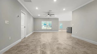 BRAND NEW CBS 2026 ''Madeline'' 3Bedroom 2Bathroom 2Car Garage Home with Rear Porch. Ready for Quick Closing. Spacious Split Floor Plan, All Tile Floors. Kitchen w/White Shaker Cabinets 42''Uppers & Custom Pantry, Soft Close with Crown Molding, Granite Counters with Large Waterfall Breakfast Bar. Samsung Bespoke Stainless Steel Appliances. Full Dining, Huge Living Room, Inside Laundry Room with Cabinets & Utility Sink. Primary Suite features a Spacious Walk In Closet, en suite Bath with Spa-inspired Custom Tile Shower with Rain Head and hand shower head. Guest Bath with Tiled Shower/Tub Combo. Crown Molding, Full Panel Closet Doors, Upgraded Millwork. Tons of lighting, 3 Ceiling Fans, Blinds, Garage Door Opener, Hurricane Shutters & In wall Pest Control. 1,2,10 Maverick Builder Warranty.