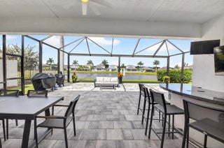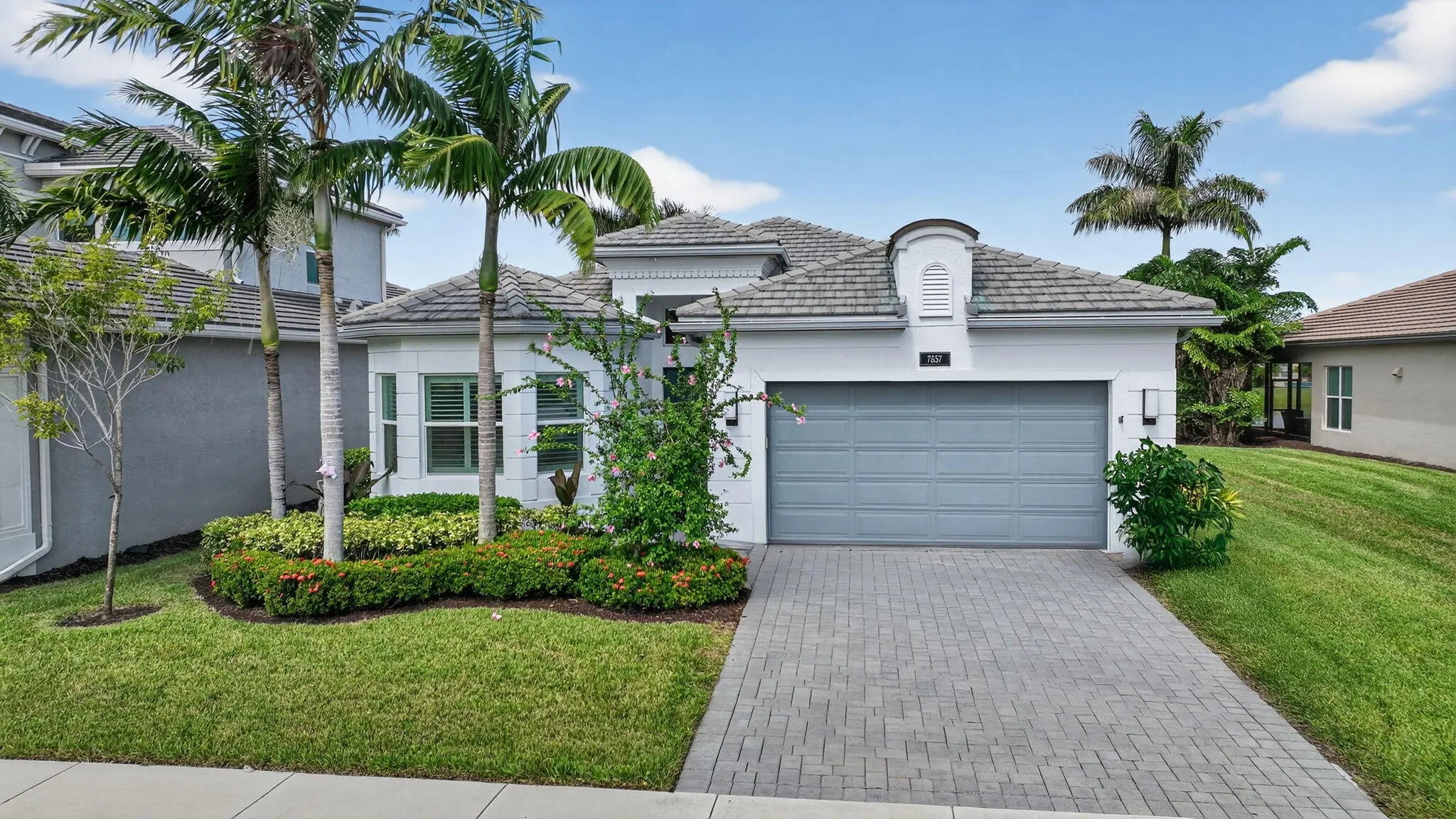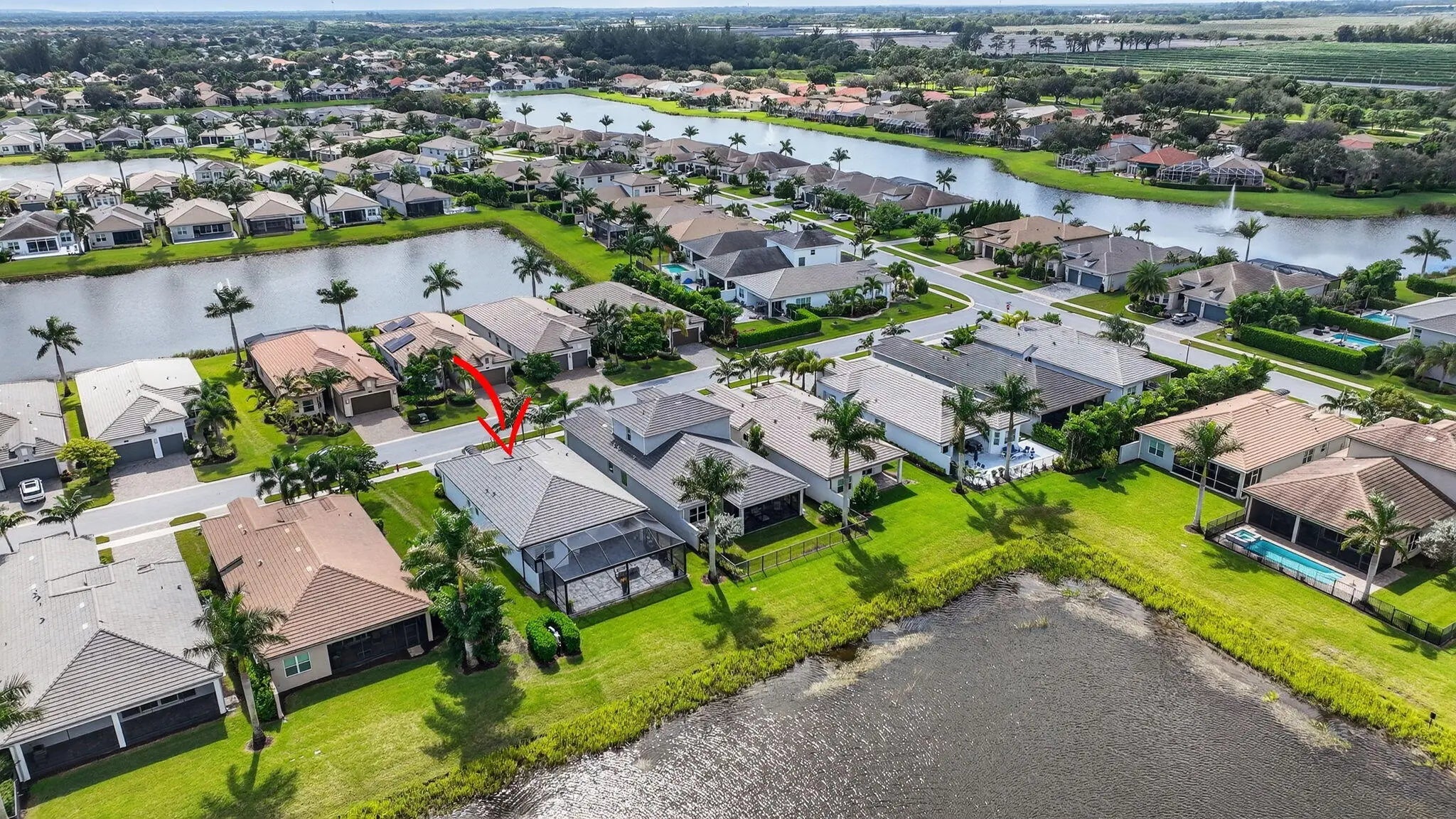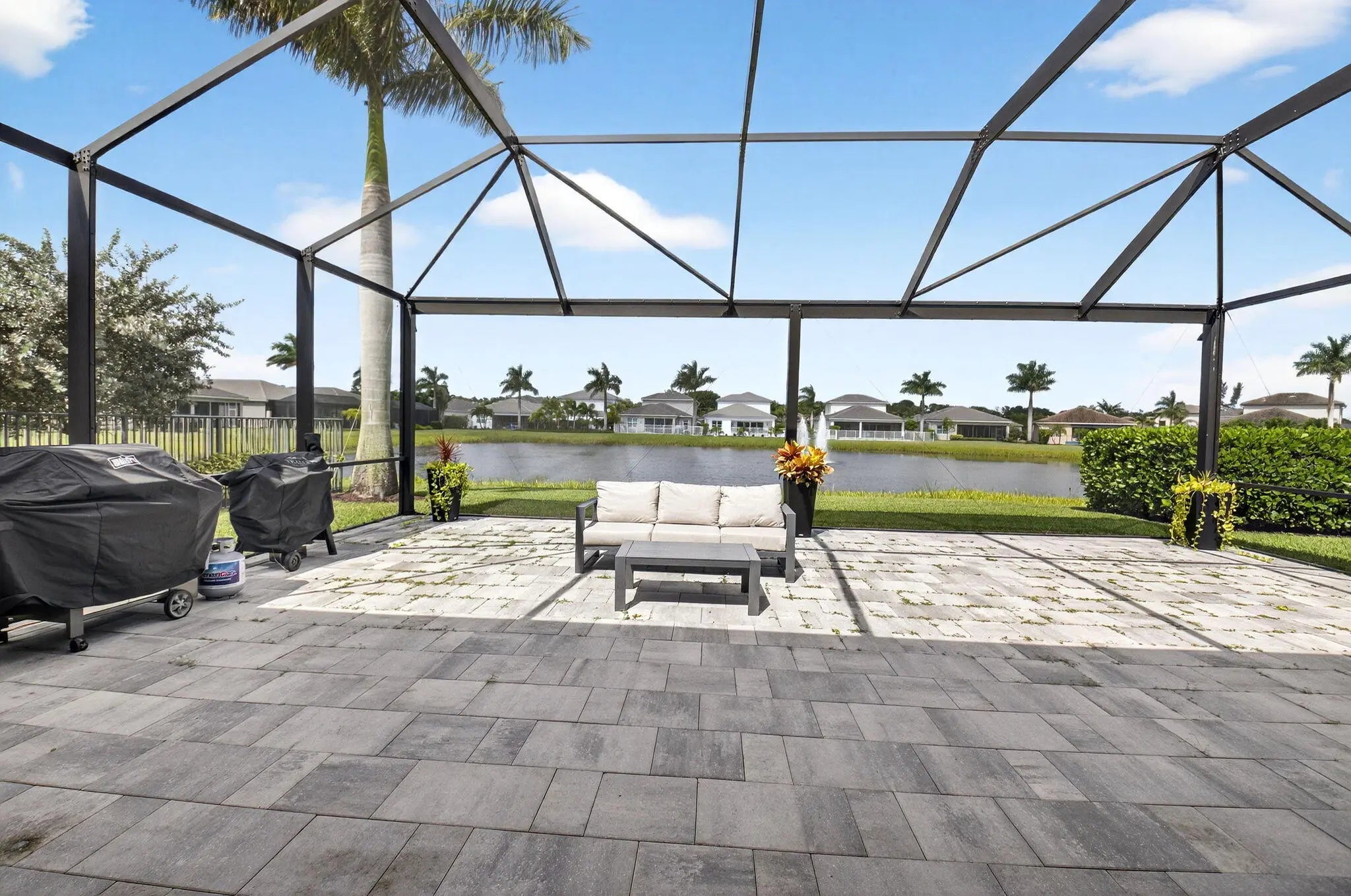 Discover the pinnacle of South Florida luxury living in this impeccable, move-in ready 3-bedroom, 2.5-bathroom, 2 car garage single-family home, offering desirable 1 level living perfectly situated on a PRIME LAKEFRONT LOT. The expansive open floor plan boasts soaring high ceilings and consistent, contemporary porcelain tile flooring throughout the main areas, maximizing the flow of natural light. This is an ALL AGE, GATED community built by GL Homes. 4 more pickleball courts are being added. A total of 8 will be available. The gourmet chef's kitchen is the heart of the home, featuring extensive grey shaker-style cabinetry, dark speckled granite countertops, a sleek subway tile backsplash, and a full suite of GE stainless-steel appliances, including a double oven/range. The large center island provides a granite countertop, an undermount sink, and stylish pendant lighting, ideal for casual dining and effortless entertaining. The separate interior laundry room is equipped with a full-sized washer and dryer, a convenient slop sink, extensive white upper and lower storage cabinets, and a generous counter space for folding. The master bedroom is a tranquil sanctuary, showcasing a neutral color palette and a contemporary tray ceiling with a stylish, modern light fixture. This spacious room is finished with light-colored tile flooring and includes a doorway leading into a generously sized walk-in closet and the luxurious en-suite bathroom. The spa like master bath features extensive marble look countertops with dual vanities, light-toned cabinetry, and a dedicated vanity area. The walk-in shower is glass-enclosed and surrounded by large-format tile with decorative accent tiling. The 2nd guest bedroom is currently utilized as a bright, versatile room, functioning as both a comfortable den with a large sectional sofa and an organized home office with a built-in desk and shelving. This room features tile flooring and is brightened by a window and recessed lighting. The 3rd guest bedroom offers a classic, cozy atmosphere, featuring plush carpeted flooring and a charming corner of windows with plantation-style blinds for excellent light and privacy. It is furnished with a traditional metal-frame bed and rich, dark wood furniture. This bedroom is served by the separate full bathroom, which features a granite-look countertop vanity and a combination shower/tub area. A stylish half bath (powder room) is also available, notable for its striking dark grey walls, modern, textured white wallpaper design, and a white marble countertop vanity. The home's true highlight is the expansive screened-in patio, which features a custom outdoor bar with mounted TVs overlooking breathtaking water views, creating a private oasis perfect for year-round enjoyment. For unparalleled peace of mind and protection, this property is equipped with hurricane impact windows and doors. Located within the prestigious, 24-hour guard-gated community of Polo Trace in Delray Beach, residents enjoy a premium, resort-style lifestyle. The community's amenities are centered around a magnificent 26,000 sq ft Clubhouse offering a full-service on-site restaurant, a resort-style pool with a separate lap pool, a state-of-the-art fitness center, and courts for tennis, pickleball, and bocce. This prime Delray Beach location provides easy access to top-rated schools, major commuting routes (I-95 and Florida's Turnpike), and the famous dining, nightlife, and beaches of Downtown Delray Beach's Atlantic Avenue.