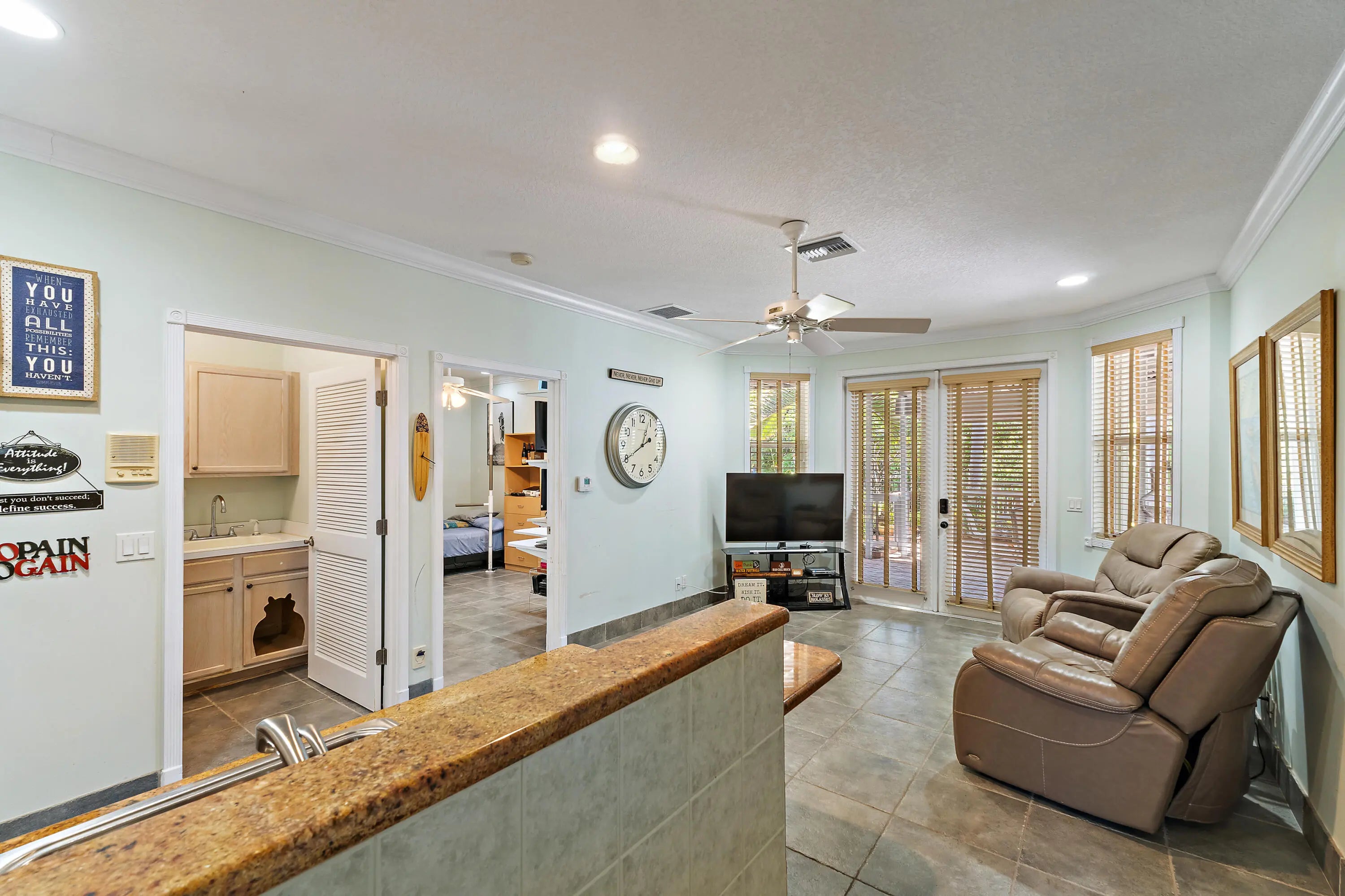 The ONLY floor plan of its kind in the community—truly one-of-one. Homeowners—are you looking for a property that can supplement your income, accommodate aging parents or college-age children, or provide a private home office with its own entrance? A rare opportunity for investors or homeowners seeking income-producing potential or flexible multigenerational living, this exceptional property offers unmatched versatility and value. Featuring a 3-bedroom, 2-bath single-family residence plus a private 2-bedroom, 2-bath In-Law/Guest apartment with its own entrance, this home is designed to adapt to today's evolving lifestyle needs. Located in the gated community of Hidden Hollow w/ low HOA fees, this meticulously maintained, single-owner residence offers both privacy and functionality. More.. The second level serves as the main living space and lives like a spacious single-family home, showcasing a 3-bedroom, 2-bath split floor plan with an open-concept layout ideal for everyday living and entertaining. The kitchen flows seamlessly into the dining and living areas, while double French doors open to a full-width deck—perfect for morning coffee or evening relaxation overlooking peaceful water views. The main level features a fully ADA-accessible private apartment complete with 2 bedrooms, 2 full baths, its own kitchen, living area, and private entrance. French doors lead to the lanai for seamless indoor-outdoor living. The second bedroom offers exceptional flexibility and can easily function as a private office with its own exterior entrance—ideal for remote work, guests, or additional privacy. Set on an oversized lot with tranquil water views, the property offers exceptional privacy and endless potential—plenty of room to design your dream backyard with a pool, outdoor kitchen, or custom oasis. Multiple outdoor living spaces, including a covered patio and expansive upper deck, allow you to fully embrace the Florida lifestyle year-round. Additional highlights include an oversized two-car garage with an 8-foot door, extended driveway, central vacuum, surround sound wiring, laundry chute, crown molding, plantation shutters, custom blinds, floating wood staircase, and tray ceilings. The home is pre-wired for an elevator and equipped with accordion hurricane shutters for added peace of mind. Hidden Hollow offers a private, well-maintained setting with gated entry and beautifully landscaped surroundings, all conveniently located near shopping, dining, and everyday amenities. A truly unique property that must be experienced in person to fully appreciate its flexibility, privacy, and income potential.