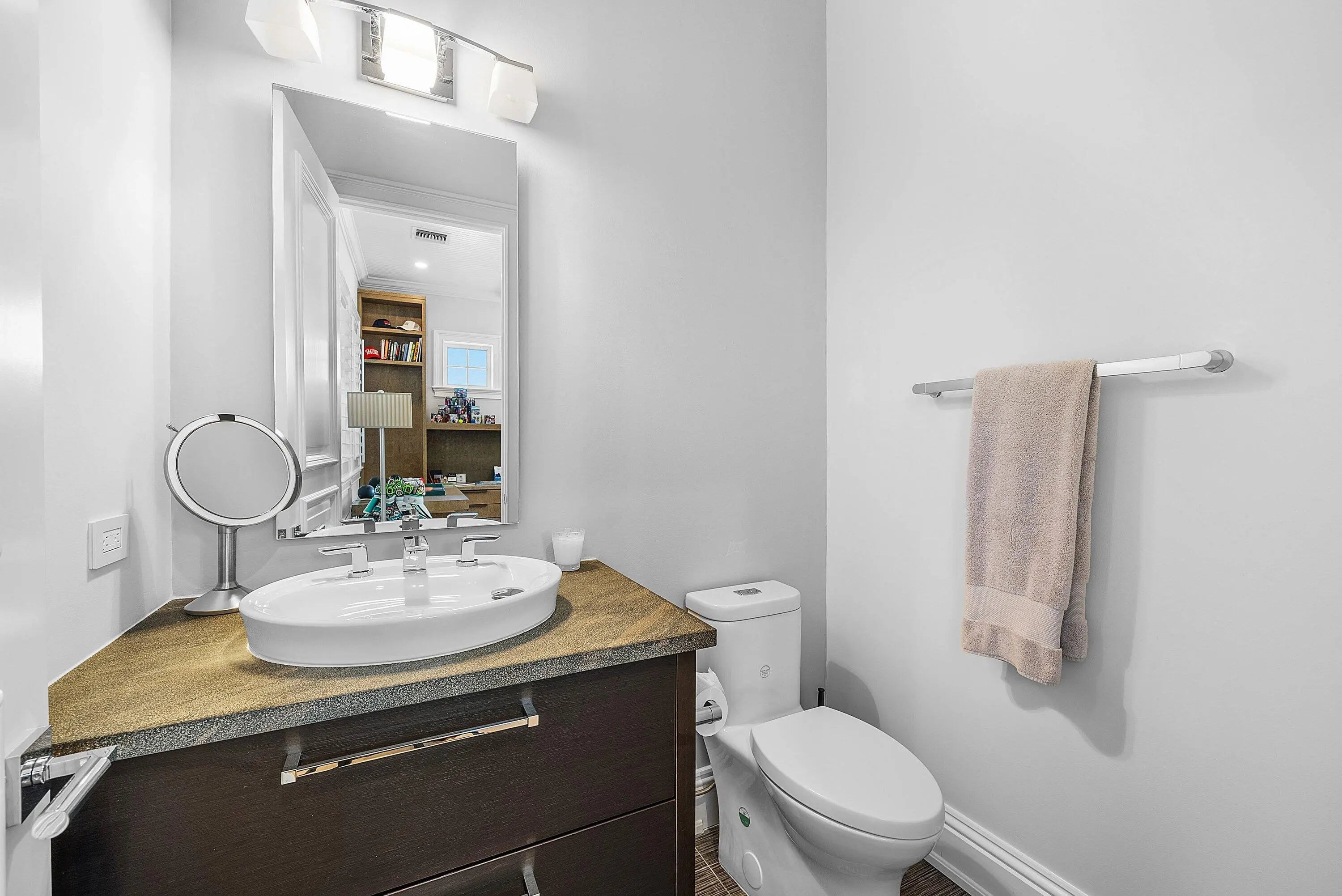 Just one block from the Atlantic Ocean and a few blocks from Atlantic Avenue, this gated Bermuda Estate is set within one of Delray Beach's most coveted beachside enclaves. Privately positioned at the end of two quiet cul-de-sacs, the property offers rare dual street frontage with private ingress and egress, a gracious courtyard entry, and a separate rear motor court with a three-car garage. Designed by renowned Affinity Architects, the residence spans 7,716 total square feet and offers five bedrooms, a beautifully designed office featuring a custom built-in motorized desks and French doors that open to the veranda overlooking the resort-style pool. A private elevator provides convenient access to the upper level. Expansive covered loggias and a wraparound veranda create seamless indoor-outdoor living, complemented by soaring beamed ceilings and walls of floor-to-ceiling pocketing glass. The resort-style grounds feature a newly completed pool and spa with a professional stationary swim system, fire feature, putting green, and generous outdoor entertaining areas. The redesigned chef's kitchen showcases Neolith Estatuario surfaces, professional-grade appliances, and two fully equipped butler's kitchens with newly renovated bar and wine storage for effortless hosting. Additional highlights include a dedicated screening room with 7.1 surround sound, a fully independent guest suite with private entrance and security system, custom architectural loggia detailing, and meticulously landscaped grounds with mature trees and premium performance turf. The overall level of exceptional architectural details make this a rare opportunity for refined, walkable beachside living in the heart of Delray Beach.