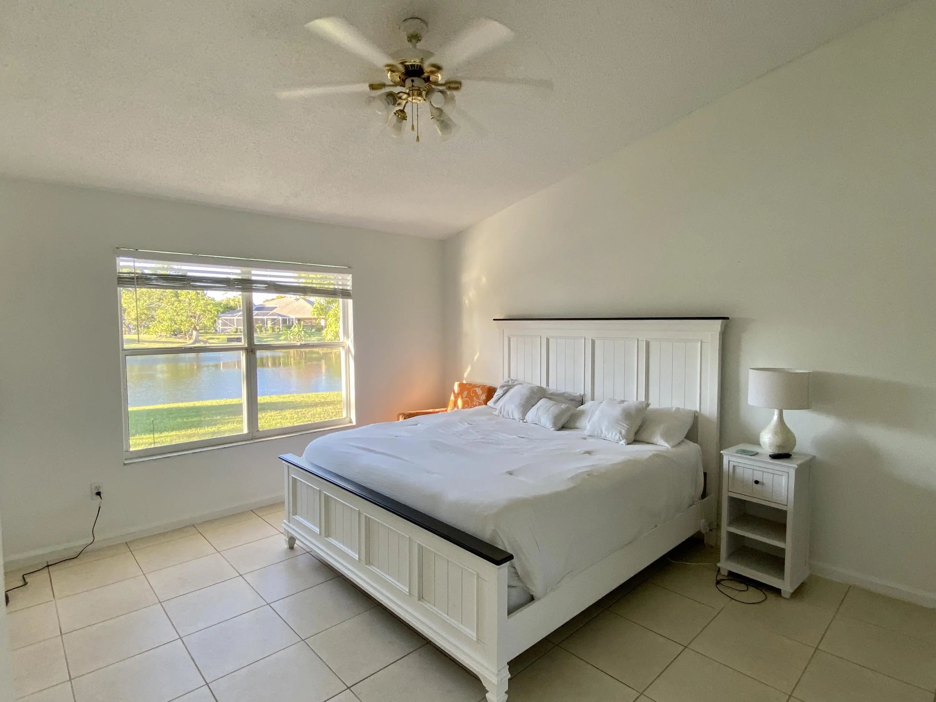 Call your home this very well maintained Bright and Light 1-story 3 bedrooms, 2 full baths, 2 car garage home with private patio overlooking the lake. You will love the Vaulted Ceilings, open floor plan, large rooms size, Open Kitchen with updated appliances, and full size washer and drier in the inside laundry room, and full hurricane protection with easy to close accordion shutters. Main Room has the great lake view, walk-in closet, modern large shower and separate bathtub, and double-sink vanity. Enjoy multiple fruit trees in your large backyard. Pets are considered on the case-by-case basis.