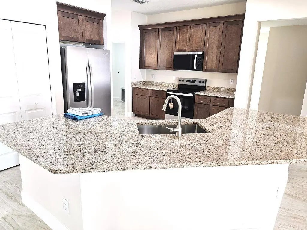 Beautiful brand new house, just finished. four bedrooms, three baths. All building warranties. impact windows and doors. Tile all thru out the house including bedrooms. the kitchen is very well appointed with 42'' upper upgraded cabinets, granite tops. The master suite includes two walking closets, two vanities and a jacuzzi tub. A large covered patio is off the family room.