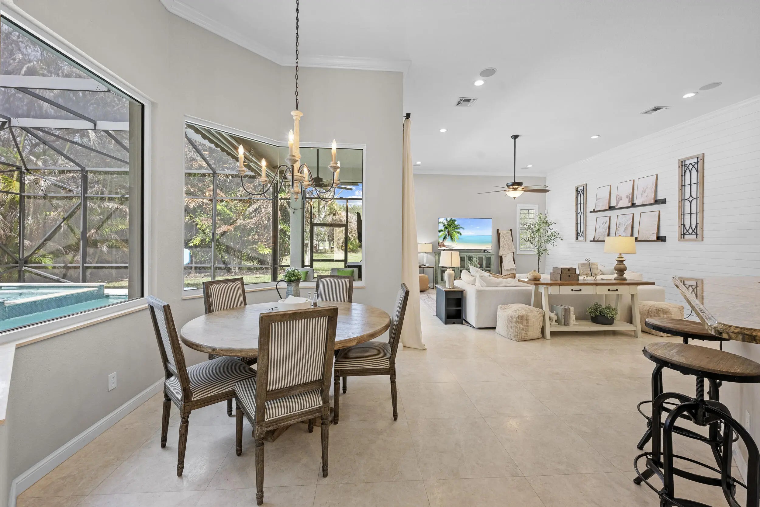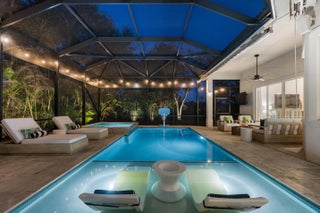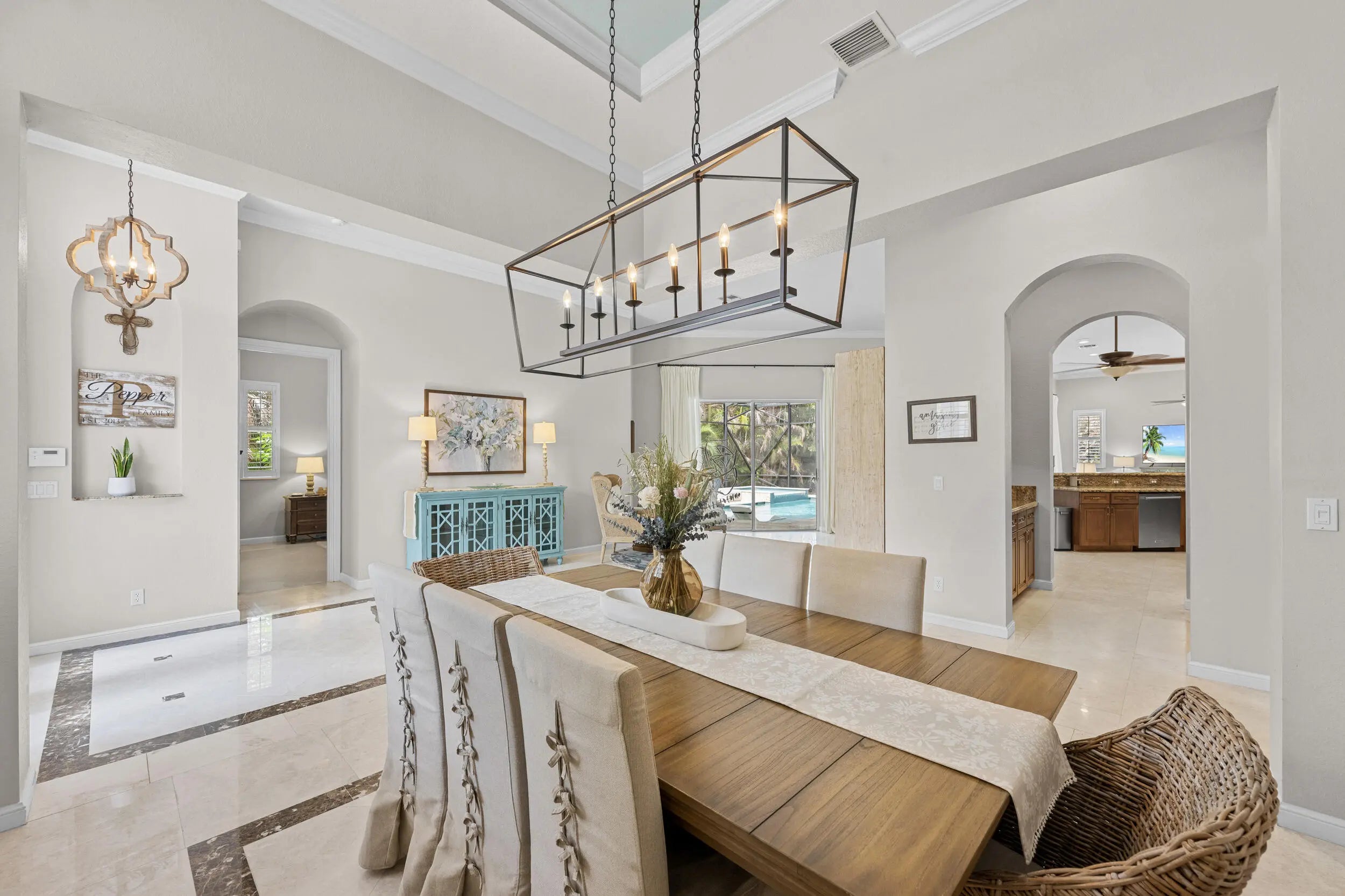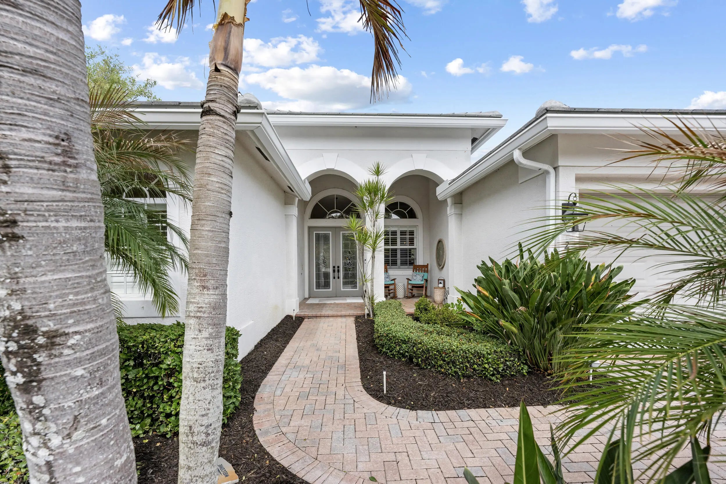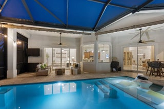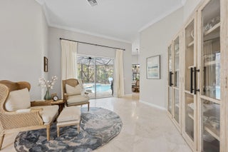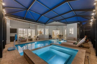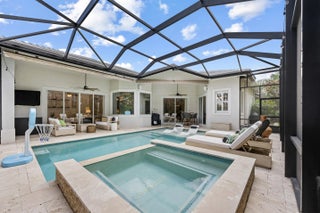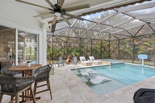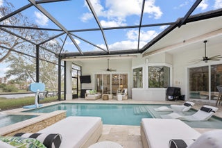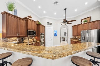 Exquisite Arthur Rutenberg CBS Home nestled at the end of a private cul-de-sac, 4 bedrooms + den, 3 baths & a 3-car garage. 2025 roof & two AC units installed 2021. Soaring 12' ceilings, rounded archways, rich crown molding, plantation shutters & marble floors create timeless elegance. Solid 8' wood doors with sleek black hardware add a modern touch. The chef's kitchen shines with granite, 48'' cabinetry, pullout drawers, glass stovetop, double ovens, walk in pantry, butler's pantry--perfect for entertaining. Enjoy a heated/chilled saltwater pool with hot tub, retractable awnings for shade. No need to worry about storms with storm protection and impact glass front door. Clubhouse with pool, fitness center, pickleball & tennis. Optional golf membership available at Hammock Creek Golf Club