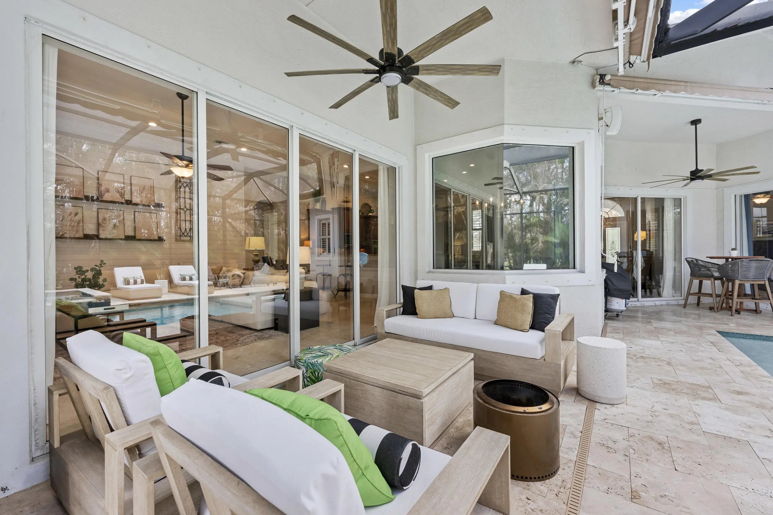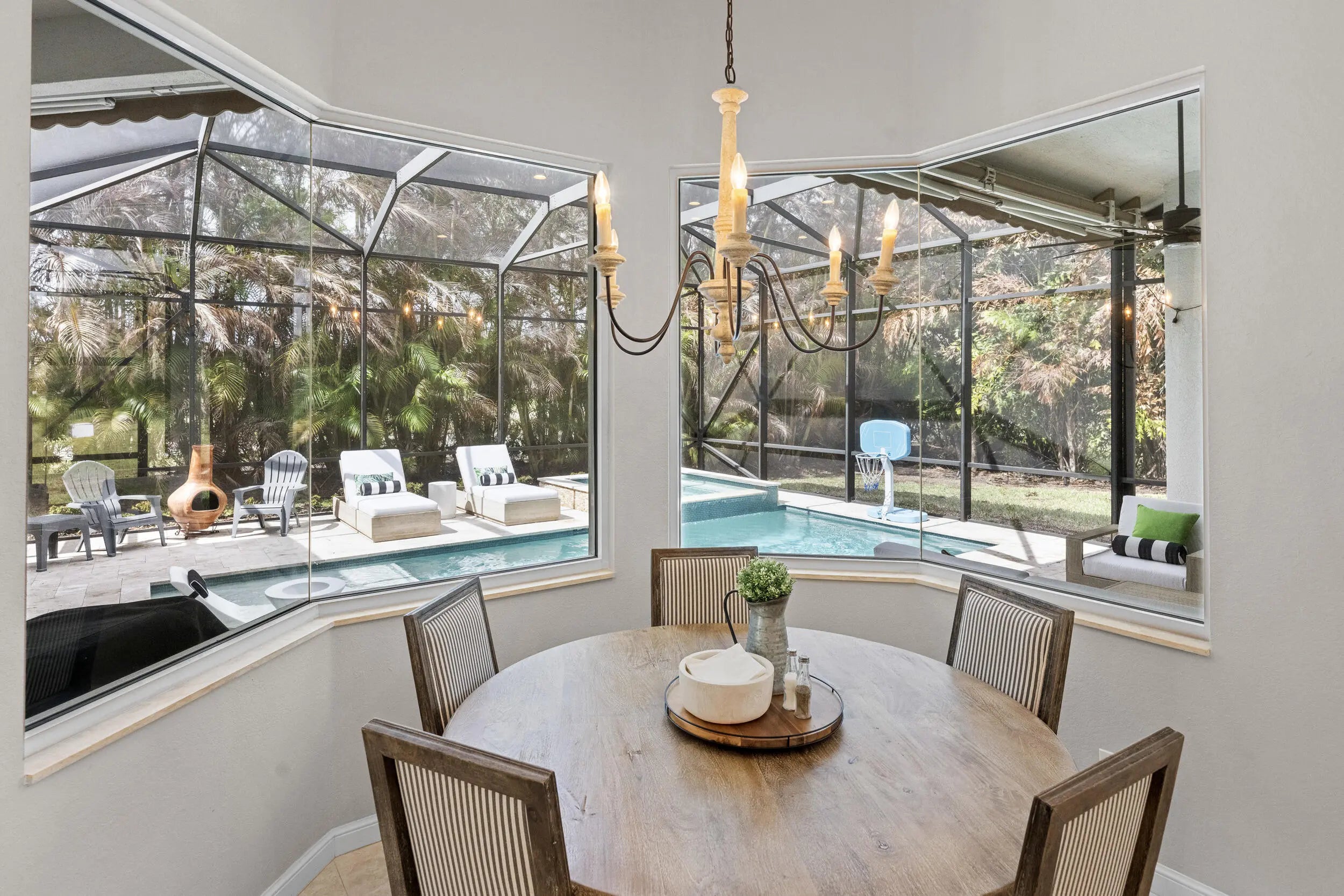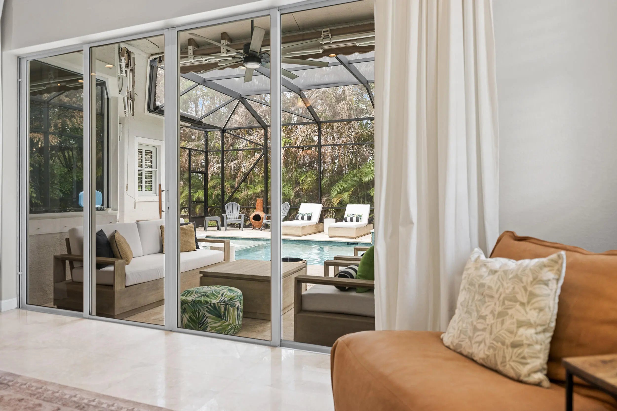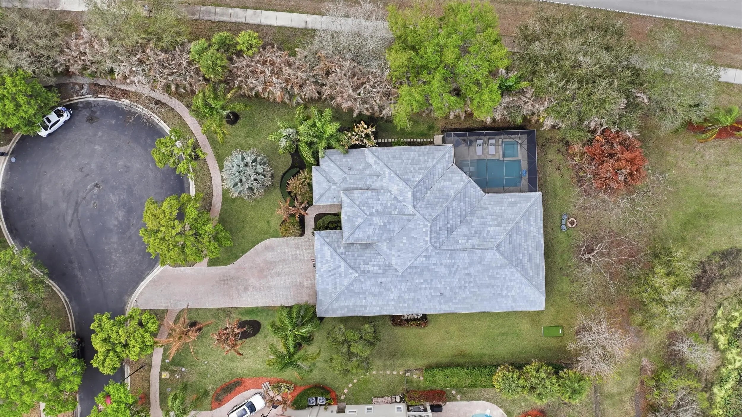 Exquisite Arthur Rutenberg CBS Home nestled at the end of a private cul-de-sac, 4 bedrooms + den, 3 baths & a 3-car garage. 2025 roof & two AC units installed 2021. Soaring 12' ceilings, rounded archways, rich crown molding, plantation shutters & marble floors create timeless elegance. Solid 8' wood doors with sleek black hardware add a modern touch. The chef's kitchen shines with granite, 48'' cabinetry, pullout drawers, glass stovetop, double ovens, walk in pantry, butler's pantry--perfect for entertaining. Enjoy a heated/chilled saltwater pool with hot tub, retractable awnings for shade. No need to worry about storms with storm protection and impact glass front door. Clubhouse with pool, fitness center, pickleball & tennis. Optional golf membership available at Hammock Creek Golf Club
