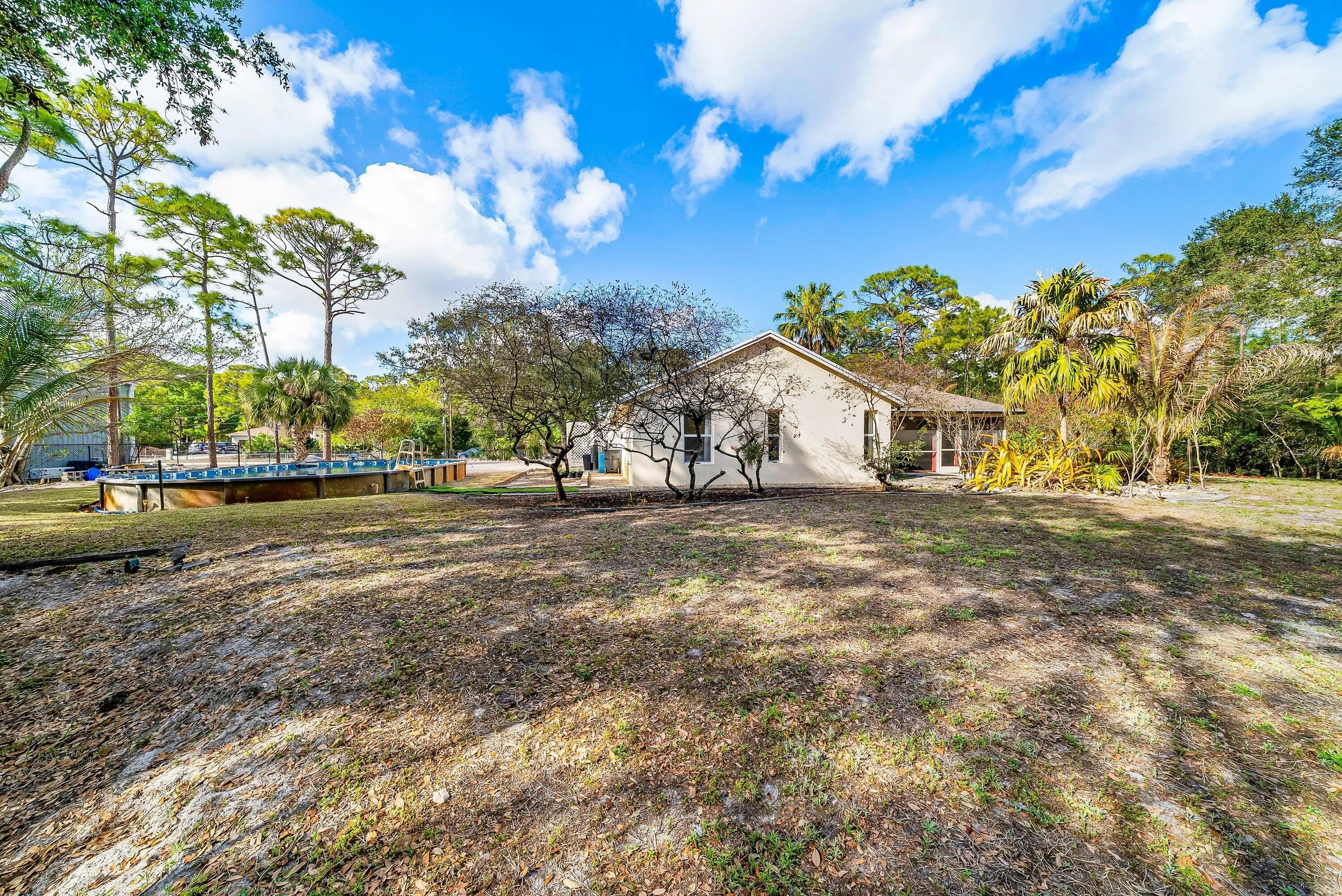 Discover your own private retreat with this beautiful and spacious 3-bedroom, 2-bath home featuring a 2-car garage and desirable split floorplan for added privacy. From the inviting double-door entrance to the open and airy living spaces, this home offers comfort and functionality throughout. The kitchen has stainless steel appliances, granite countertops, and ample cabinetry--perfect for everyday living and entertaining, tiled flooring flows throughout the living areas. Step outside to enjoy Florida living at its finest. A screened-in patio overlooks the expansive backyard, complete with a fully equipped 33x18 above-ground pool--ideal for relaxing or hosting gatherings. Situated on over an acre of fully fenced land, the property has been enhanced with additional infill so the home .... home sits high and dry. There's plenty of room to park your RVs, boats, trucks, and more--no HOA restrictions to limit your lifestyle. Meandering nature trails wind through the property, surrounded by an impressive variety of fruit trees including coconut, banana, multiple mango varieties, avocado, lychee, papaya, pineapple, and more. Enjoy the tranquility style living while being just minutes from Westlake, where you'll find convenient shopping, dining, services, and entertainment. Make this unique property your personal retreat today!