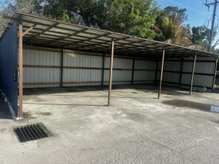 Great space for small shop. 100 feet long x 22 feet wide. Cover area plus outdoor area. .Doble fence secured. Bathroom. All electric power 220v and 120v. Security lights . double fence secured. Bathroom. no security deposit. First and last month. Great for work shop