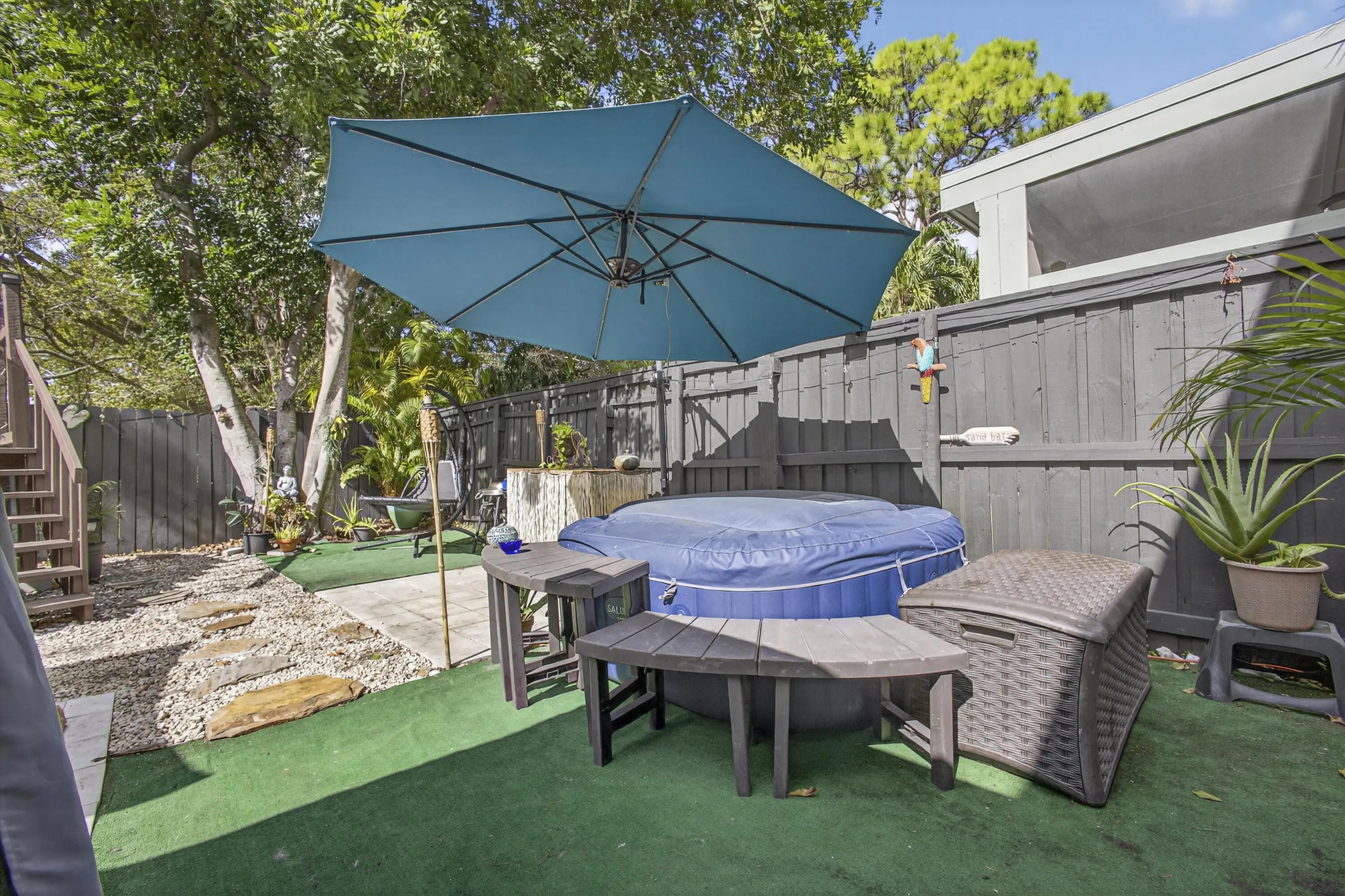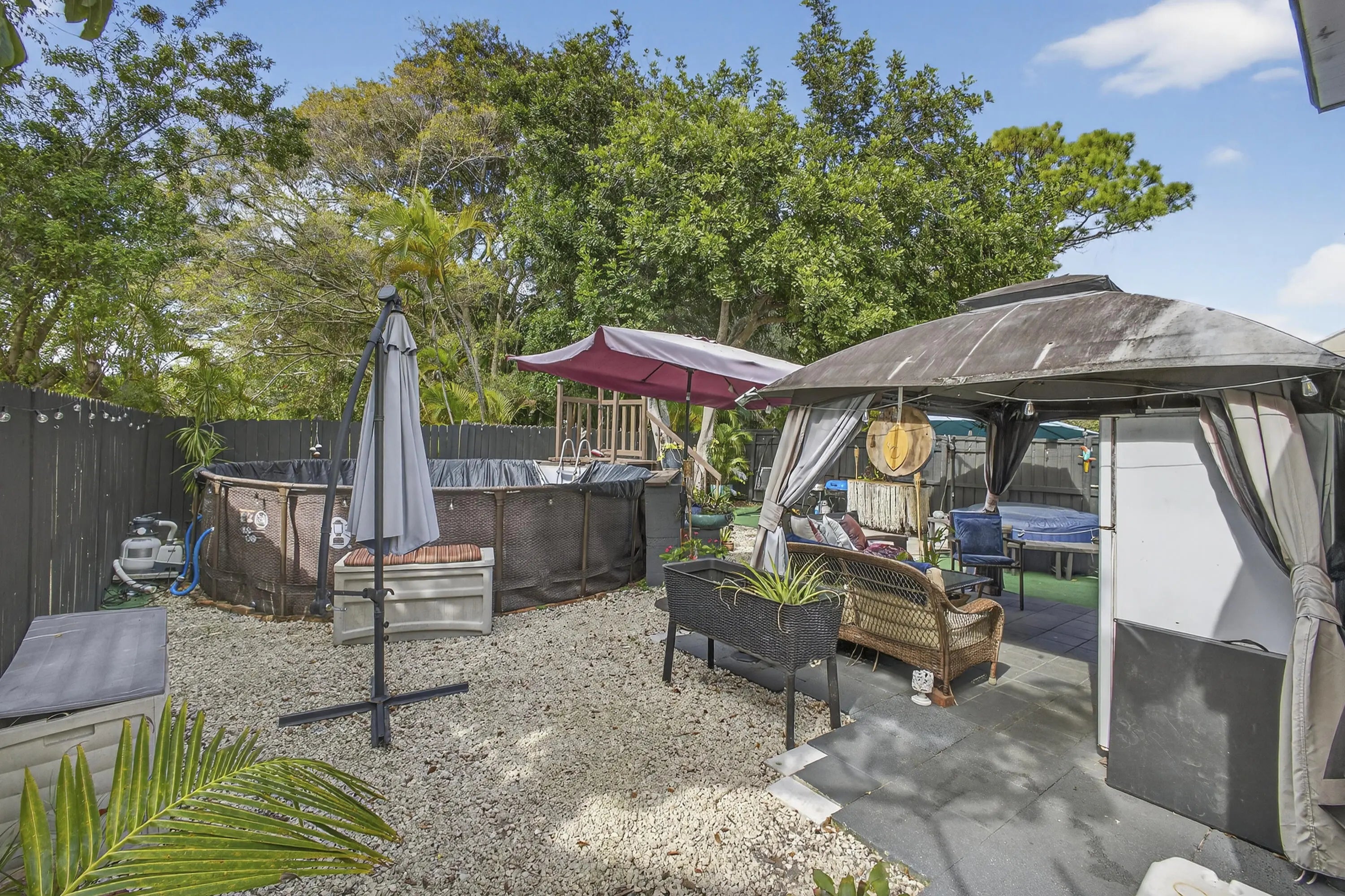 Amazing opportunity!! a 3-bedroom, 2-bath townhome located on a peaceful dead-end street with no restrictions. It welcomes all dog breeds. No HOA. This home features high ceilings in the family room. It has been well-maintained with several recent upgrades, including bathrooms, kitchen, new appliances, a newer water heater and duct work, and a new air handler. Swimming pool. It's features a fully fenced private backyard. A new LED lighting in the front yard. Situated in a great neighborhood with long-time residents. This location is highly convenient, offering easy access to all major highways, I95 and the turnpike. It is less than 12 miles from the West Palm Beach Airport and just a few miles from the Gardens shopping mall and some of the best restaurants in Palm Beach.