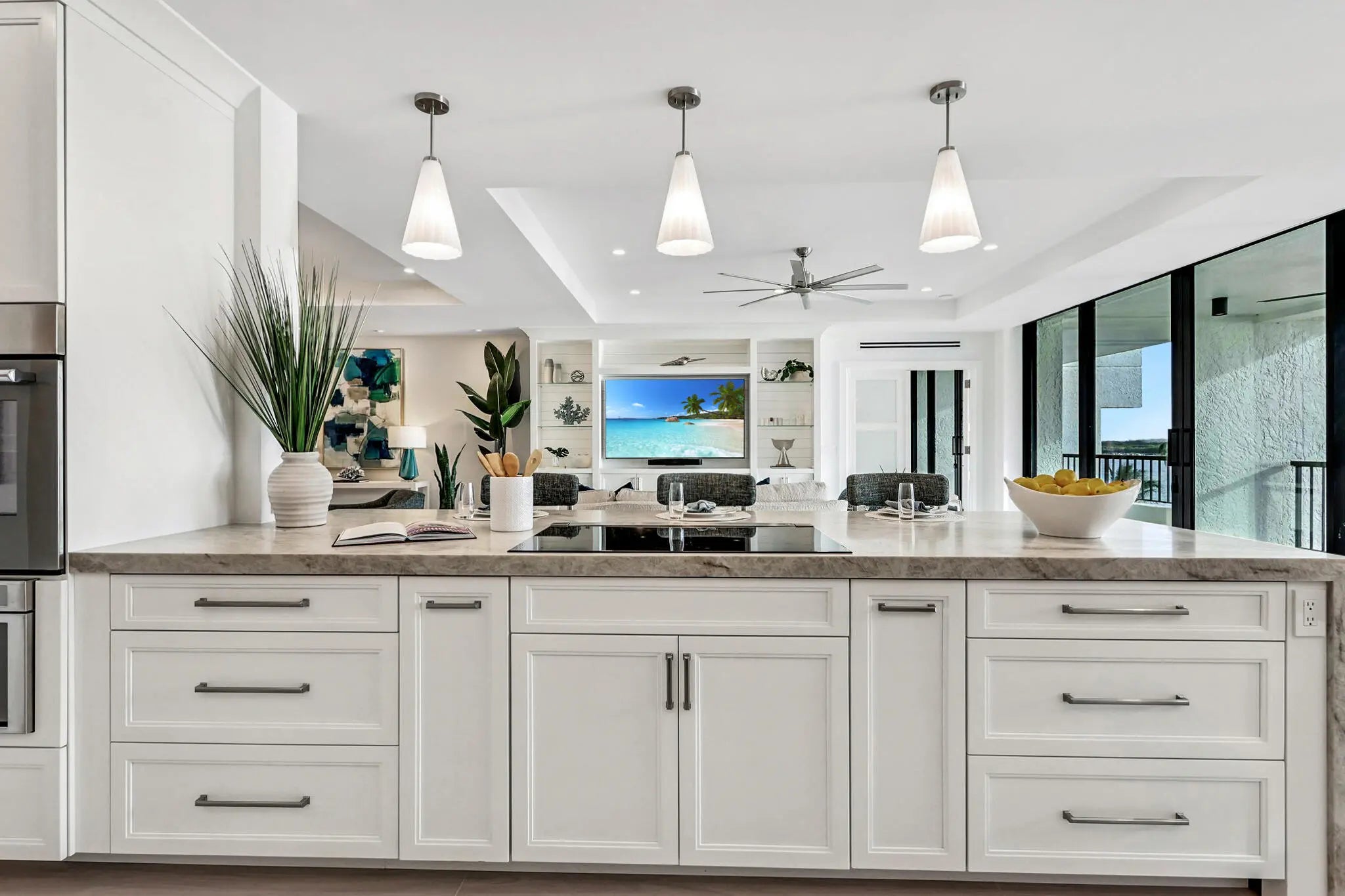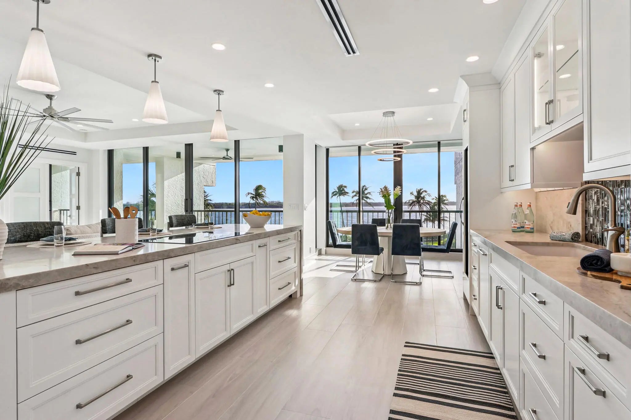 Located in the exclusive enclave of Sailfish Point, this two bedroom plus den, two and a half bath residence offers panoramic views of the St. Lucie Inlet to the Atlantic Ocean. The light-filled dining area and spacious living room capture stunning water vistas, creating an ideal setting for everyday living and entertaining. Expansive impact glass sliding doors open to the full-length balcony. A dedicated bar area enhances hosting, while the crisp white kitchen features abundant cabinetry, generous Taj Mahal quartzite counters, Thermador appliances including wine storage, and a large pantry. The owner's suite serves as a private retreat with sweeping water views. A versatile den with attached half bath offers flexible use as a home office or guest room. Sailfish Point residents enjoy an... Sailfish Point residents enjoy an oceanfront club, pristine beach access, a helipad, five dining venues, spa, fitness center, tennis, pickleball, marina, private security and optional golf on the Jack Nicklaus 'Signature' course.