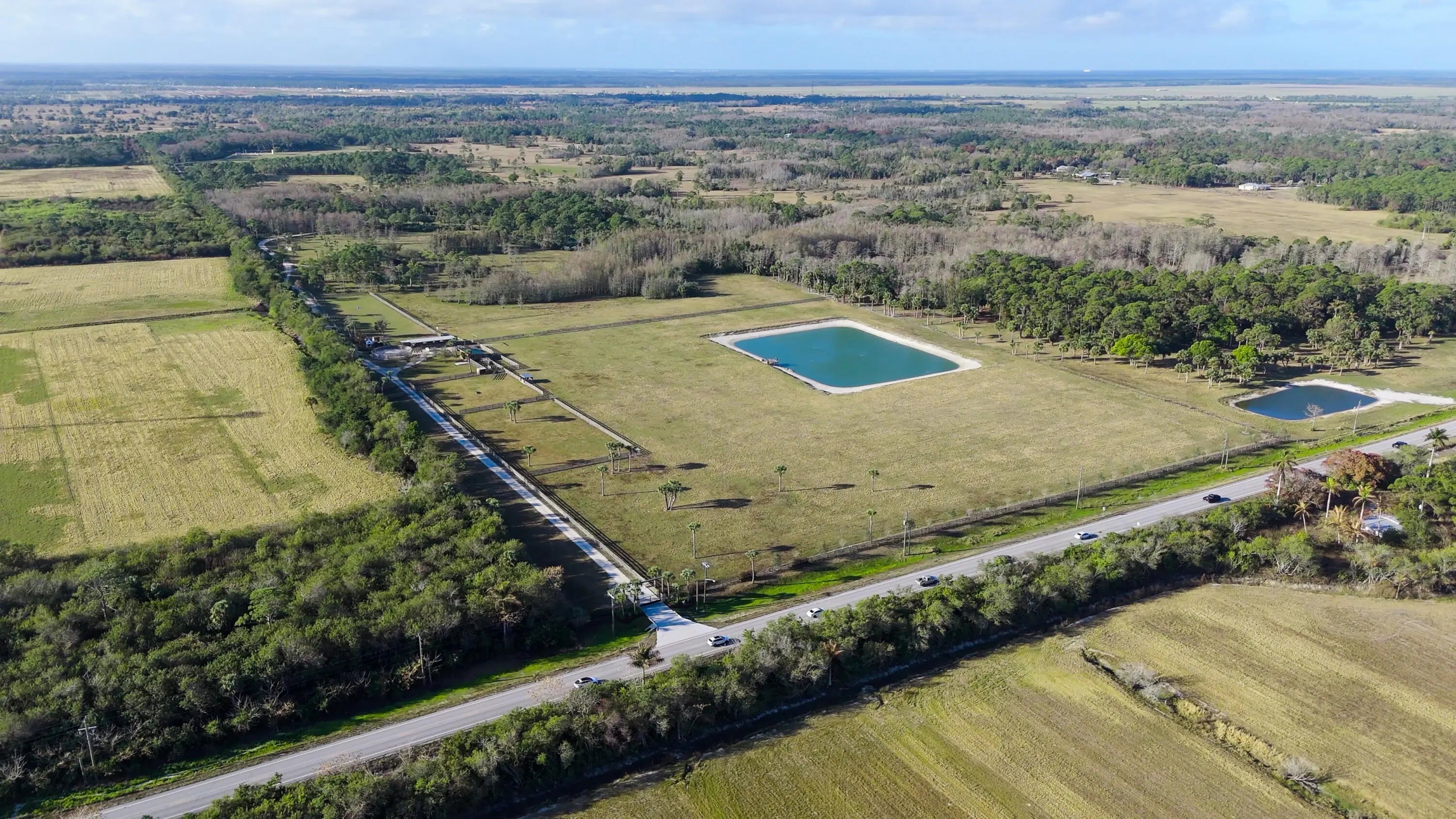 A rare 100-acre private sporting and equestrian estate located along SE Bridge Road in Hobe Sound, just minutes from Jupiter Island and the Atlantic. The property features a 1.25-mile private driveway, two stocked ponds, expansive open acreage, and extensive internal shell rock roads sourced directly from the land. Recreational infrastructure includes a 400-yard long-range shooting facility, separate short-range range, sporting clays course, Olympic-grade trap field, and on-site fitness facility. The front portion of the property includes six fenced paddocks and equestrian infrastructure. Backing to approximately 3,600 acres of privately owned land, the ranch offers exceptional privacy and scale in one of South Florida's emerging luxury rural corridors. More details available upon request. A rare 100-acre legacy estate in Hobe Sound, offering exceptional scale, privacy, and versatility just minutes from Jupiter Island and the Atlantic Ocean. Positioned along SE Bridge Road, the property features a long rectangular configuration with significant depth from the roadway, creating natural separation between activity areas and an impressive 1.25-mile private driveway approach. The ranch backs to approximately 3,600 acres of privately owned land, creating a remarkable sense of openness and seclusion rarely found so close to South Florida's coastline. The land has been professionally laser-leveled for drainage and stability, allowing water to flow naturally toward surrounding wetlands while maintaining high, dry conditions across the usable acreage. The property includes engineered drainage infrastructure with permitted ditching, drainage pit, and pump system, along with approved as-built plans. Currently AG-zoned, the property offers flexibility for a private sporting estate, equestrian compound, agricultural use, or recreational retreat. Sporting & Recreational Infrastructure " Approximately 400-yard long-range shooting facility " Separate short-range shooting area " Nine-machine sporting clays course designed by the same professional course designer responsible for South Florida Shooting Club " Olympic-grade trap shooting facility " On-site fitness and training facility These uses are thoughtfully positioned across the acreage to allow for natural buffering, safety separation, and controlled circulation throughout the property. Equestrian & Agricultural Infrastructure The front portion of the ranch is configured as a dedicated equestrian and livestock zone, offering: " Six fenced paddocks suitable for horses or livestock " Three-stall wood-built run-in barn designed for Florida conditions " New impact-resistant wood-built double stall structure accommodating up to four horses " Dedicated medical / isolation paddock " Florida-style wooden cattle chute positioned near the pond area This layout supports private equestrian ownership, hobby farming, or legacy agricultural use while maintaining the estate's rural character. Water Features & Natural Amenities " Two privately stocked ponds with largemouth bass and peacock bass " Private trail system through the rear acreage for riding or recreational use " Expansive open land providing privacy and natural separation across the estate The ponds also served as the source of shell rock used in constructing the ranch's internal road system. Infrastructure & Utilities " Two separate FPL power lines servicing the property " Extensive internal road system constructed using shell rock sourced directly from the property's ponds, representing approximately $1,000,000 in material value " Durable road design supporting long-term access while maintaining a natural ranch aesthetic Strategic Location The property sits in one of South Florida's emerging luxury rural corridors. " Directly across from Atlantic Fields, where homesites are selling between $5M-$6M for approximately half-acre lots " Nearby, Novak Djokovic acquired approximately 48 acres along SE Bridge Road for a private tennis training facility " Minutes to Jupiter Island beaches " Convenient access to US-1, I-95, and Palm Beach International Airport With its scale, existing infrastructure, and proximity to Jupiter Island and Hobe Sound's coastal communities, MTN Ranch represents a rare opportunity to acquire a large-scale private estate in one of South Florida's most unique countryside locations.