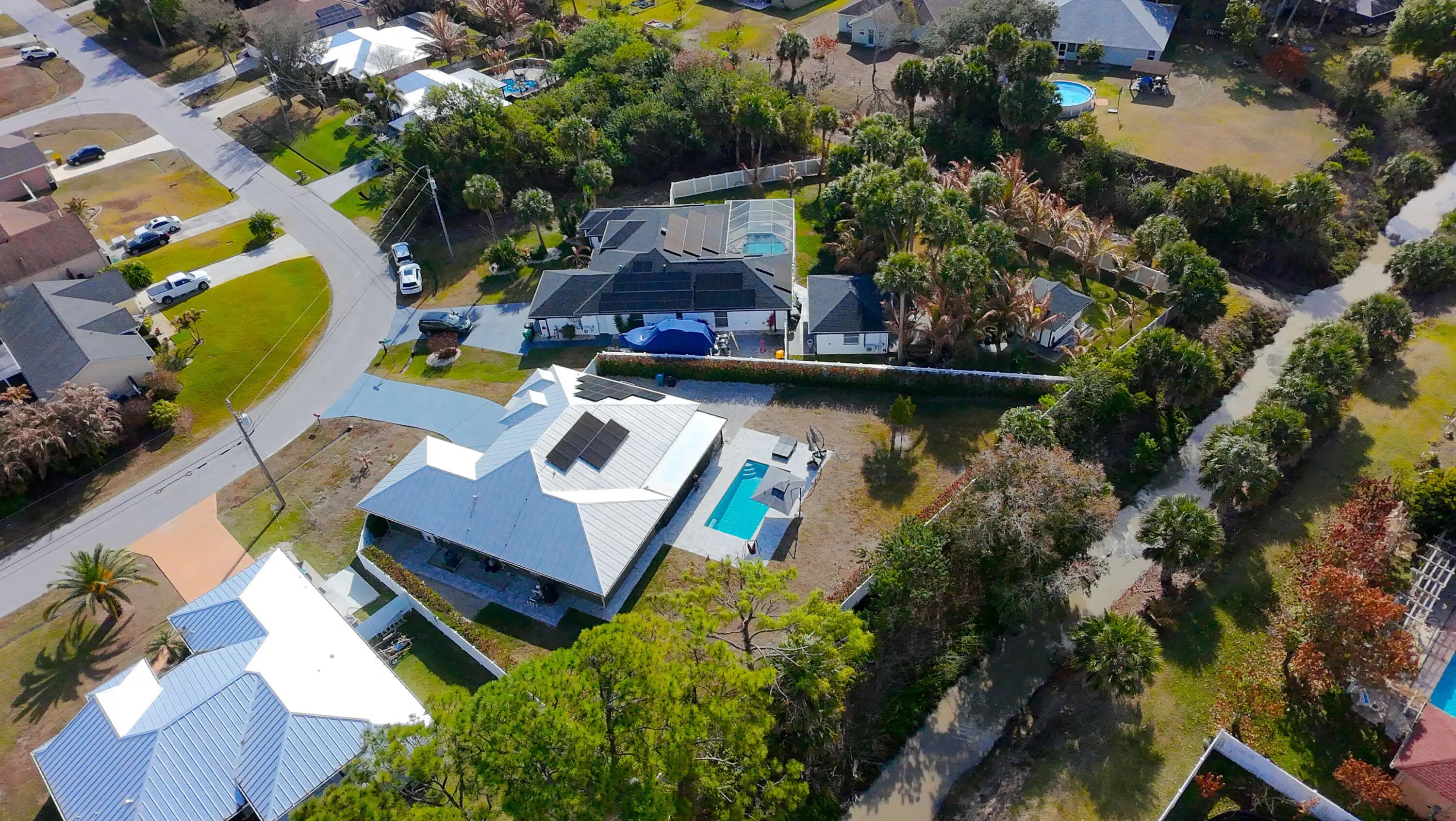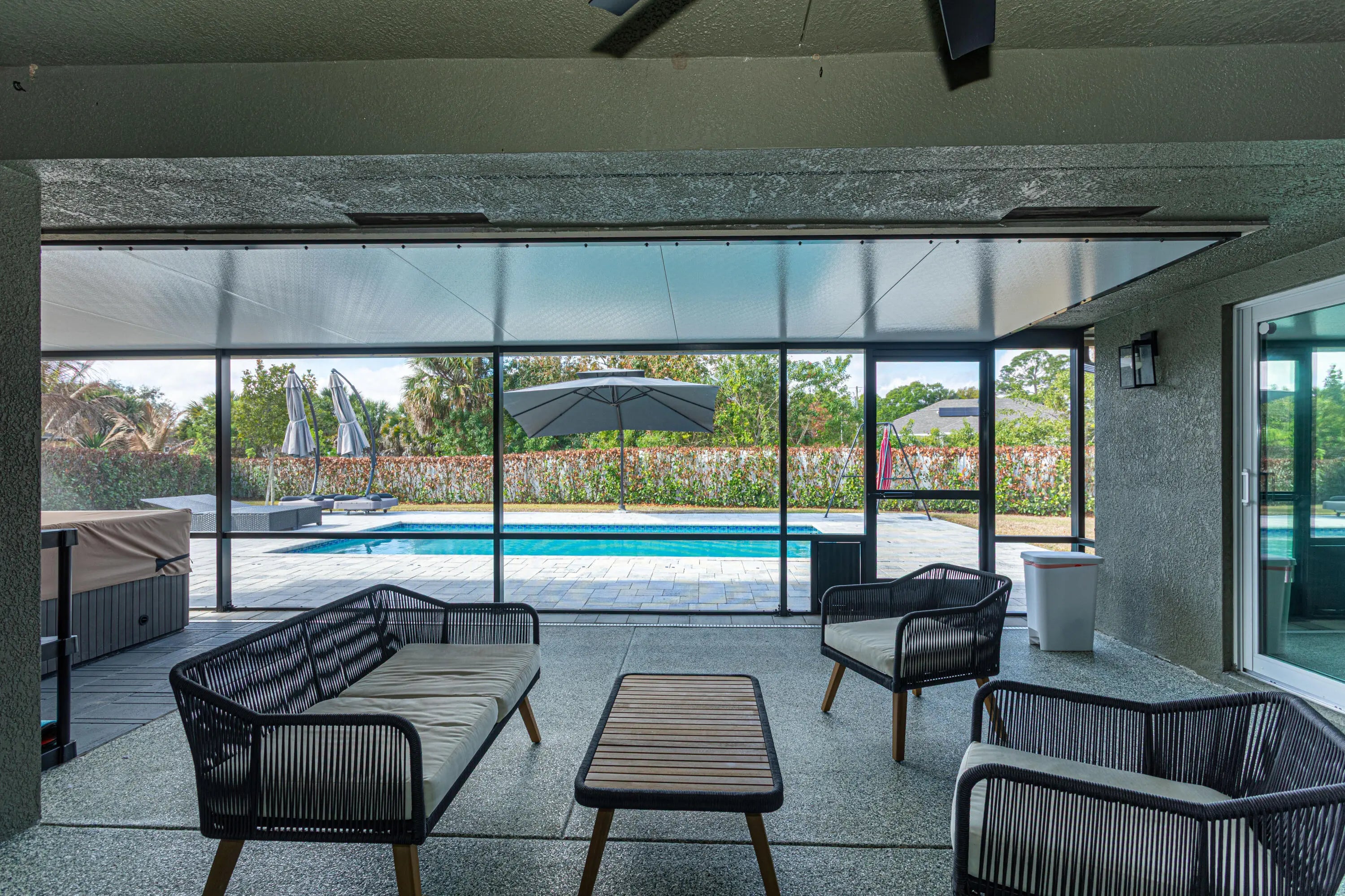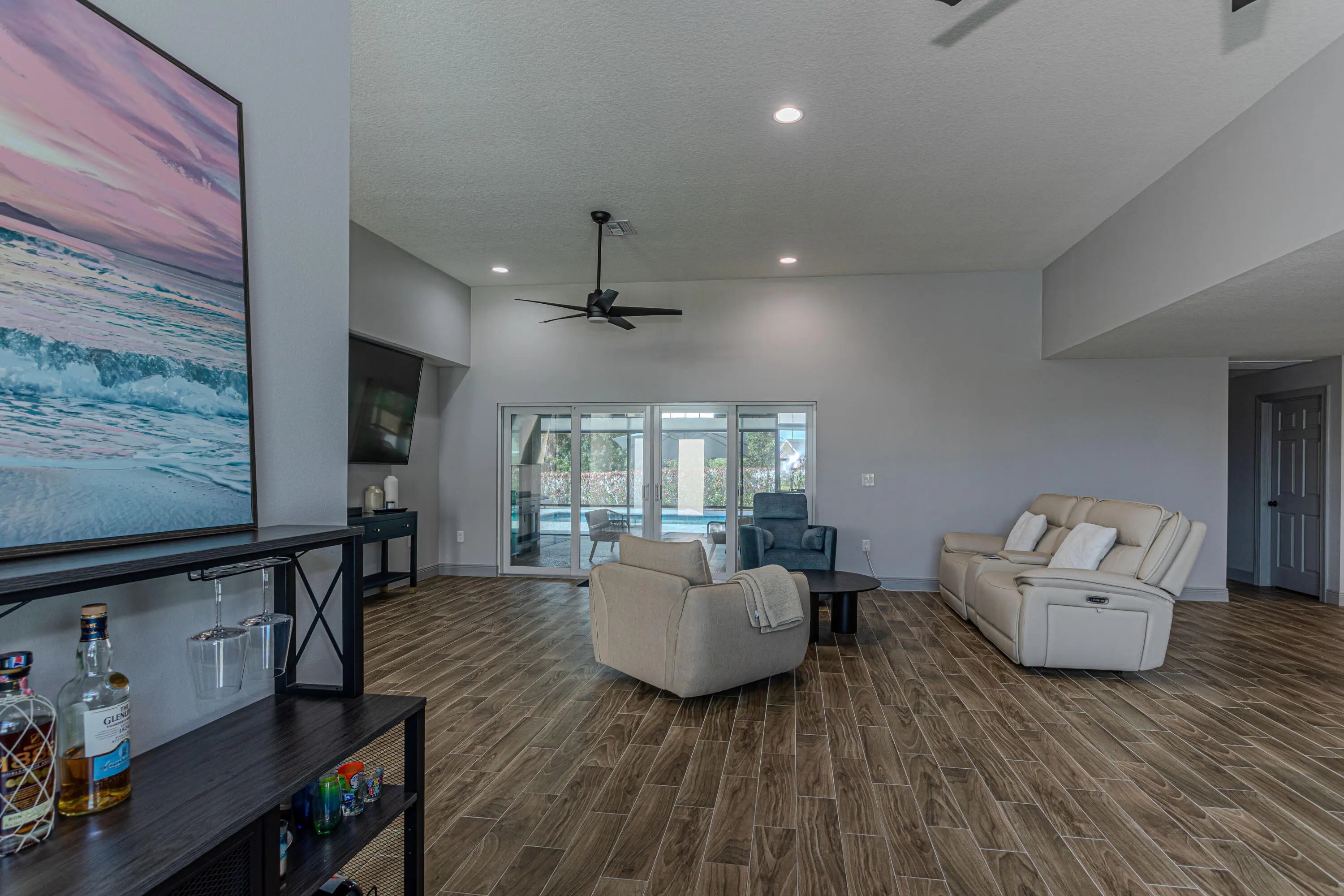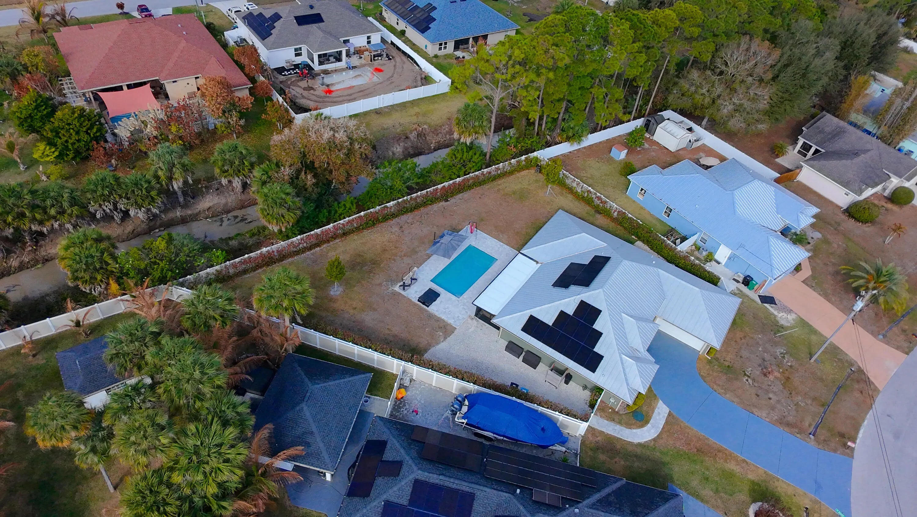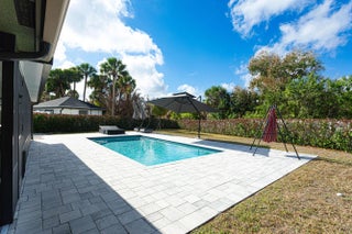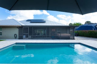 Discover your dream home in this brand-new, meticulously crafted 3-bedroom CBS residence with a salt water pool -- a perfect blend of modern luxury, energy efficiency, and effortless Florida living! Step inside to an open, light-filled layout featuring stunning 6x24-inch porcelain tile flooring throughout (complete with premium waterproofing and crack-protective membrane for ultimate durability and peace of mind). The gourmet kitchen is a chef's delight, boasting 42-inch wood cabinets with soft-close doors and drawers, sleek 3cm granite countertops, Frigidaire stainless steel appliances including an upgraded chef's cooktop, vent hood, wall microwave, oven, and convenient push-button garbage disposal. Energy savings soar with a brand-new metal roof, AWP US Energy Impact windows and doors, and R-30 sprayed insulation in the ceiling -- plus, the solar panels will be fully paid off at closing, delivering low utility bills from day one! Entertainment is effortless: relax in the living room with the included massive 86-inch TV, retreat to the master bedroom featuring a 50-inch TV, enjoy outdoor evenings on the covered patio with a 32-inch TV, or dine in style with another 32-inch TV in the dining area -- all conveying with the sale! Additional premium upgrades include a hot tub (purchased in 2022) for ultimate relaxation, and a whole-home water softener system installed in February 2022, ensuring pure, soft water throughout. The oversized driveway provides ample parking, and the prime location puts you minutes from the Turnpike and I-95 for seamless commutes. This move-in-ready gem combines thoughtful upgrades, smart technology, and resort-style comforts -- don't miss your chance to own this exceptional property. Schedule your private tour today!