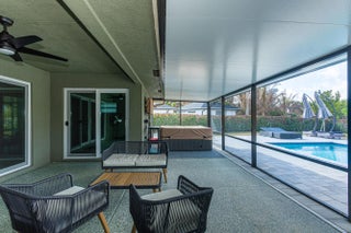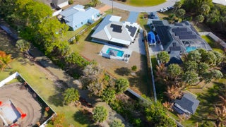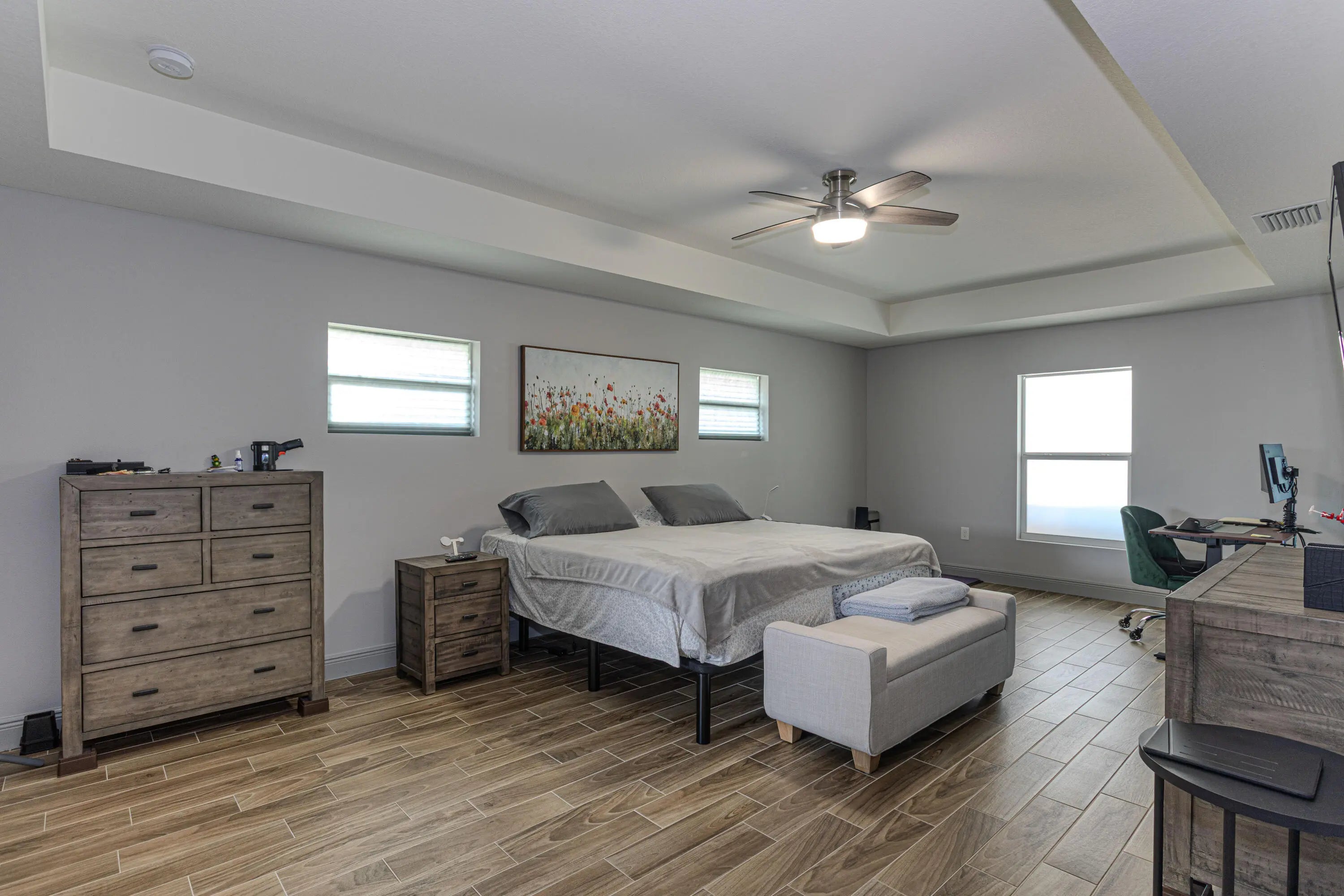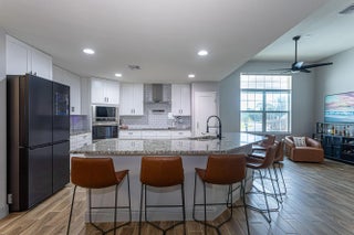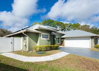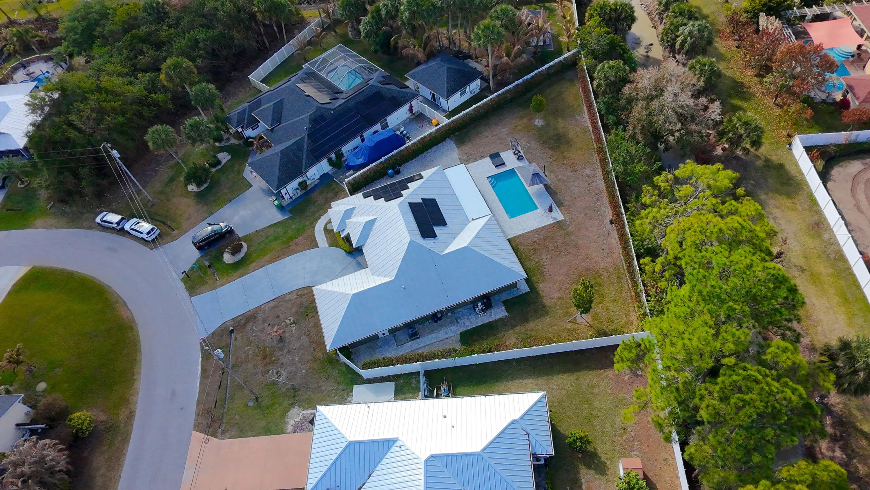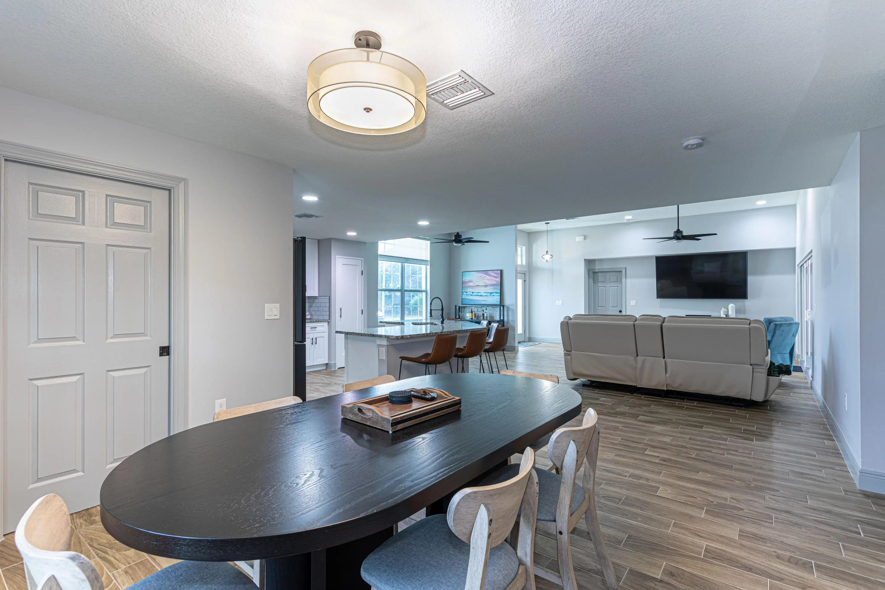 Discover your dream home in this brand-new, meticulously crafted 3-bedroom CBS residence with a salt water pool -- a perfect blend of modern luxury, energy efficiency, and effortless Florida living! Step inside to an open, light-filled layout featuring stunning 6x24-inch porcelain tile flooring throughout (complete with premium waterproofing and crack-protective membrane for ultimate durability and peace of mind). The gourmet kitchen is a chef's delight, boasting 42-inch wood cabinets with soft-close doors and drawers, sleek 3cm granite countertops, Frigidaire stainless steel appliances including an upgraded chef's cooktop, vent hood, wall microwave, oven, and convenient push-button garbage disposal. Energy savings soar with a brand-new metal roof, AWP US Energy Impact windows and doors, and R-30 sprayed insulation in the ceiling -- plus, the solar panels will be fully paid off at closing, delivering low utility bills from day one! Entertainment is effortless: relax in the living room with the included massive 86-inch TV, retreat to the master bedroom featuring a 50-inch TV, enjoy outdoor evenings on the covered patio with a 32-inch TV, or dine in style with another 32-inch TV in the dining area -- all conveying with the sale! Additional premium upgrades include a hot tub (purchased in 2022) for ultimate relaxation, and a whole-home water softener system installed in February 2022, ensuring pure, soft water throughout. The oversized driveway provides ample parking, and the prime location puts you minutes from the Turnpike and I-95 for seamless commutes. This move-in-ready gem combines thoughtful upgrades, smart technology, and resort-style comforts -- don't miss your chance to own this exceptional property. Schedule your private tour today!