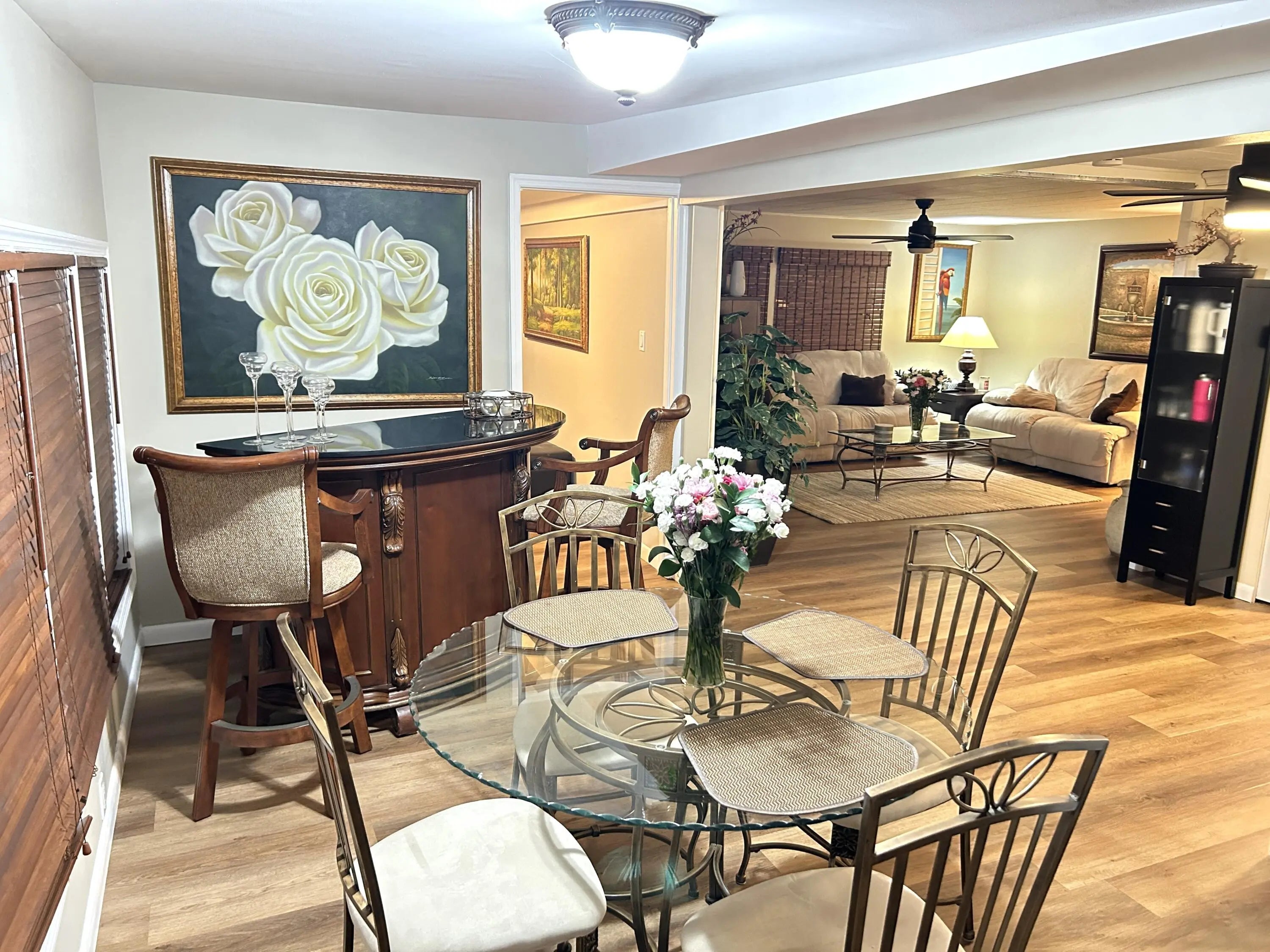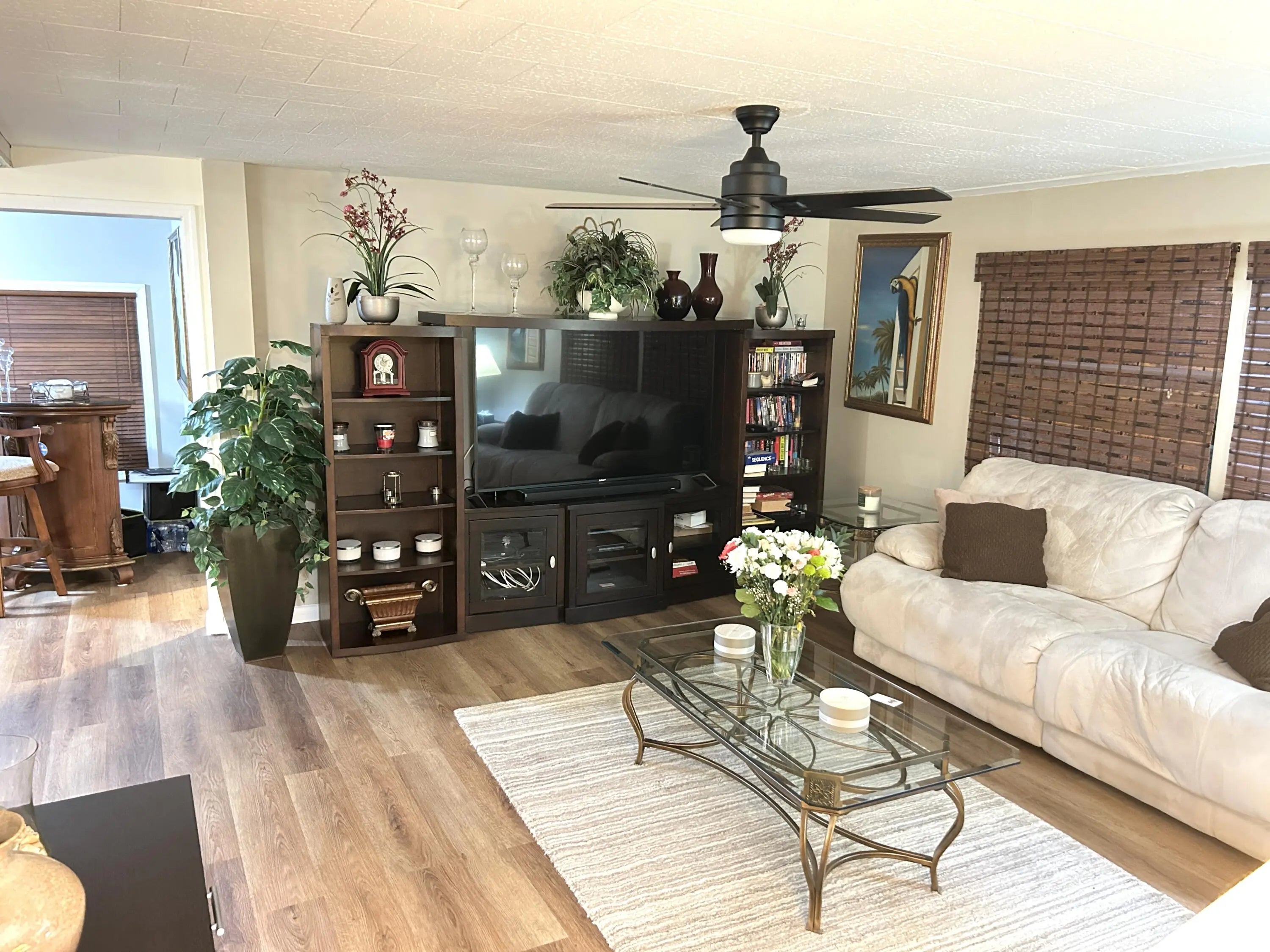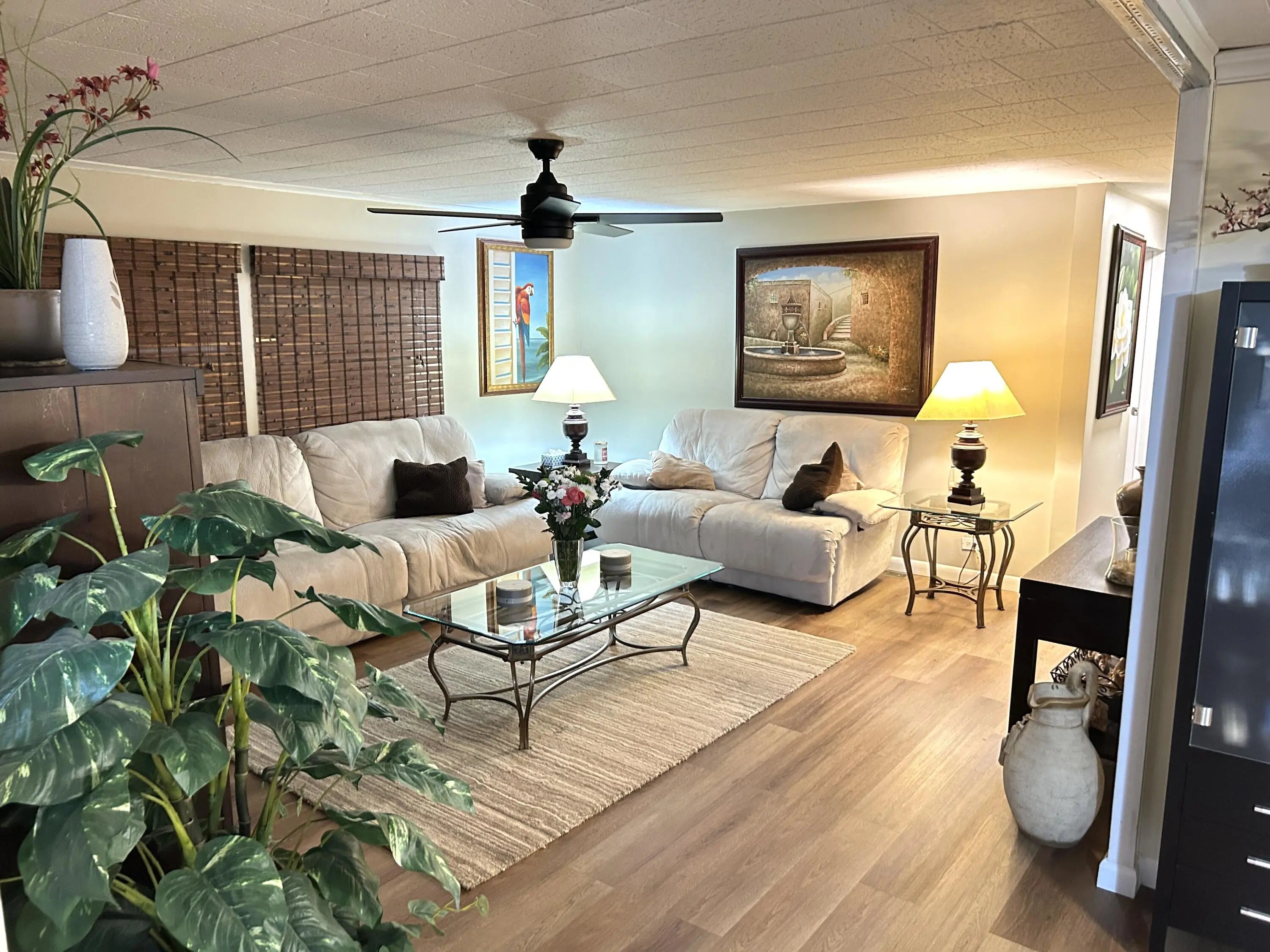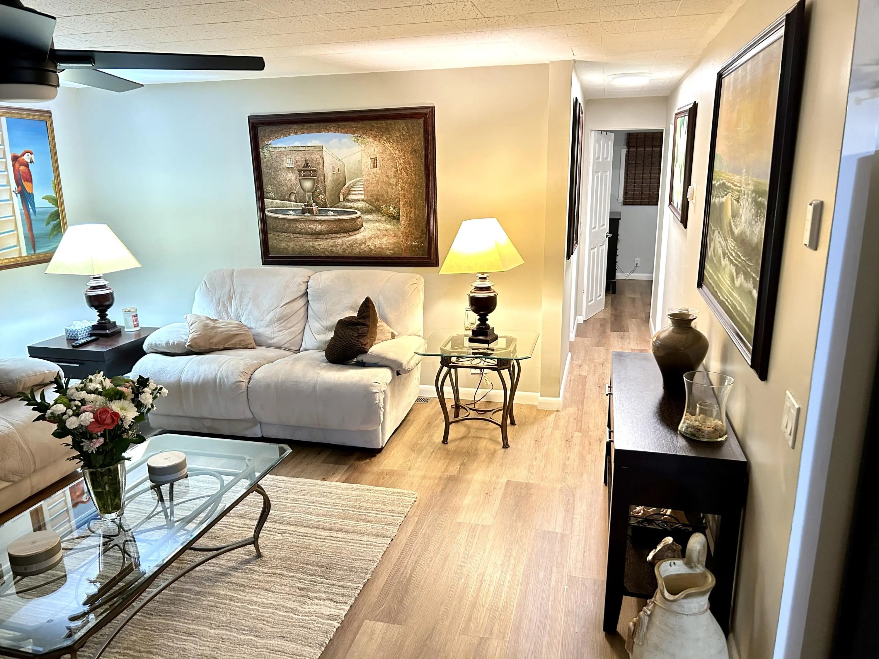 Beautiful home located in the desirable Orangebrook Harbor community, set directly on the golf course. Residents enjoy the unique privilege of playing the course and using their own golf cart throughout the community. Rare on the market, this property offers two bedrooms and one and a half bathrooms, along with an additional room that can easily be converted into a home office or workspace. The home features in-unit washer and dryer, a garage for storage, and dedicated space for golf cart parking. The living area has been tastefully renovated and offers a comfortable and inviting space filled with natural light. Ideally located close to all amenities, this property is being sold furnished and turnkey, making it a perfect opportunity for a full-time residence or seasonal getaway.