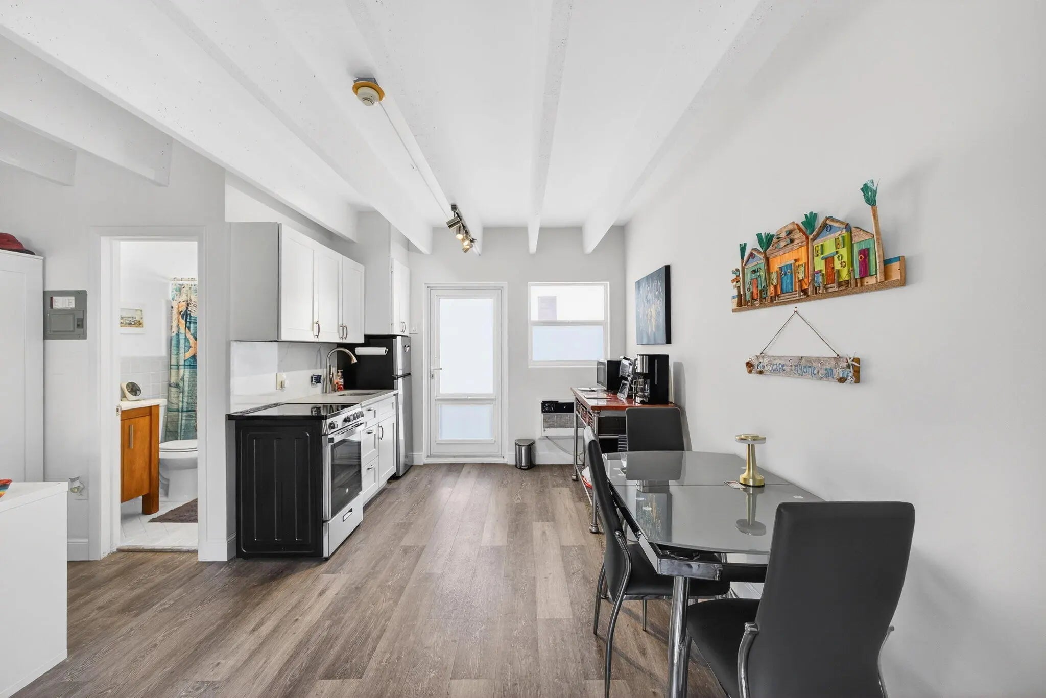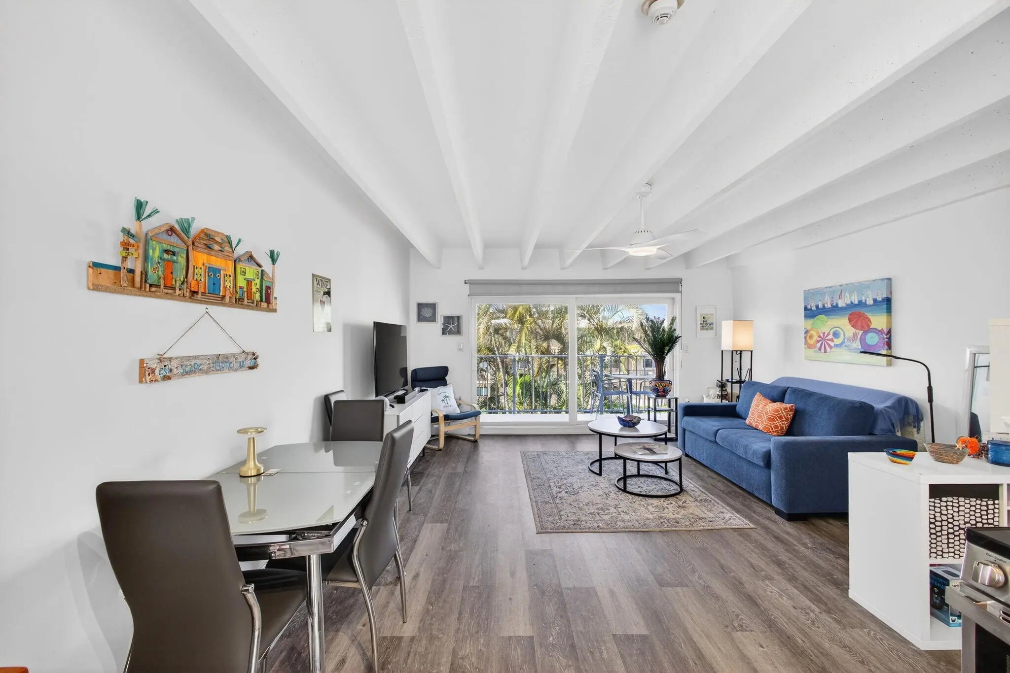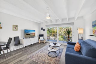 Welcome to your beach getaway! This bright, top-floor studio at Tropicana Gardens in South Palm Beach is clean, turnkey & features modern finishes. Recent updates include the bathroom vanity, modern lighting fixtures & fans & luxury vinyl flooring. Impact door & impact glass throughout provides storm protection & noise protection. The fully renovated kitchen boasts white quartz stone & stainless-steel appliances. Tropicana Gardens is a 55+ building that is very well-maintained, past Milestone Inspections, fully reserved & highlighted by a heated pool on the Intracoastal. A large extra storage locker provides valuable additional space. The community handyman is fantastic. The assigned parking spot is super convenient to the unit, which can be reached via stairs or elevator. This building is in a prime location at the base of the Strip, with fantastic proximity to: Lantana Beach & Dune Deck Café, across the street; The Eau Resort; Plaza del Mar Shopping Center with Publix, Thaikyo, Art Basil, Ice Cream Club & John G's; Lantana Nature Preserve.