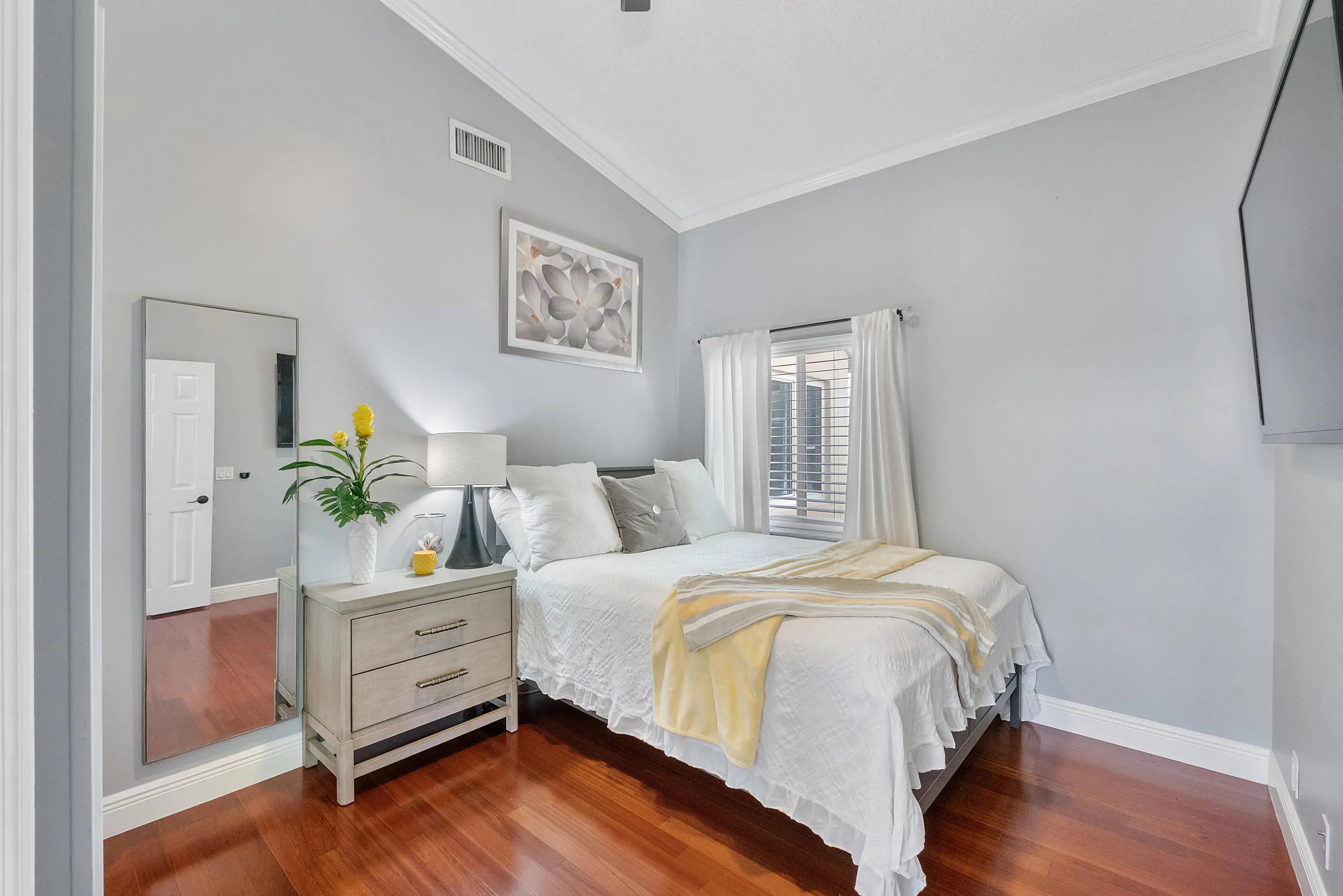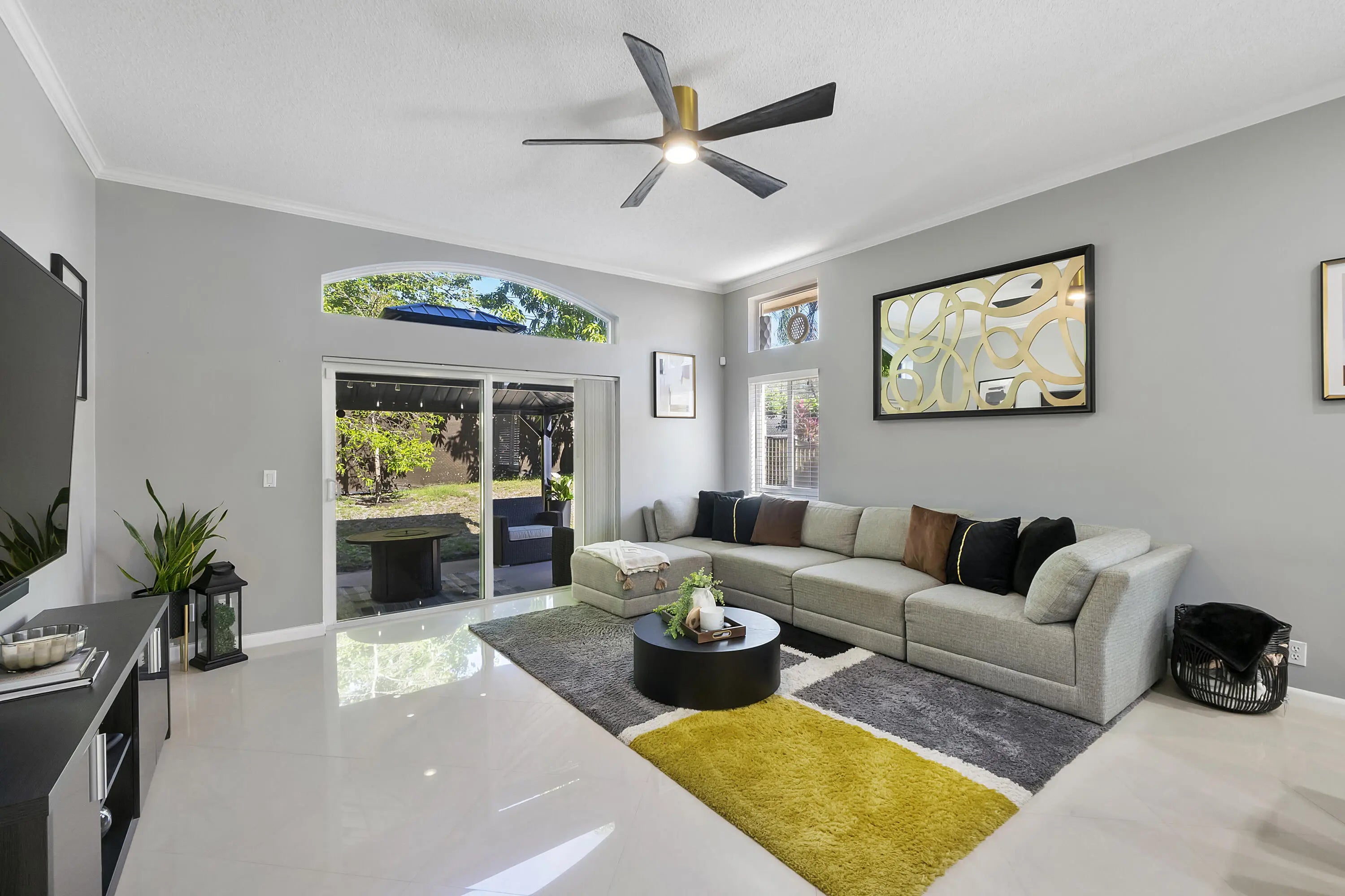 Inquire about $15,000 lender credit! Welcome to this beautifully remodeled smart home in Regency Lakes at Coconut Creek, offering modern elegance and move-in-ready comfort. The bright, open layout features porcelain tile flooring throughout the main living areas and a fully remodeled kitchen with stylish countertops, custom cabinetry, elegant backsplash, and 2024 Frigidaire Professional appliances. Natural light fills the home through impact windows and an impact-rated front door, providing energy efficiency and peace of mind. Bedrooms showcase hardwood floors, while updated bathrooms feature quartz vanities and contemporary finishes. Additional upgrades include a 2021 water heater, automatic sprinkler system, and lush backyard with mature fruit trees-perfect for relaxing or entertaining.