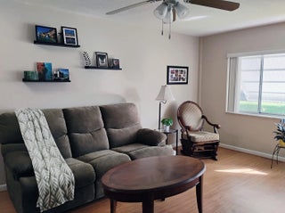 Super cute 1 bedroom, 1 bath with a view of the lake, beautiful patio with view of lake and east pool. Wood laminate floors, freshly painted. A/C is 1 year old, electrical panel is 2 years old, new shower valves in bathroom, new faucets in kitchen. Close to elevator and laundry, steps to the pool and clubhouse. At an acceptable price there is an electric scooter that will be included in the sale. This scotter was only used once, so like new condition. LCG offers property management support to all owners/residents via online portal or a live person 24/7. This community is close to Chase Bank, Walmart, Chick-fil-A and Chipotle. LCG offers a shuttle bus to publix, Walmart, the beach, casino and for lunch outings. Every Wednesday night is bingo in the auditorium and chair yoga during the week. Water aerobics is offered at the West pool. Thursday night pot luck dinners at the West Pool and live entertainment during the year. Condo Assoc. offers high speed internet, cable and water which is included in your monthly maintenance. LCG is now in the process of replacing all the roofs in this community. New washers and dryers on every floor.