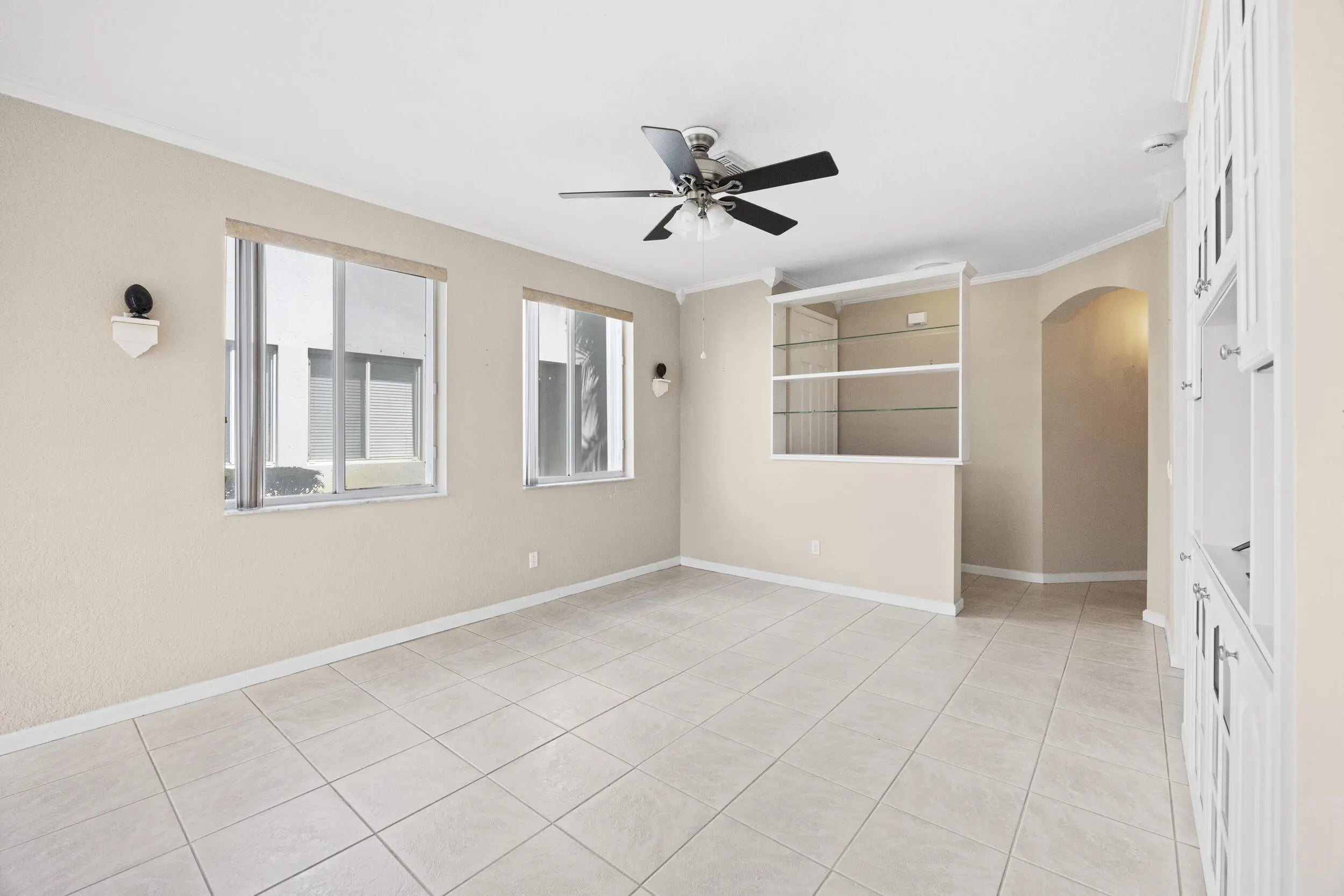 Stunning 2-bedroom, 2.1-bath townhouse with updates throughout! Features include newer bathroom vanities, new shower doors, AC installed in 2022, tile on the main floor, carpet upstairs, and washer & dryer conveniently located on the second floor. The kitchen boasts beige Maytag appliances, and accordion shutters provide added protection. Relax with serene lake views from the master suite, which includes an LG TV with custom stand. The living room features a TV with Theater Research speakers. Spacious closets include a safe in the master, and built-in garage shelving adds extra storage. Move-in ready and designed for comfort and convenience!