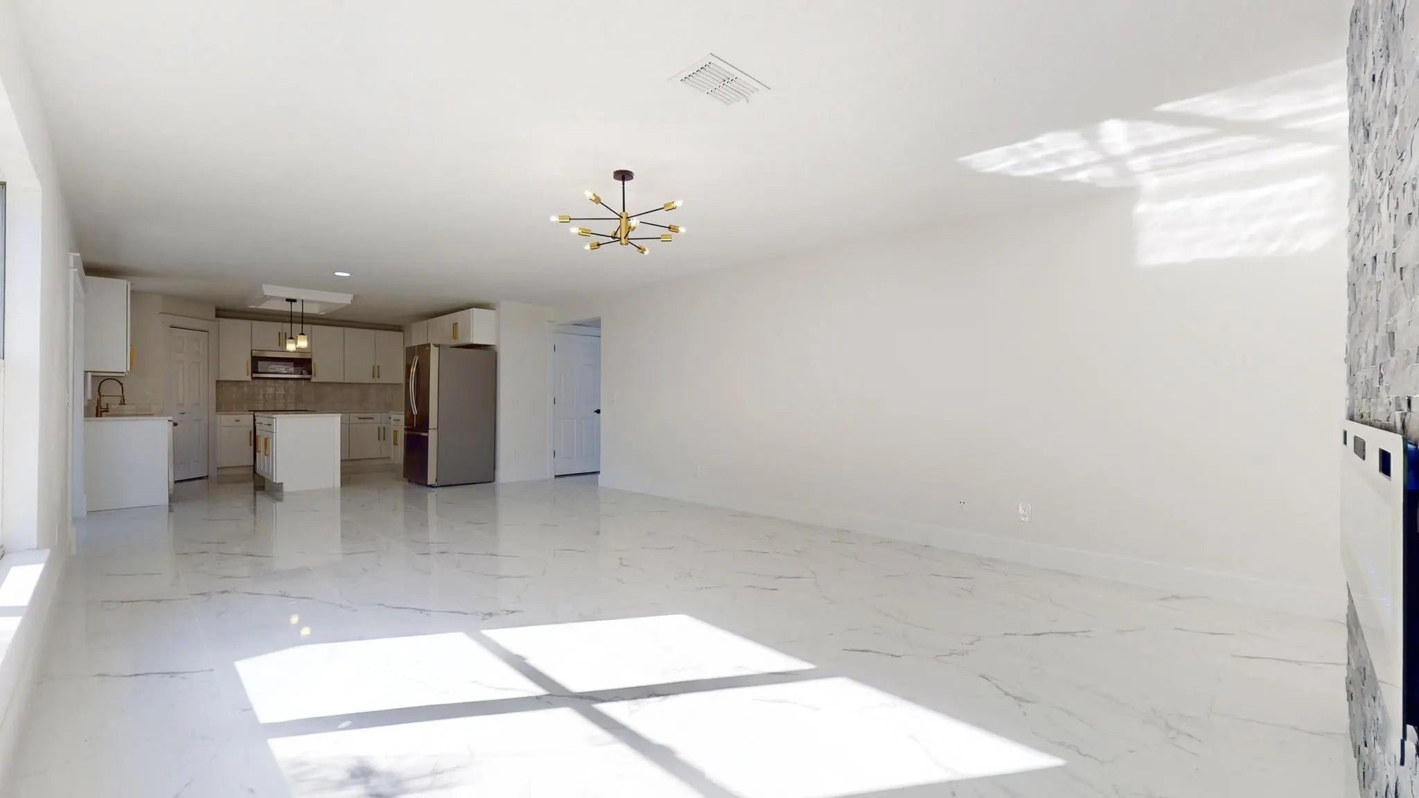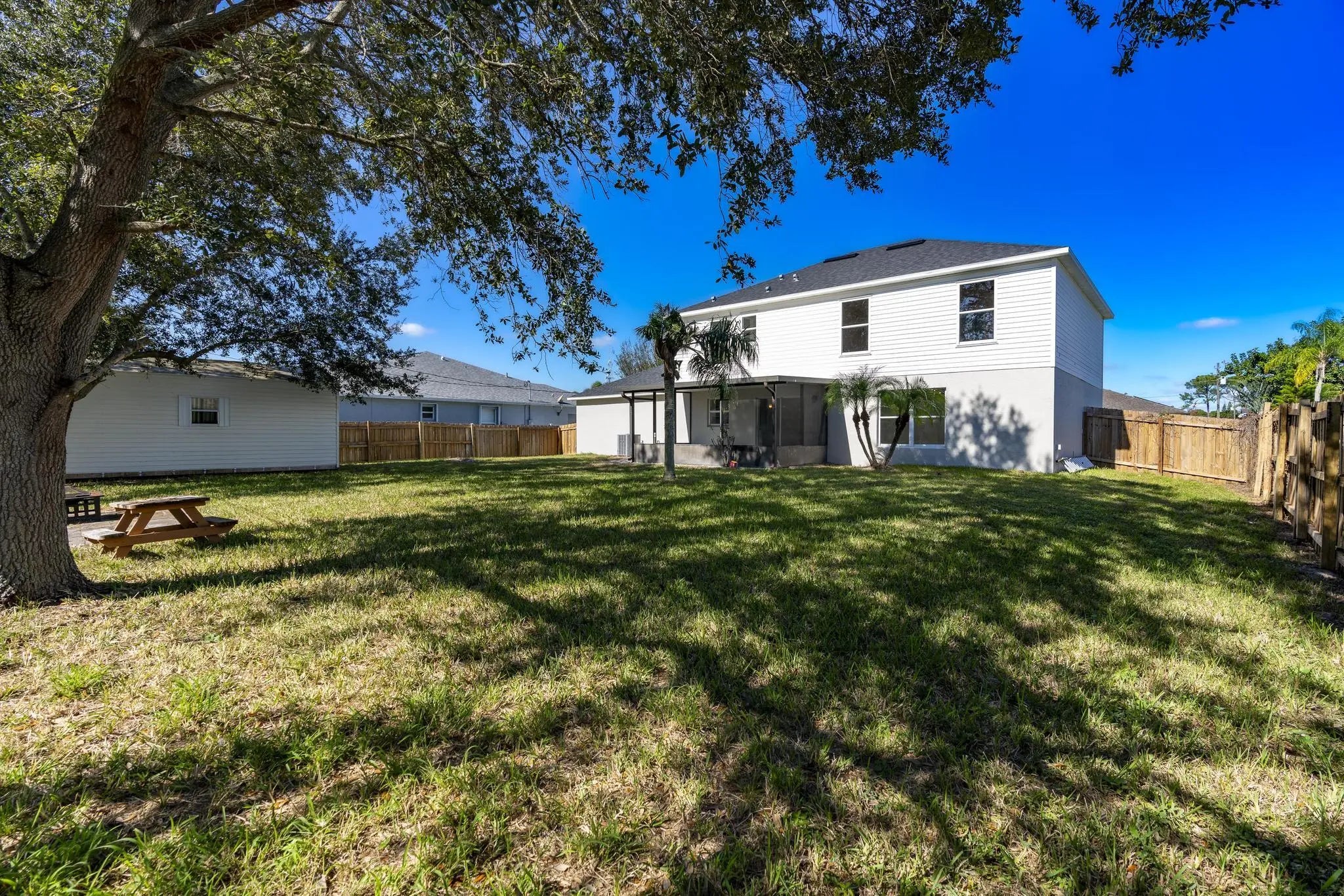 Welcome to this move-in-ready home featuring a fully gated backyard, perfect for relaxing, entertaining, and enjoying the Florida lifestyle. The property also includes an oversized storage shed, providing plenty of extra storage space. Recently renovated, this home offers a modern kitchen with newer appliances, quartz countertops, and updated cabinetry, along with newer flooring throughout, bathrooms, and fresher interior and exterior paint. The living room features a stylish accent wall with a decorative fireplace, creating a warm and inviting atmosphere. The primary bathroom includes a luxurious Roman tub, perfect for unwinding after a long day. A versatile first-floor room with a door can be used as a home office, guest bedroom, or flex space to fit your needs. Built with durable CBS (cement, block, and stucco) construction and a newer roof (2023) for added peace of mind. Conveniently located near shopping, dining, golf, parks, and easy access to I-95. No HOA restrictions, bring your boat, jetski, or other toys and enjoy the Florida sunshine and nearby beaches! Don't miss the opportunity to rent this beautifully updated home in a prime location!