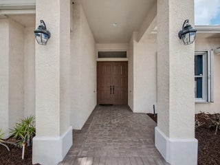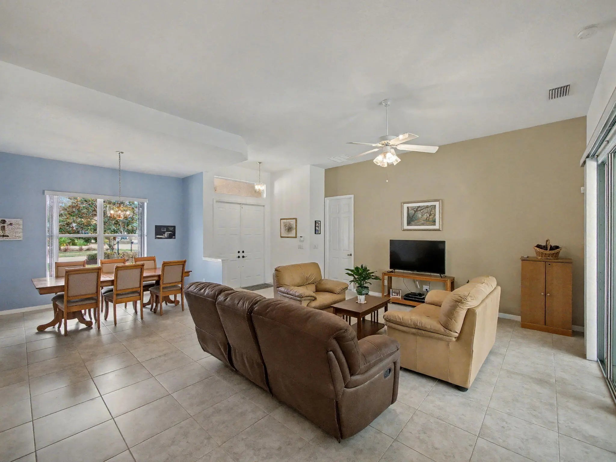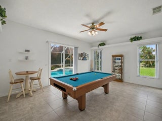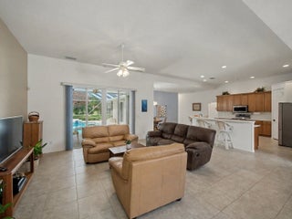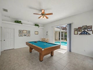 4-bedroom, 3-bath home located in the highly sought-after Locks Landing community. Designed with both comfort and entertaining in mind, this home features a spacious open floor plan where the great room flows seamlessly into the kitchen, dining room, and breakfast area, creating the perfect gathering space for entertaining The spacious kitchen is beautifully appointed with rich wood cabinetry, stainless steel appliances, and expansive counter space, offering both style and functionality. The main suite features a coffered ceiling, sliding glass door leading to the pool area, and a large walk-in closet. The spa like main bath features dual vanities, a soaking tub, and a large walk-in shower. Three generously sized guest bedrooms provide comfort and privacy for family or visitors, while large game/media room with sliding glass doors to the pool area offers the perfect space for recreation, hobbies, or additional entertaining. Step outside to your private outdoor oasis featuring a covered lanai, large, screened pool and spa, and tranquil lake views, all surrounded by lush tropical landscaping. Additional highlights include a circular driveway, 3-car garage, and a whole-house automatic generator for peace of mind. Locks Landing is a gated community with 60 private deeded ocean-access docks and boat/trailer storage, making it a dream location for boating enthusiasts. Ideally located close to shopping, dining, and major highways for easy commuting, this home offers the perfect blend of luxury, lifestyle, and location.