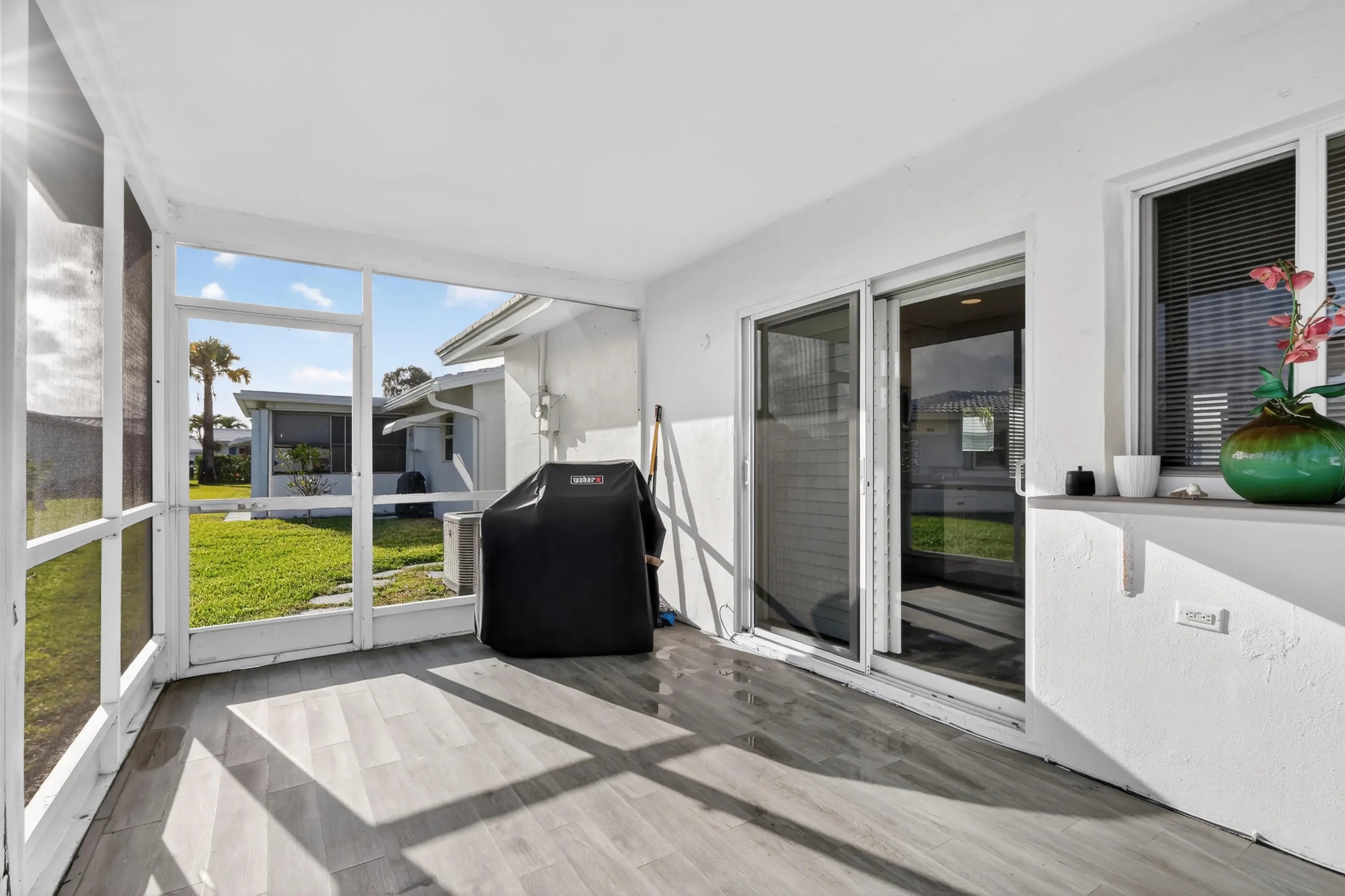 Completely updated home on a quiet side street in an over 55 community. This home has a carport and a driveway for two car parking. The kitchen has very attractive granite and plantation shutters for access to the the screened in patio. All appliances are stainless steel. The bathroom is also updated with a bench seat for easy showering. The new washer and dryer can be accessed through the carport, Feel safe because all windows are IMPACT. Come SEE!!!!