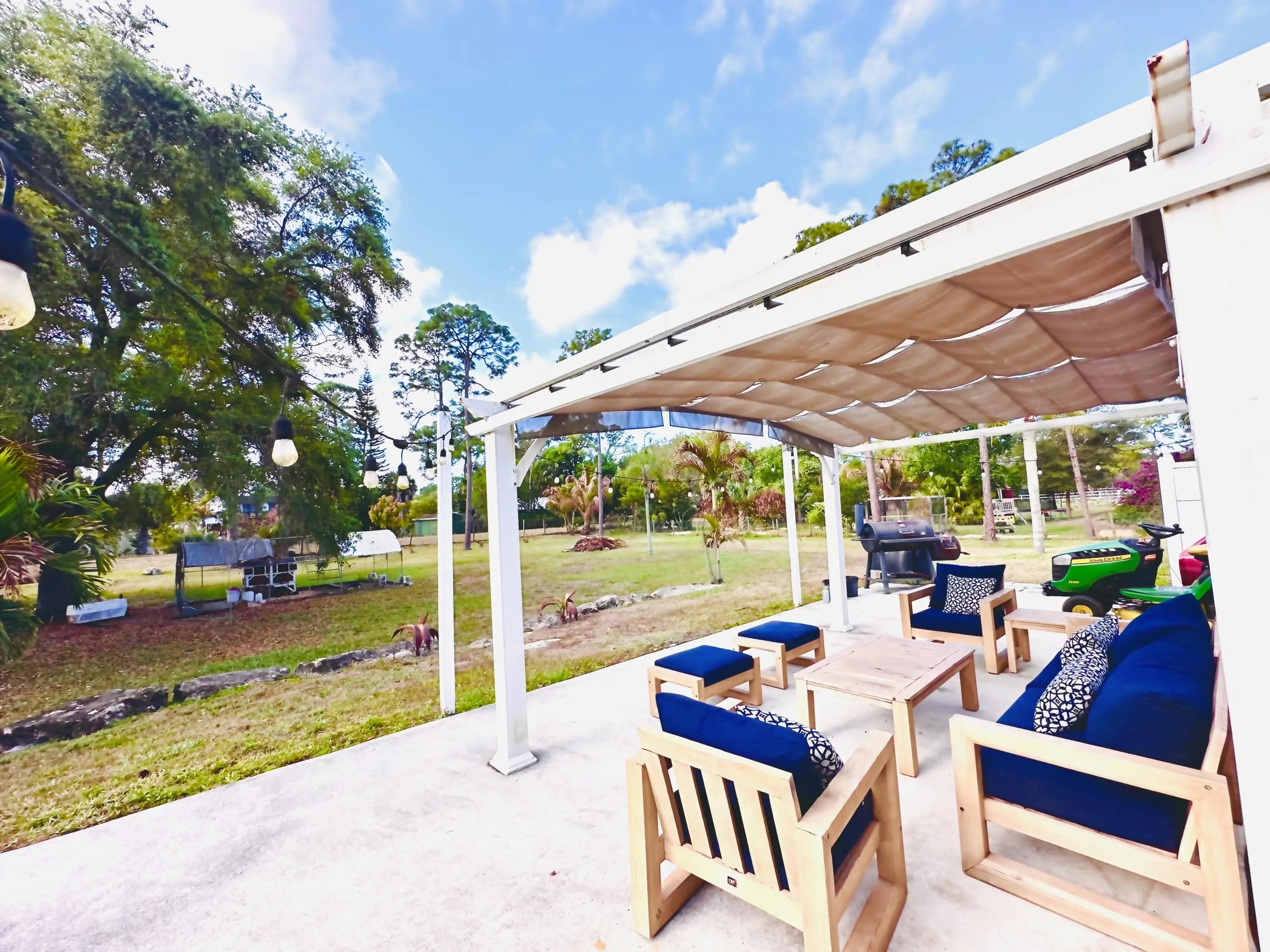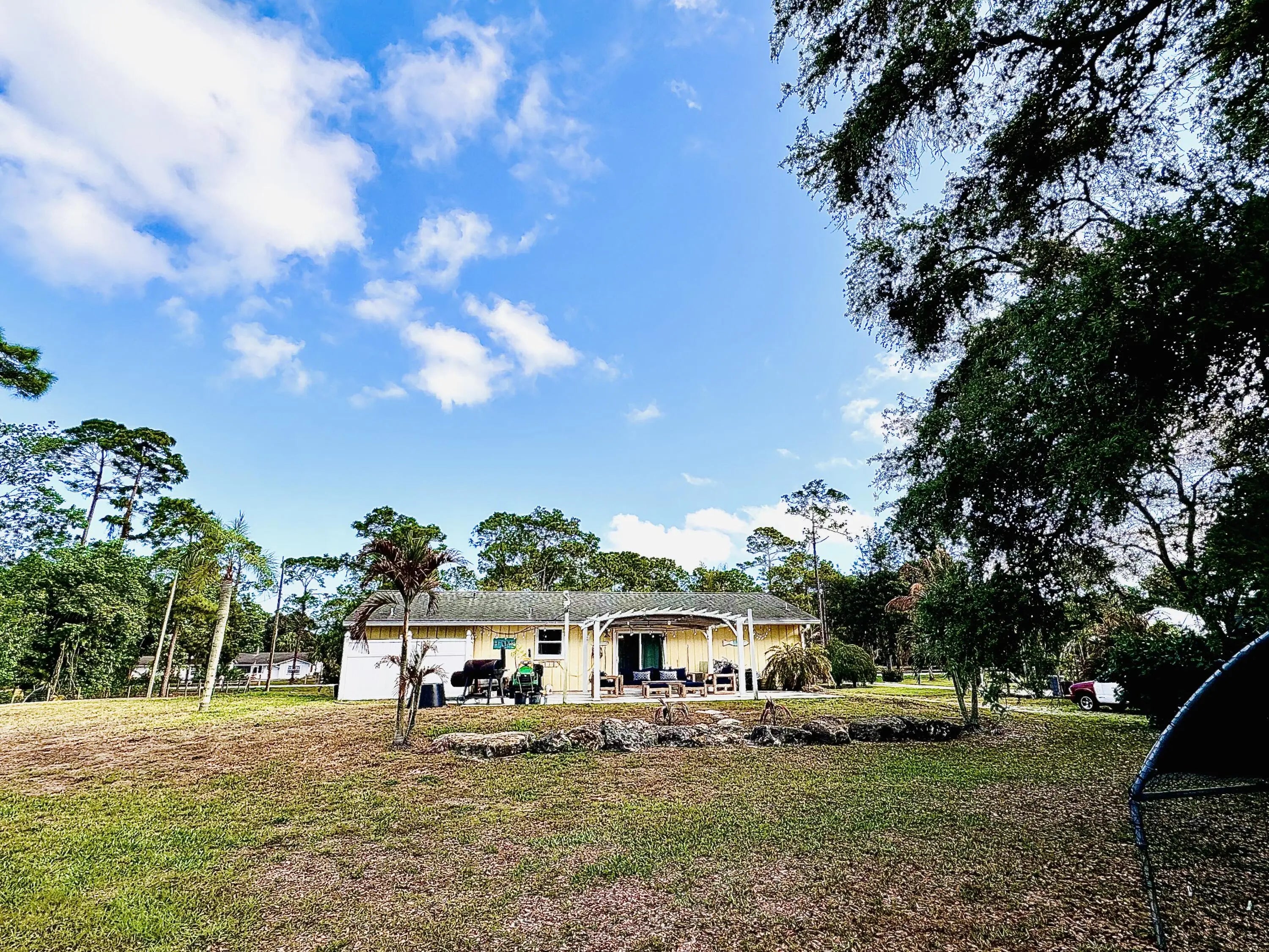 Live the ACREAGE lifestyle in this adorable Key West-style retreat. Set on a 1.25 Acre lot with plenty of room for your toys, this property offers the freedom Acreage buyers love-bring your RV, boat, trailers, no HOA restrictions. Huge circular driveway with room for 10+ cars. Inside, a desirable split-bedroom floor plan for maximum privacy, along with bright and airy living spaces. Step outside to your private oasis with a permanent retractable cover pergola, creating the perfect shaded space for entertaining, BBQ's or just relax. Just located minutes from shopping, dining, conveniences and 30 minutes to amazing West Palm Beach public beaches. Cute Key West charm. Land and room for toys If you are looking for character, land and the freedom of the Acreage living this one is a must see
