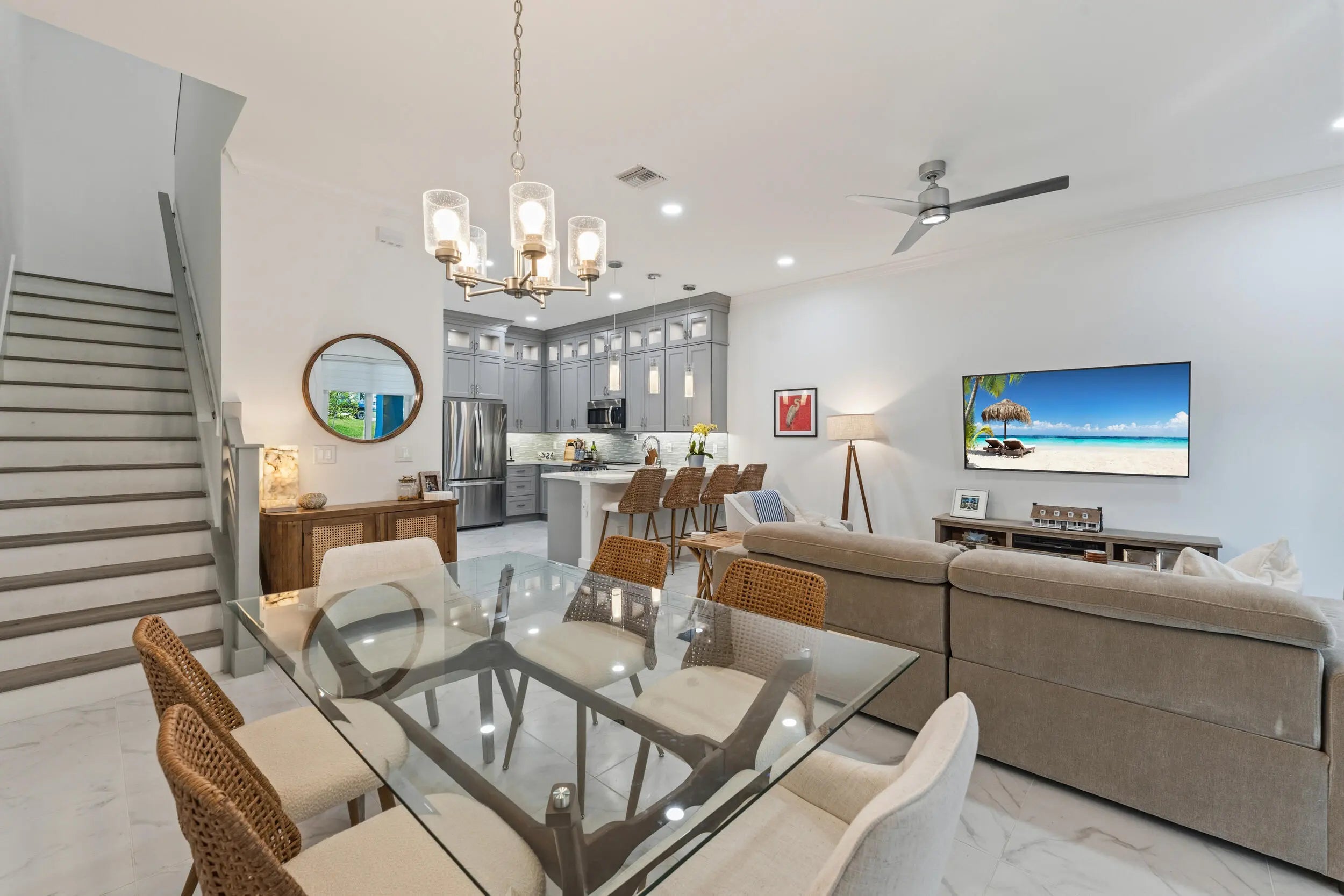 NEW, LUXURIOUS TOWNHOME WITH PRIVATE, DEEDED BOAT DOCK! Discover waterfront luxury in Manatee Isles with this beautiful 3-bed, 2.5-bath residence featuring premium upgrades, gourmet kitchen, spacious master suite with custom walk-in closet system and spa-like shower. 10-foot ceilings upstairs and down, custom recessed lighting, porcelain tile, luxury vinyl plank flooring, built with solid concrete block, full impact glass. This unit only premium owner upgrades: additional lighting, ring cameras, etched sidelights. MUST SEE. Private boat dock with 10K lift in a protected area of bay to weather storms, water and electric included, ocean access!! This charming waterfront community is completely unique. With premier fishing, dining, boating--everything water--steps from your front door!