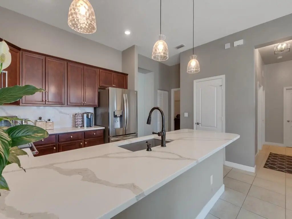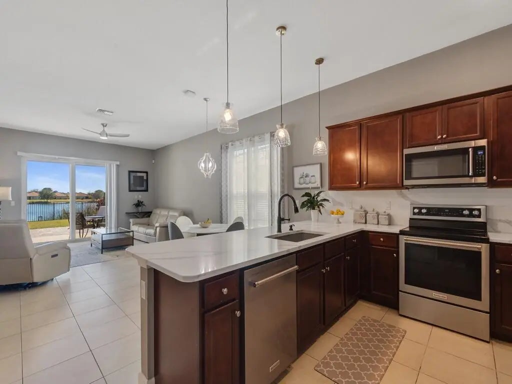 Wake up to breathtaking sunrises in this stunning 3-bed, 2.5-bath retreat on a private lake. This spacious home features a modern split floor plan, offering maximum privacy and flow. At its heart sits a chef-ready open kitchen boasting sleek quartz countertops and premium finishes. Step outside to your secluded backyard sanctuary, already electrically prepped for a hot tub--perfect for starlit soaking. Whether you're hosting dinner by the water or enjoying a quiet morning on the shore, this home offers the ultimate blend of style and serenity. Your lakeside escape is here.
