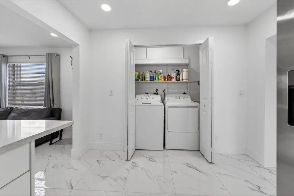 This home is completely remodeled in active 55+ community with low HOA fees. Porcelain tile throughout, new stainless-steel appliances, quartz countertops, new washer and dryer included, 2024 water heater, 2018 air conditioning unit, accordion shutters throughout, retractable awning, expanded driveway, paver patio. HOA community includes free golf, every 5 years pressure washed, every 5 years repainted, three heated pools, clubhouse, fitness center, library, game room, bocce, barbecue picnic area, social event clubs, and more! This home combines comfort with convenience and is minutes from shopping, dining, recreation and medical facilities. HOA amenities and social lifestyle make this a great opportunity.