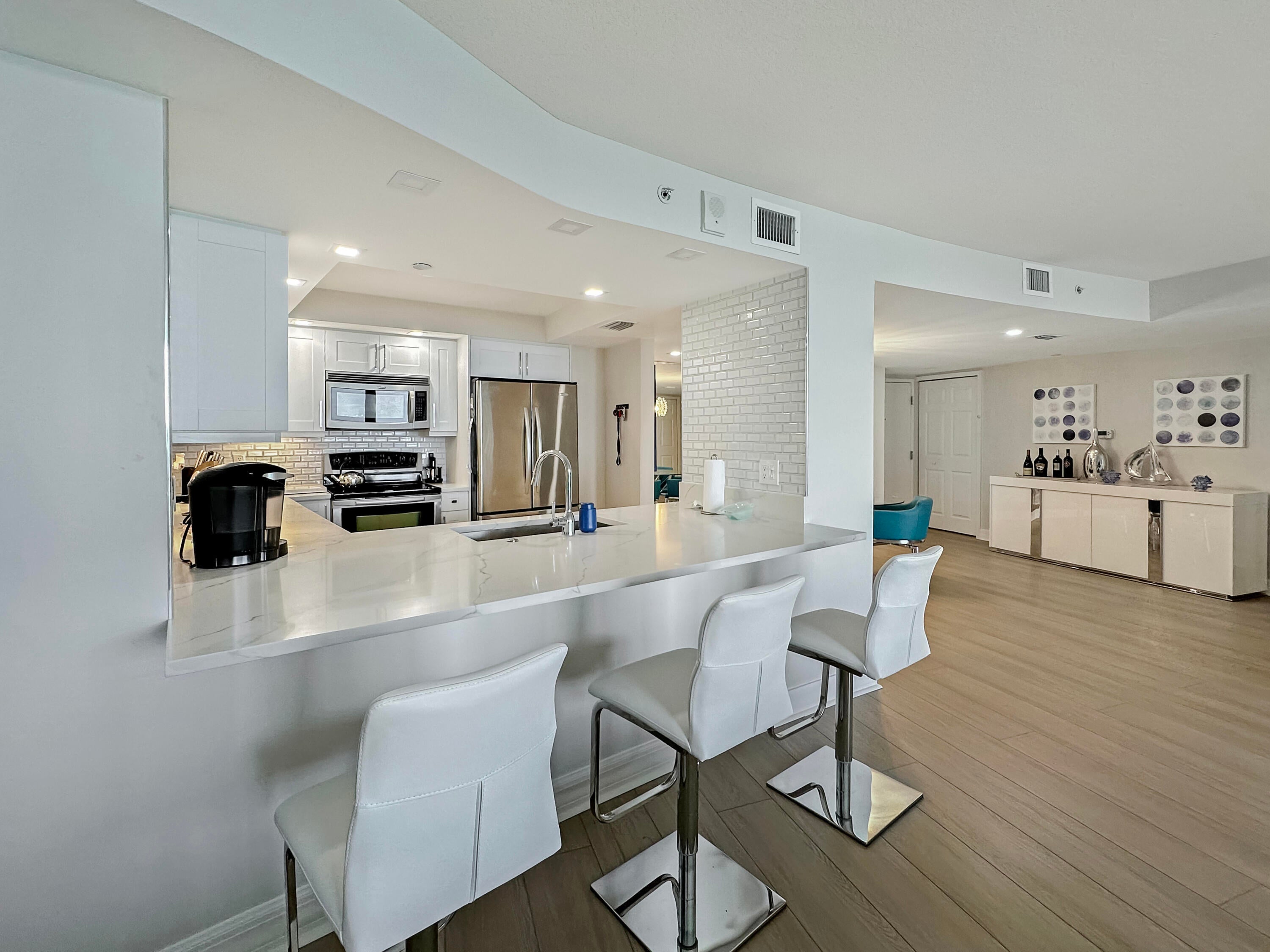 Enjoy season 2024 in an all new home! Crisp & clean, this mint unit offers direct ocean views & lots of light! New reno & furniture throughout, large kitchen - great unit for entertaining. W/D in unit. Tiara is a home that offers comfort & peace of mind. Upon arrival through the 24 hr staffed security gate, the valet parks your car (if you choose) & you're greeted by a 24 hr concierge. Feeling social? Head up to the Marquis Lounge, have a cocktail or meal & enjoy meeting fellow residents. Or just take in the views. From the endless wall of windows, you can see every direction from the 43rd floor. Treat yourself to breakfast or lunch delivered to your unit from the Gazebo cafe. The beach at Tiara is sprawling & boardwalk is flat - no stairs or dunes. Shopping, dining & PBI airport close by.